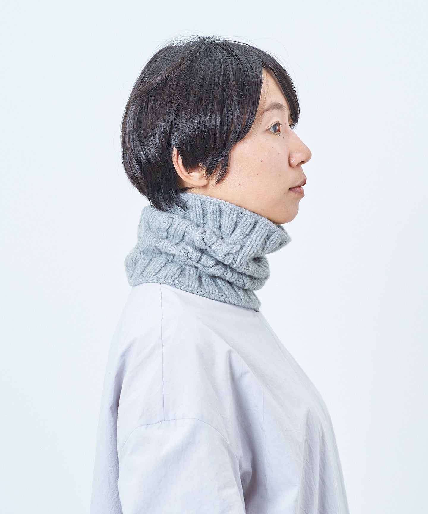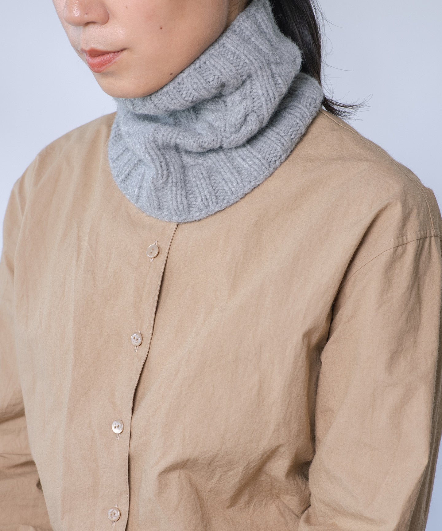 メリノウール100%のケーブル編みスヌード(WOA-012)