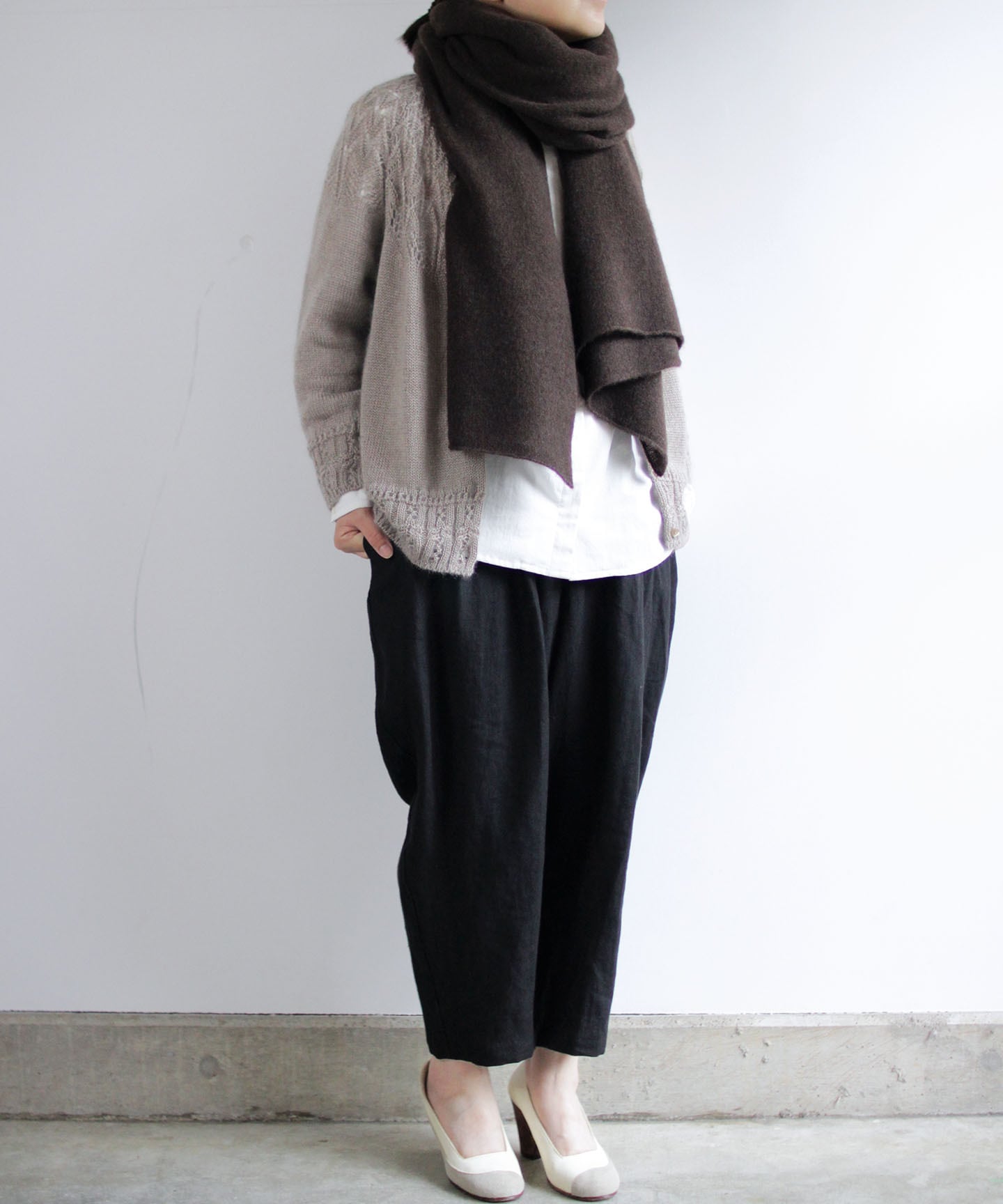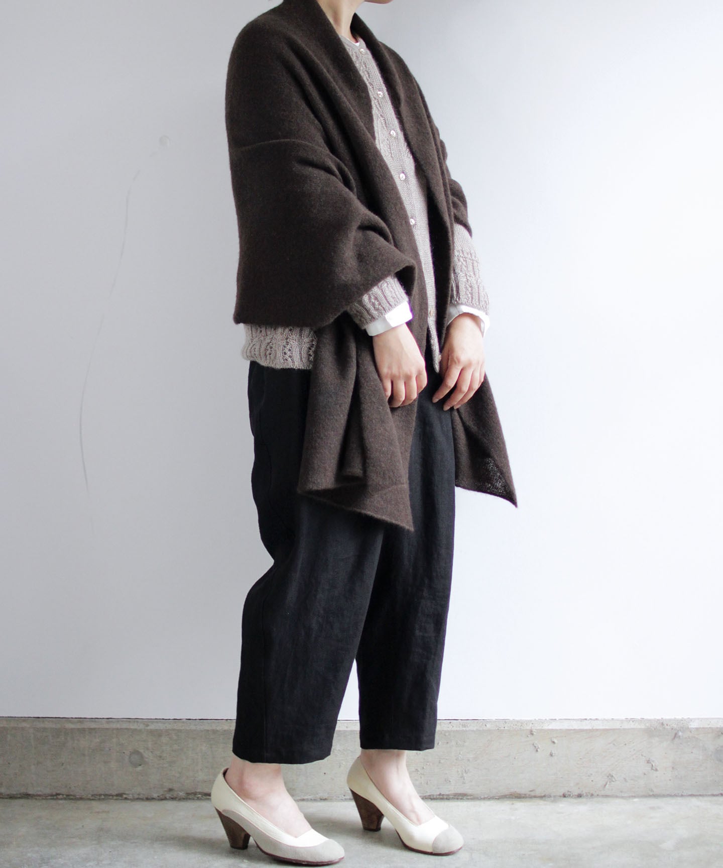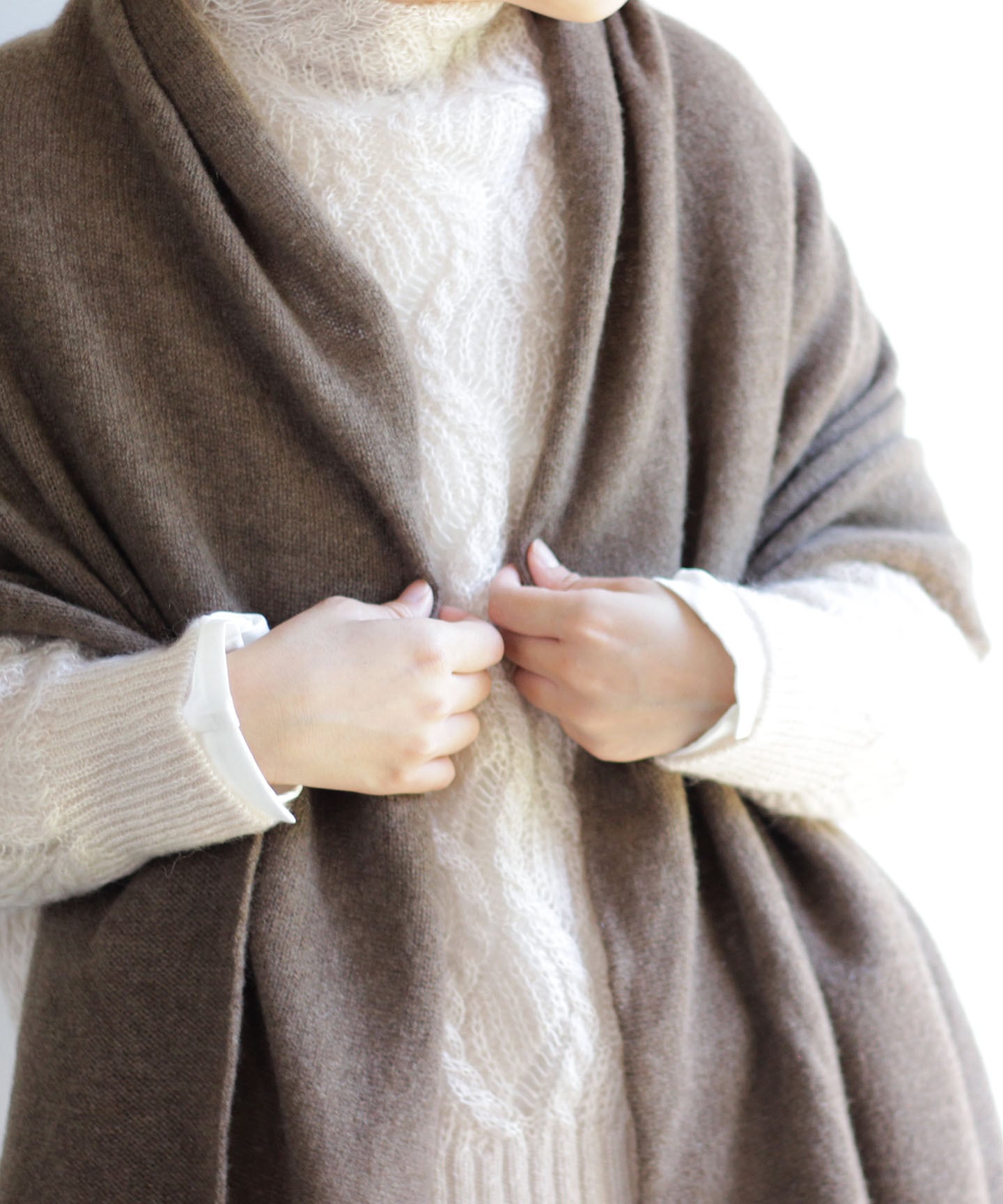 大判ストール・巾約70cmと広巾なので、肩掛け・ショールとしてのご使用や、ひざ掛けとしてのご使用もおススメです。