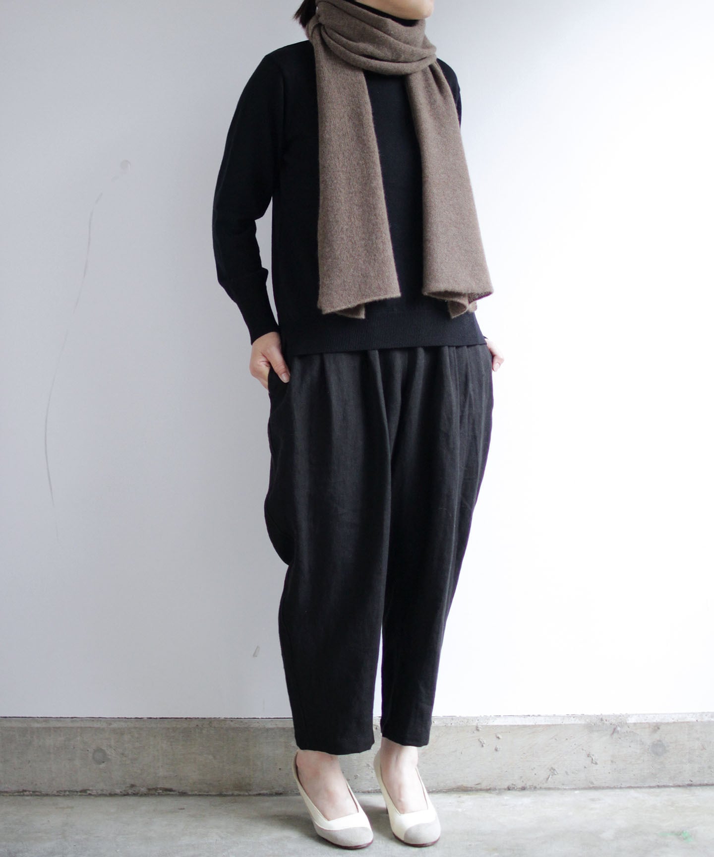 ・洗ったら軽く脱水をして、日陰で干してください。吊るして干すとストールの丈が長く伸びてしまう場合がありますが、垂直方向に軽く引っ張ることである程度寸法が戻ります。
