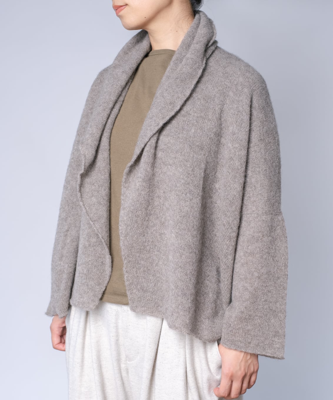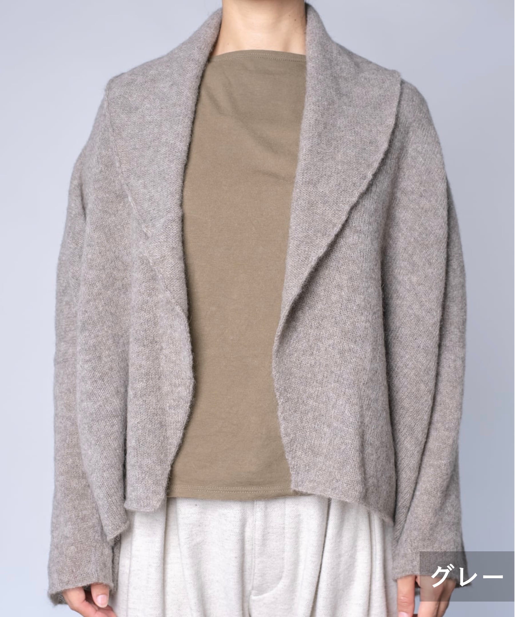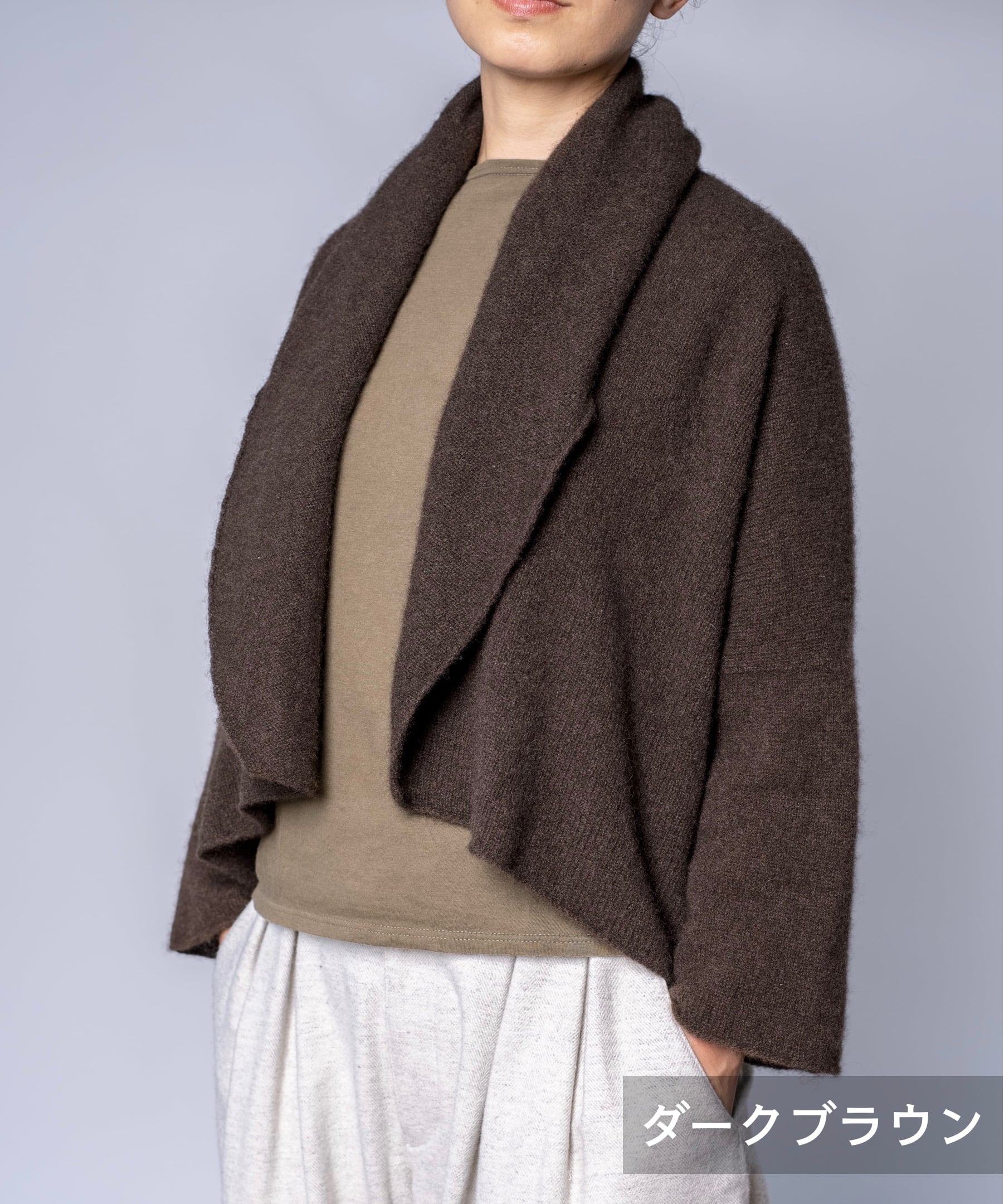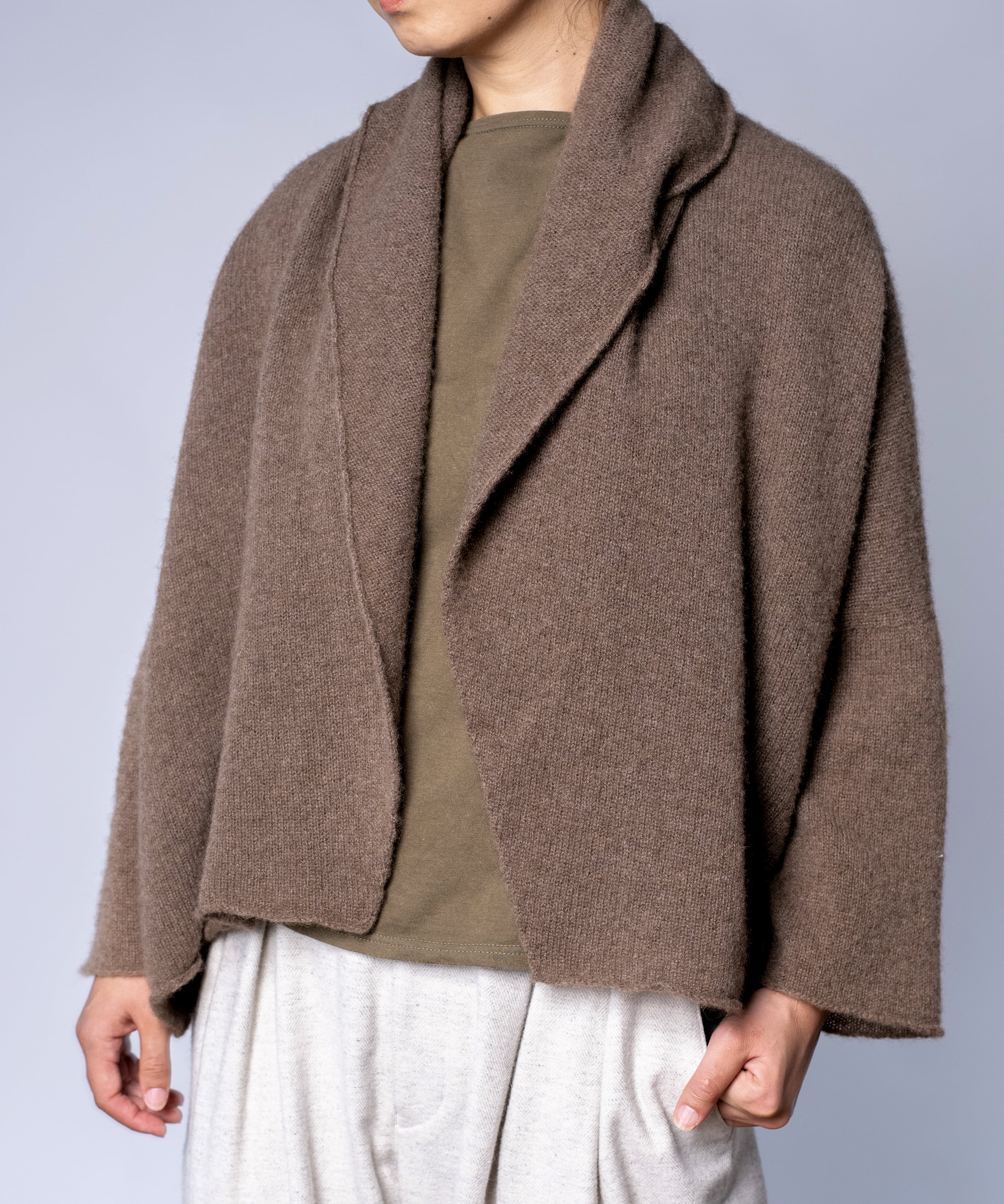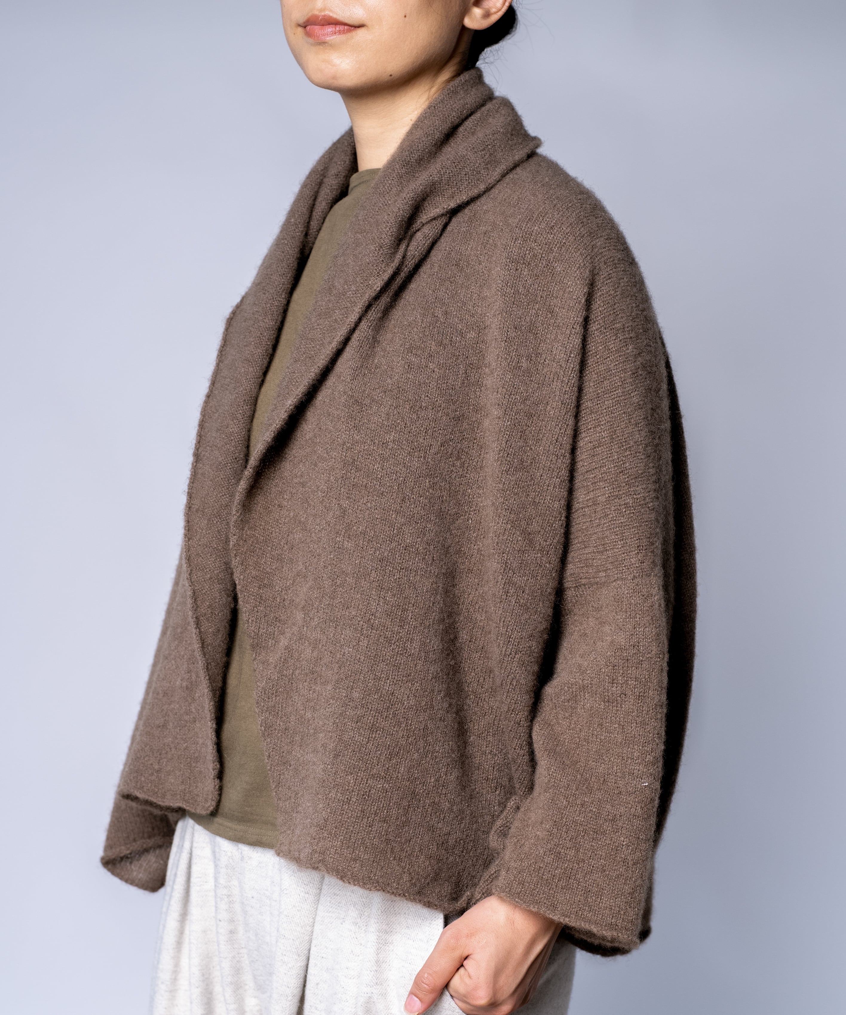 ヤク糸の襟付きカーディガン(YAA-417)