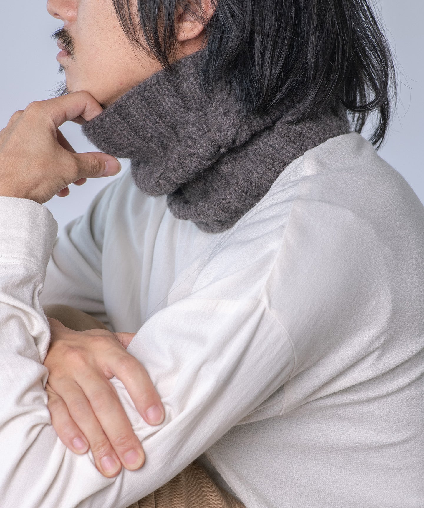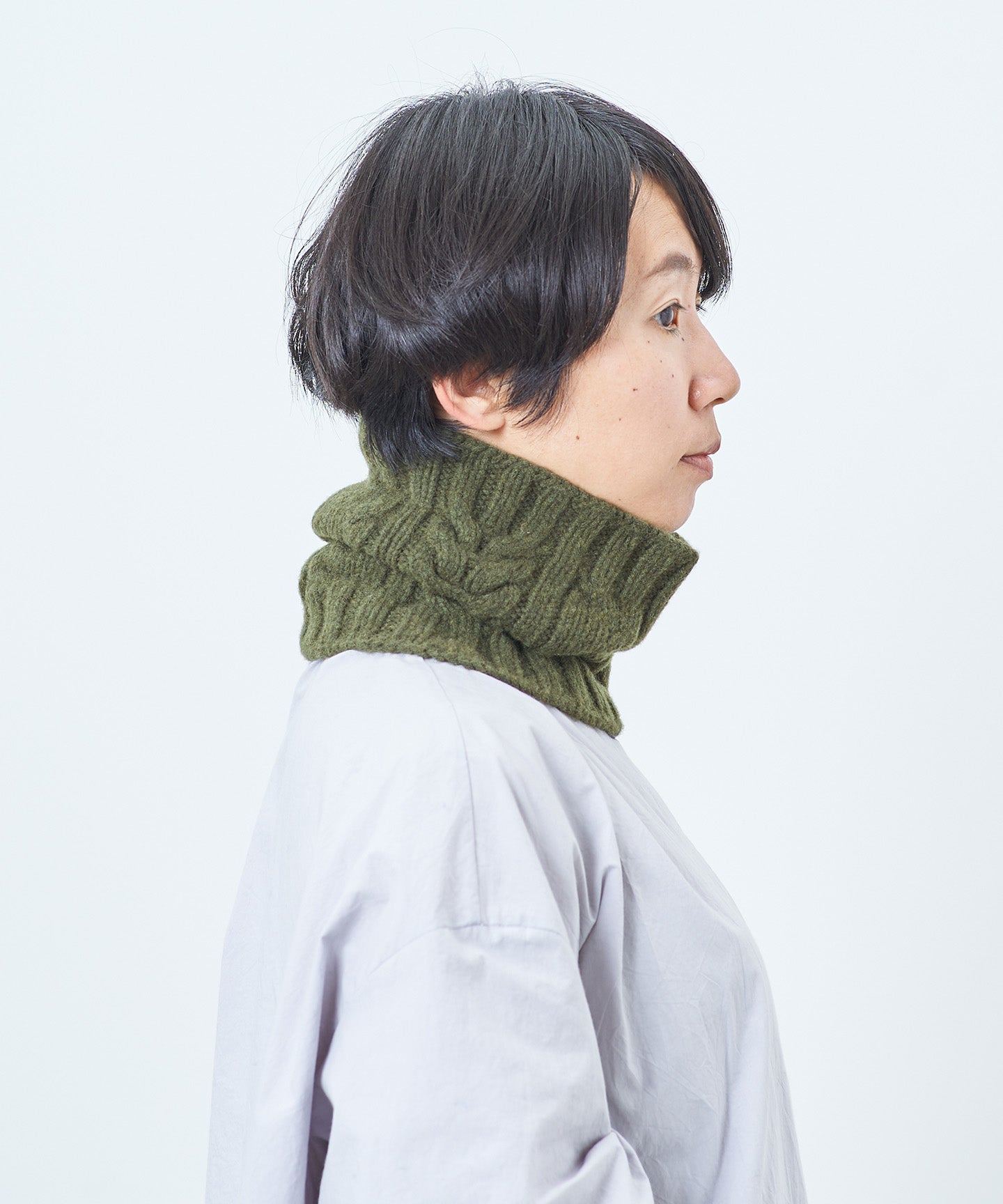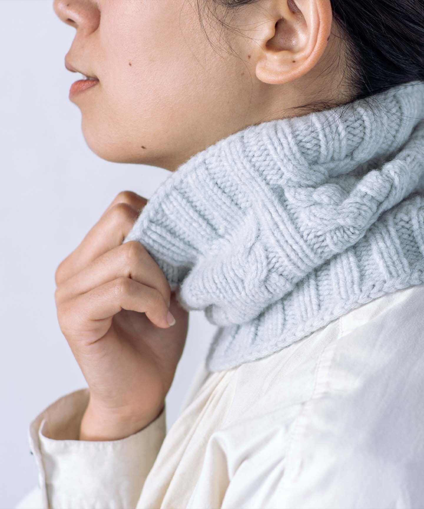 メリノウール100%のケーブル編みスヌード(WOA-012)