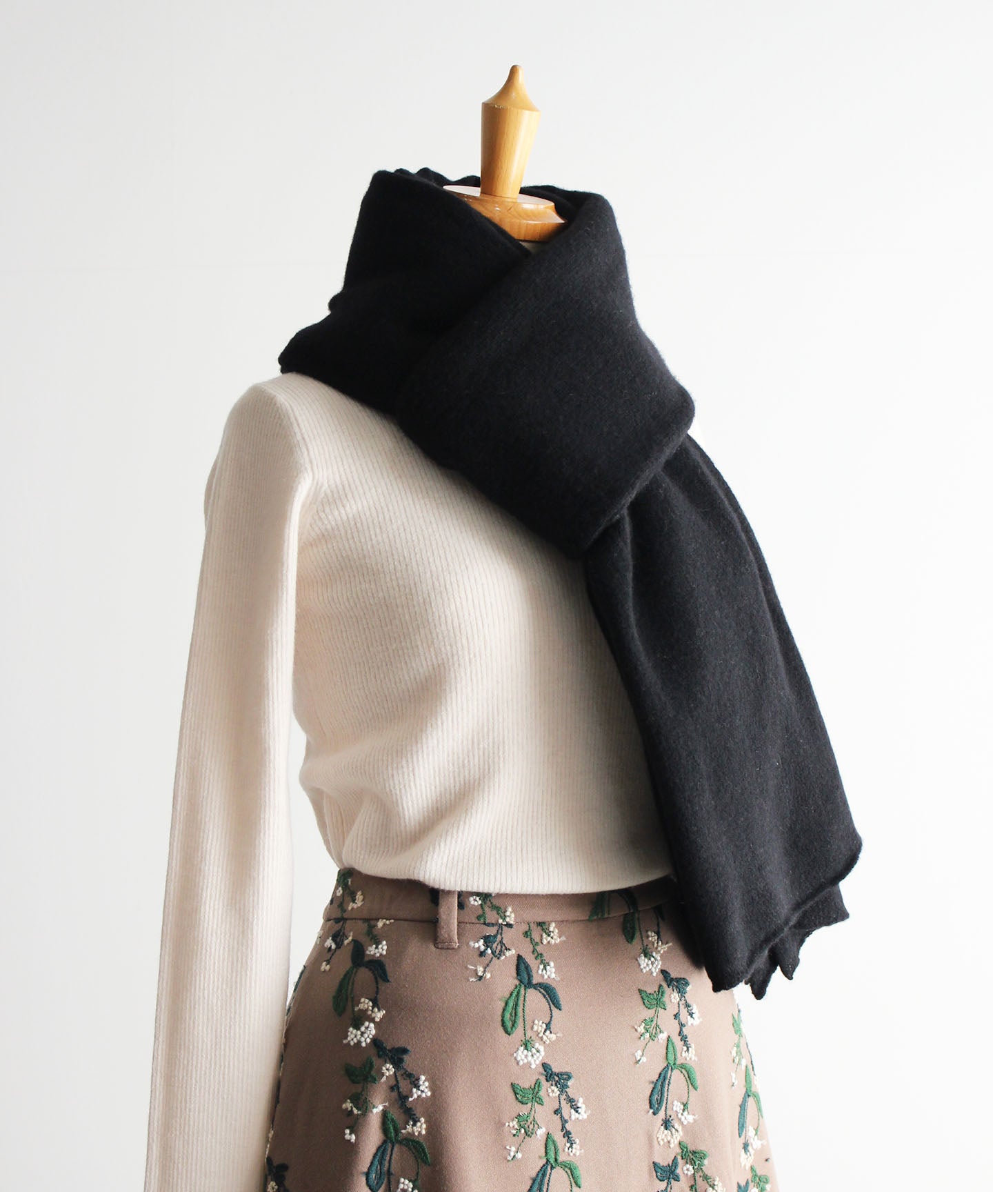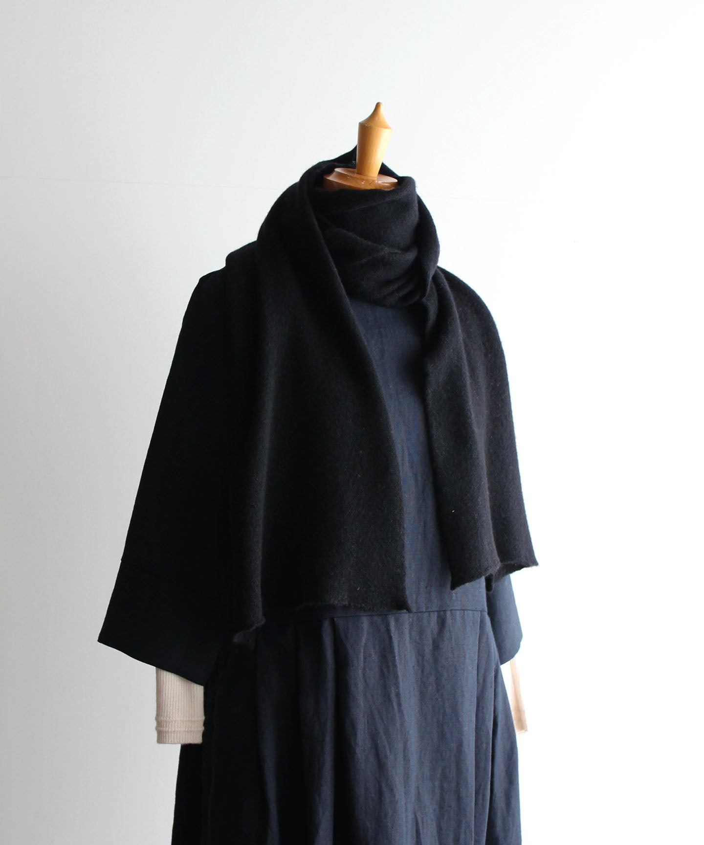 【ワケあり】ウール細幅ストール ブラック