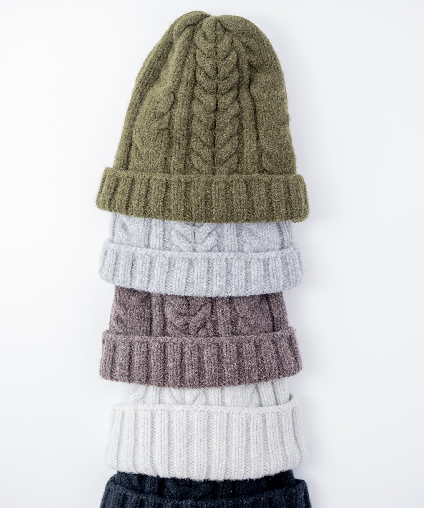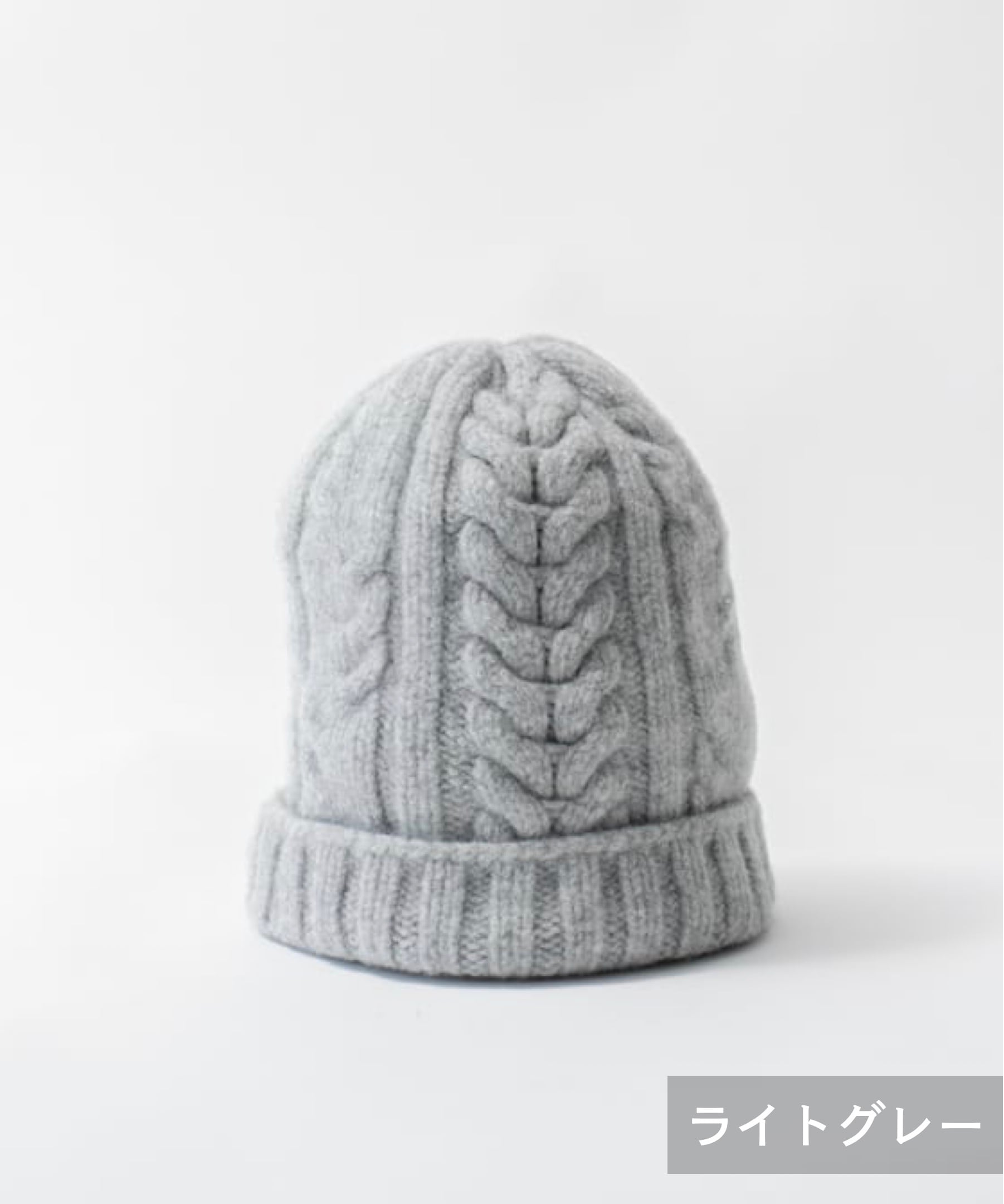 メリノウール100%のケーブル編みニット帽(WOA-008)
