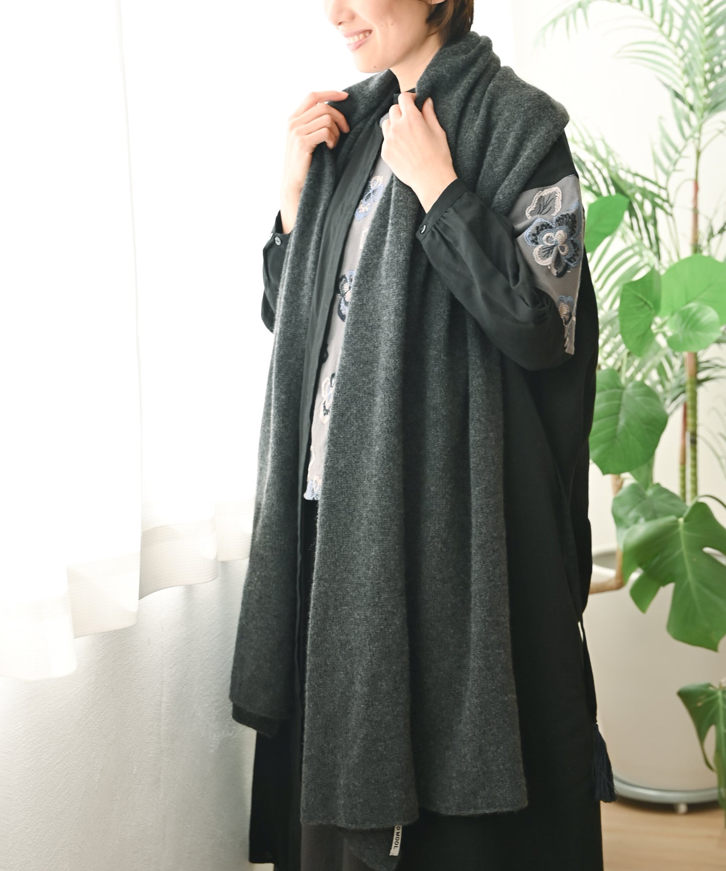 【ワケあり】ウール大判ストール ブラック