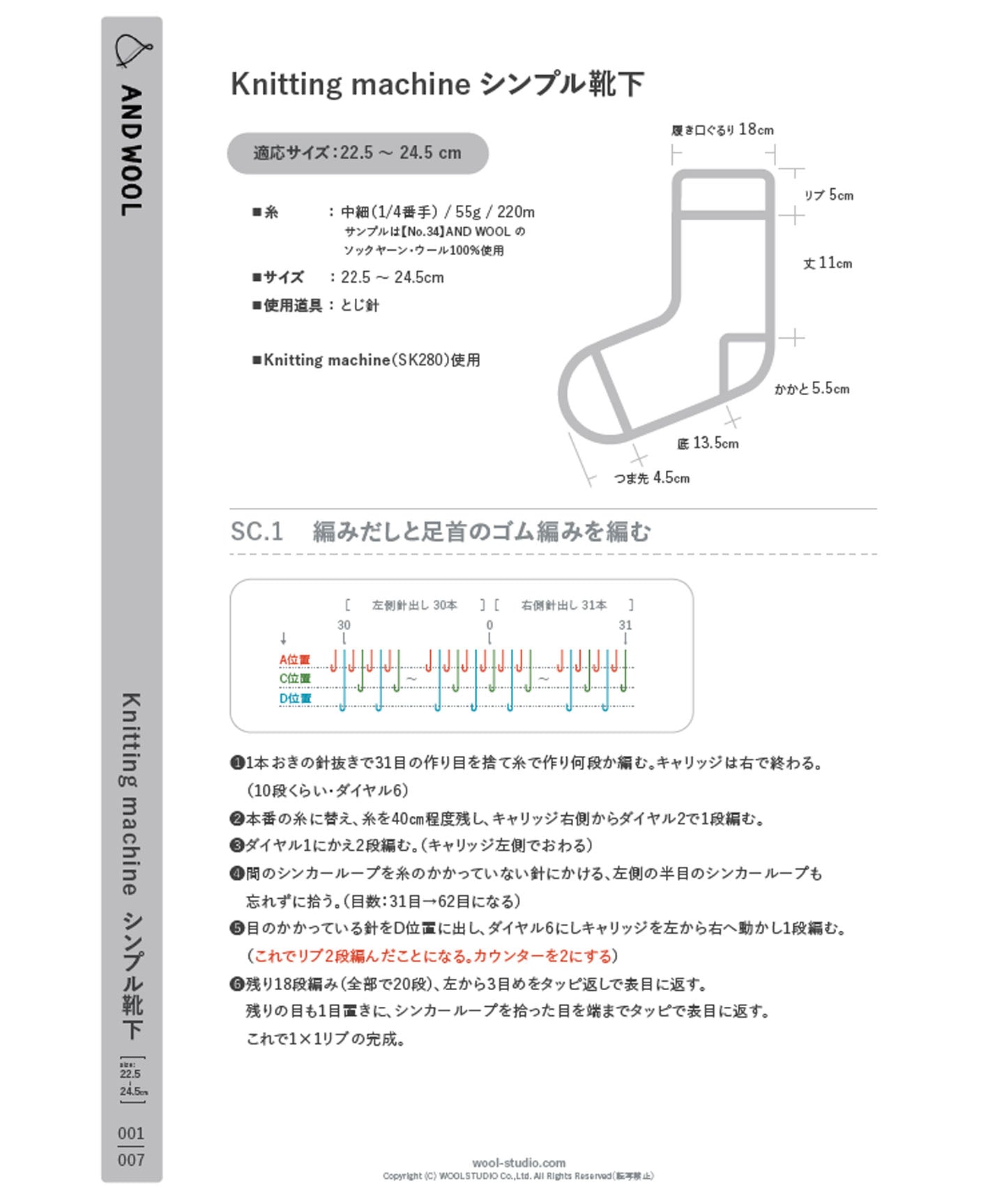 【編み図】Knitting mashine シンプル靴下【PDF データ編み図】