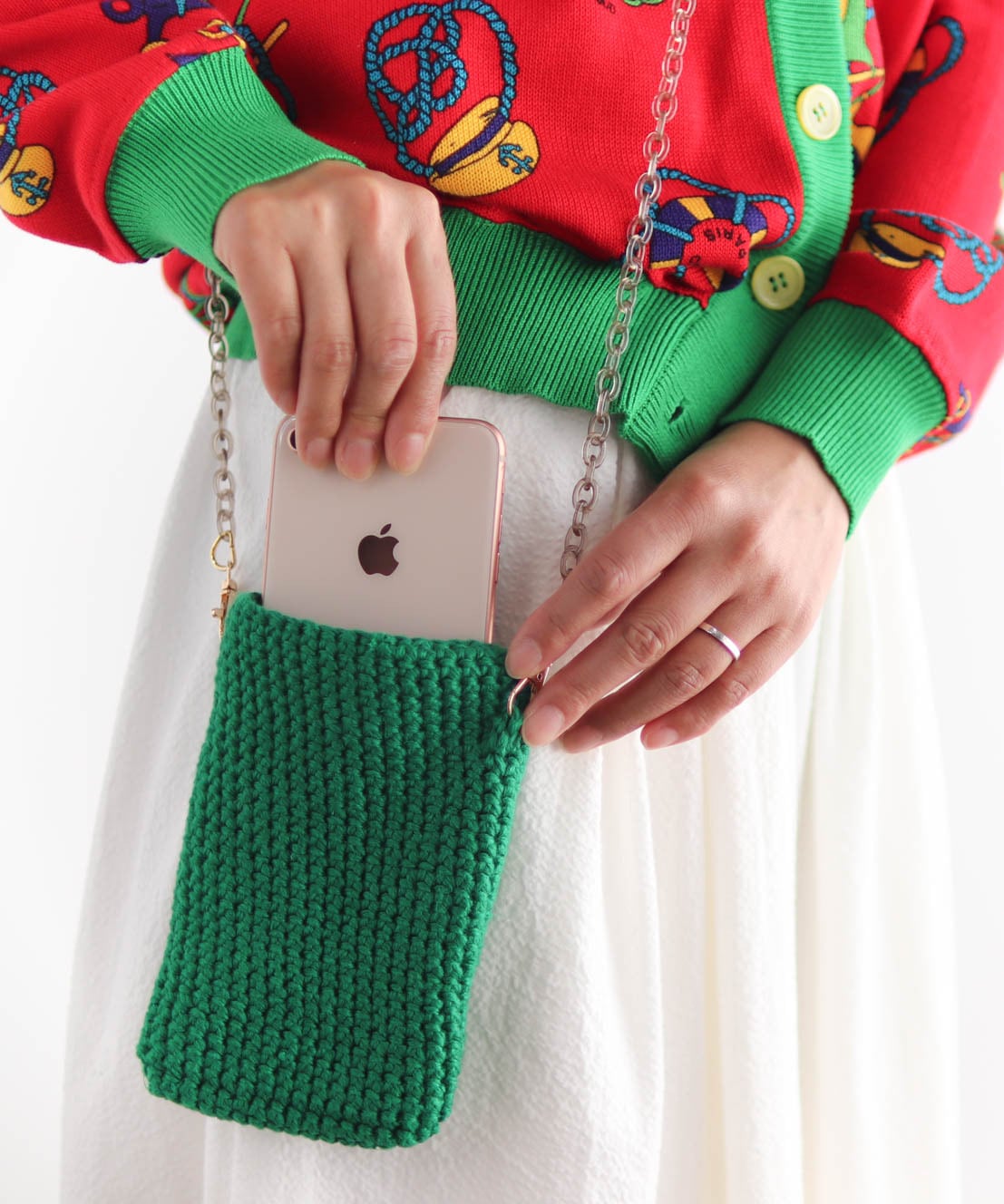 【編み図】細編みのスマホバッグ(糸:No.32)