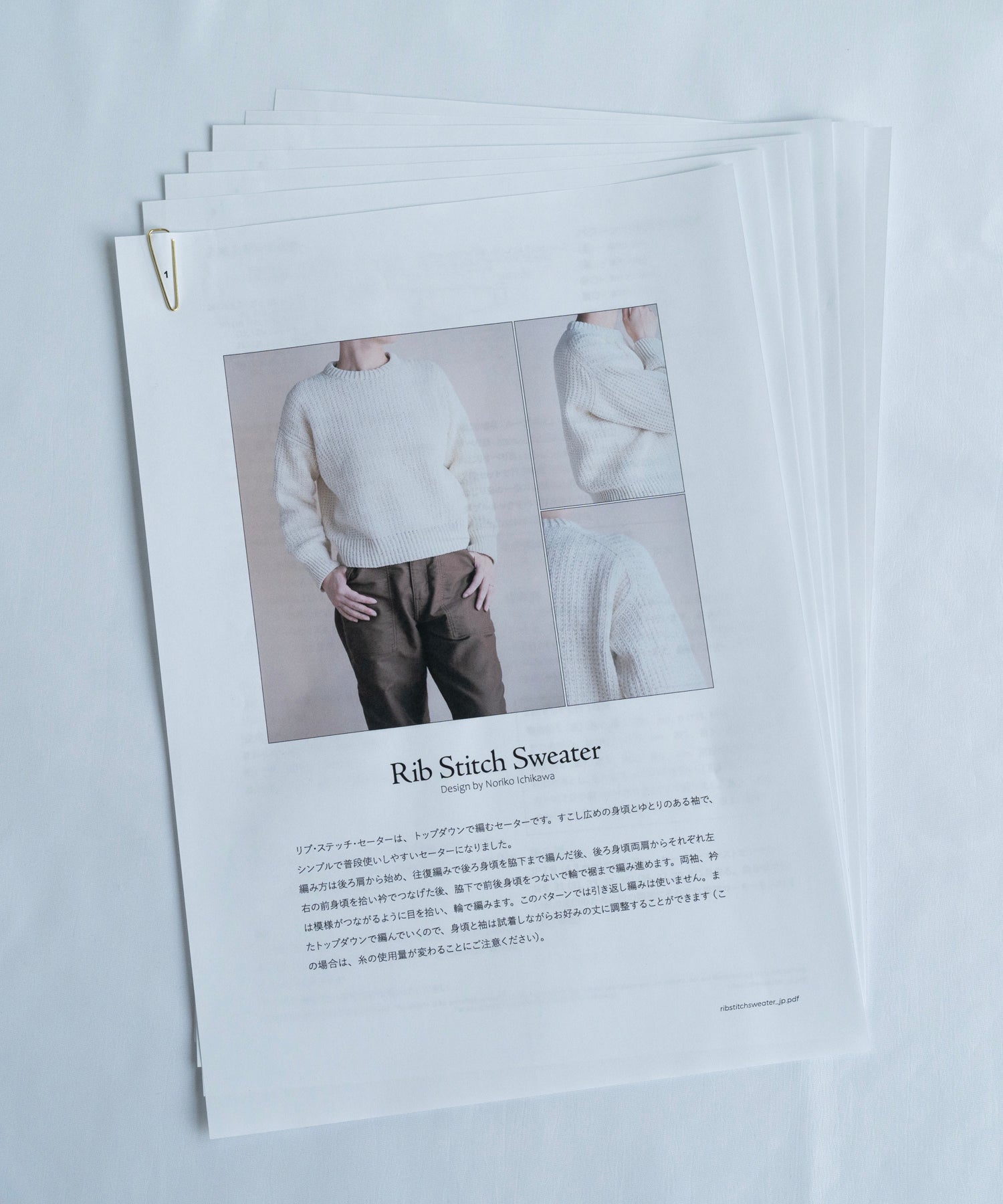【NORIKO ICHIKAWA】Rib Stitch Sweater リブステッチセーター 日本語文章パターン