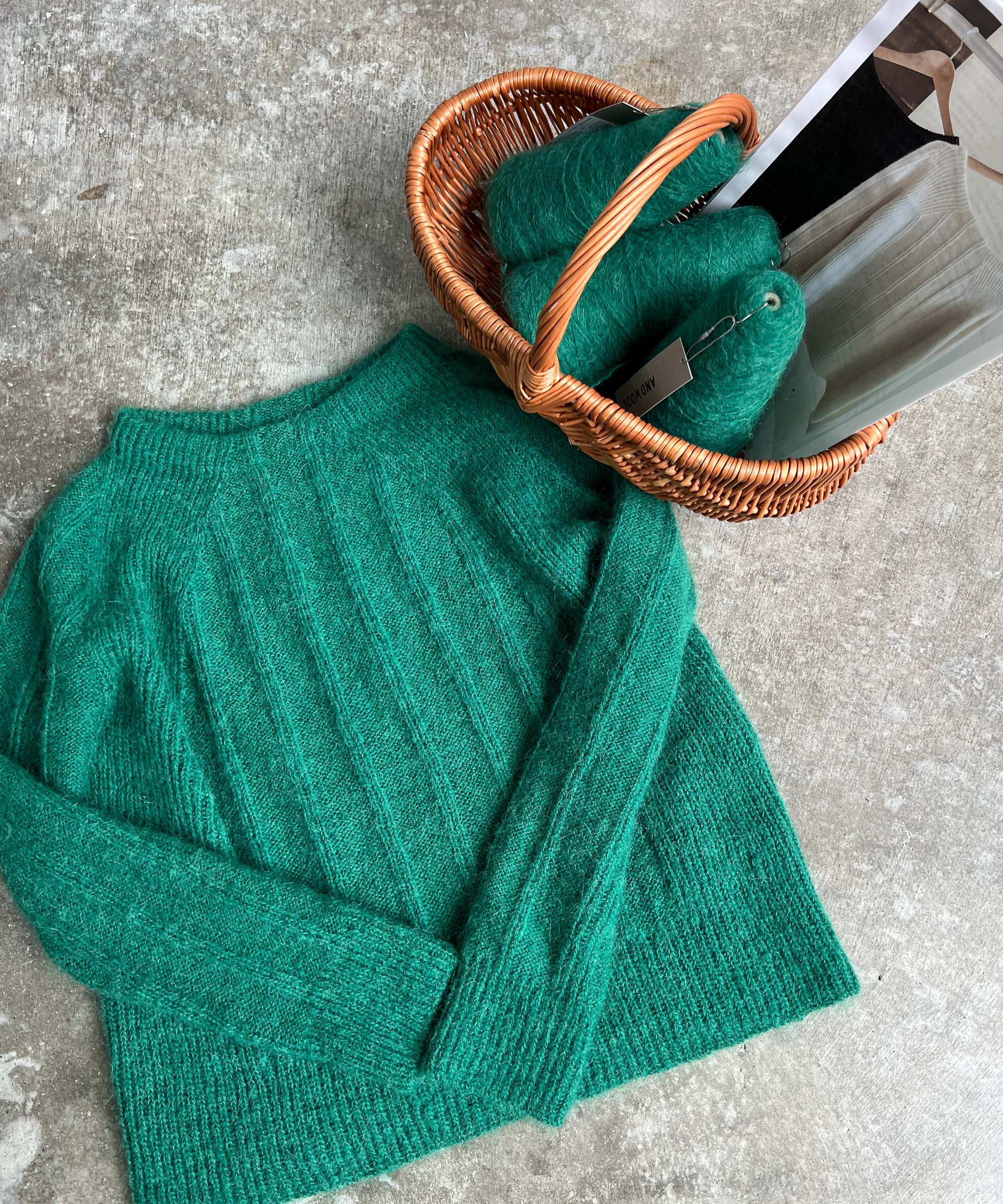 ※画像グリーンのRIDGE SWEATER リッジセーターはサイズ2で編んでいます。