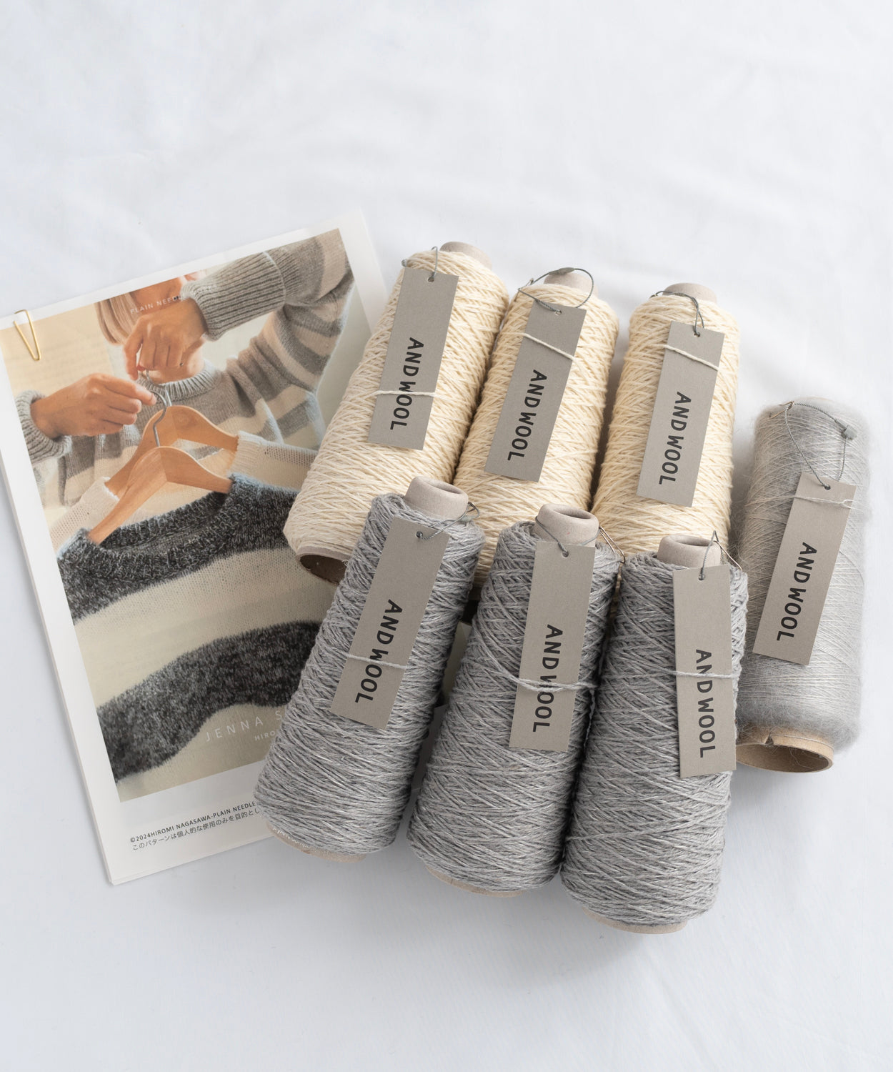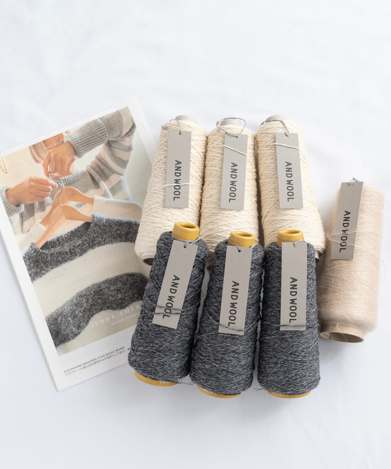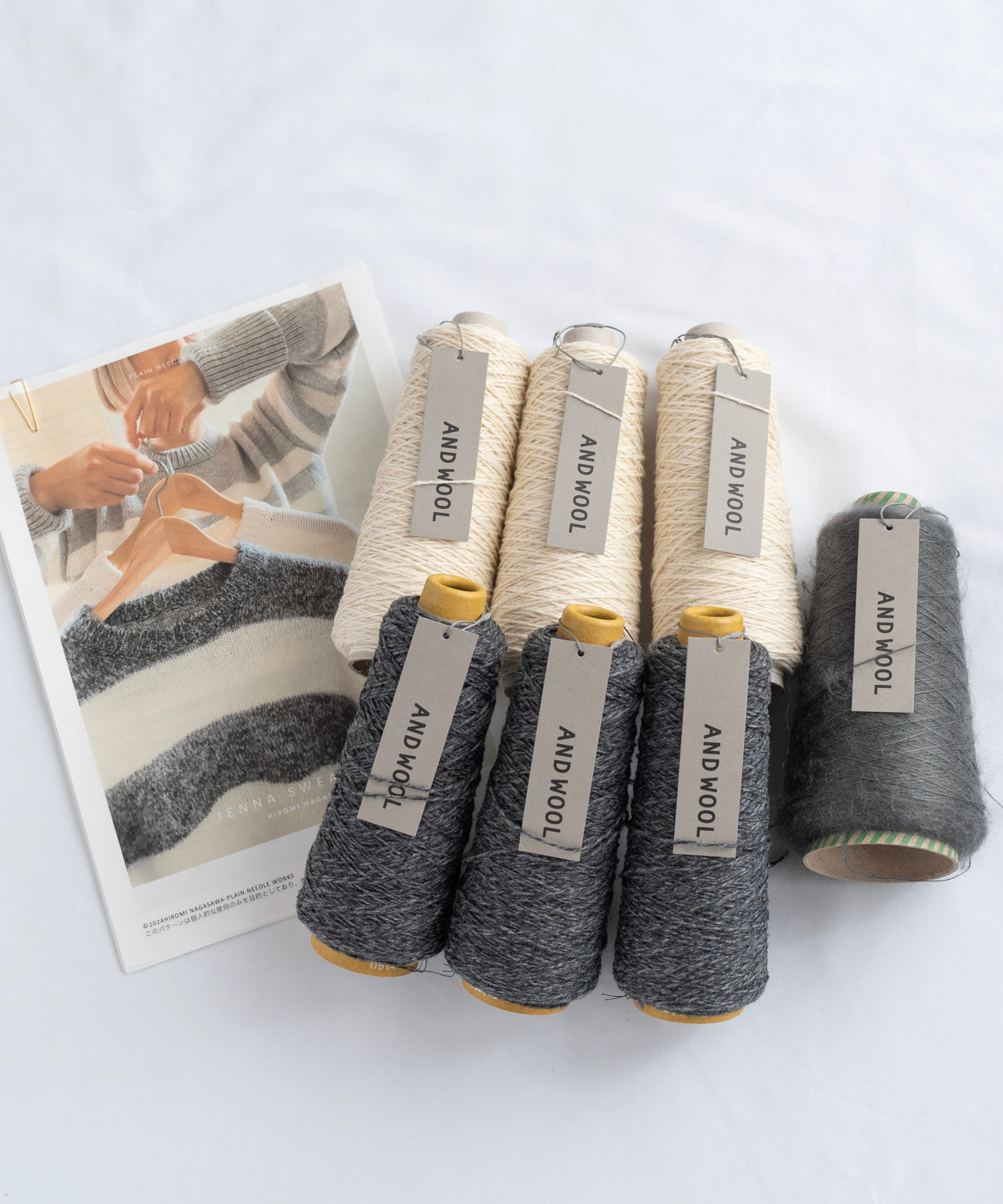 【Hiromi Nagasawa】JENNA SWEATER ジェナセーター ANDWOOL NO.33ジャパンウールリネン糸 No.31シルクモヘヤ糸引き揃え ストライプB【太ボーダー】ストライプC【極太ボーダー】セット