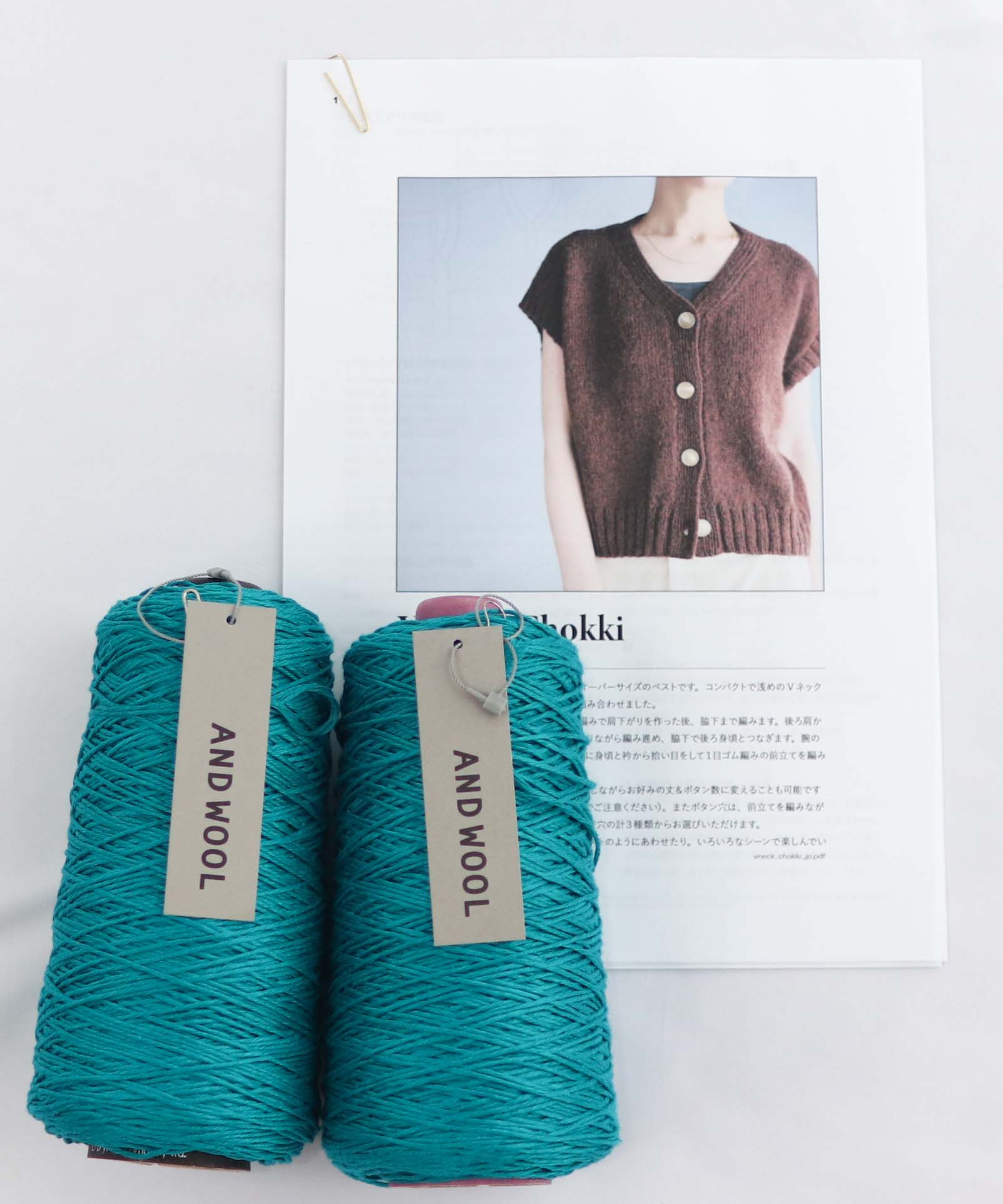 【NORIKO ICHIKAWA】V Neck Chokki Vネックチョッキ ANDWOOL【NO.32】リネン糸セット