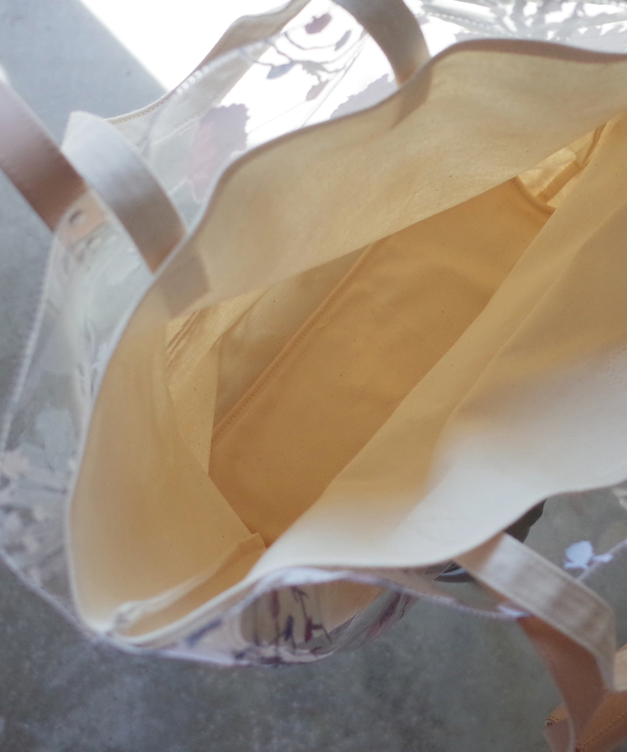 道草花刺繍柄をプリントした雨天兼用日傘 ベージュ