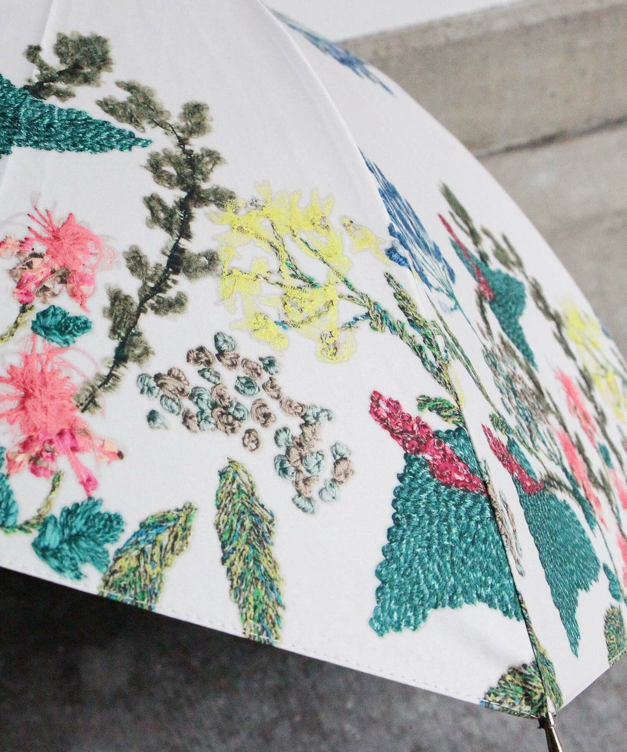〈UVカット率99%以上・一級遮光生地・晴雨兼用〉窓辺の花刺繍の日傘 (折りたたみ傘タイプ)(ELS49-mini)