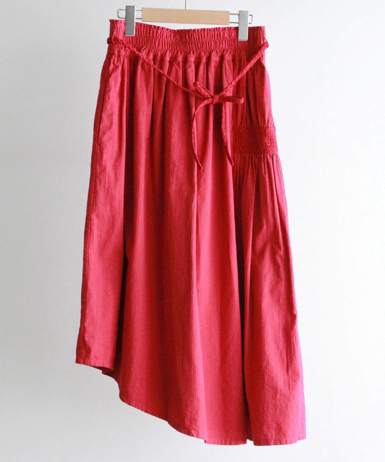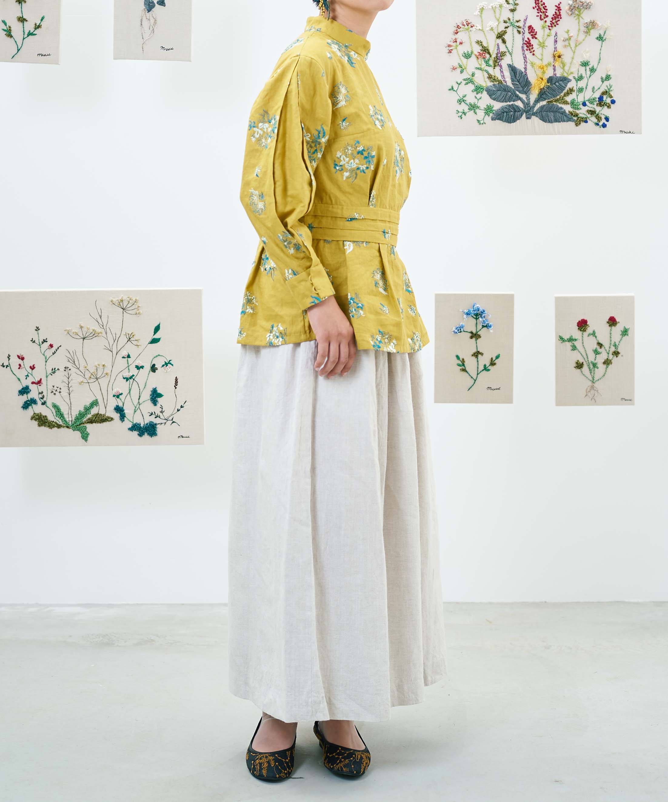 〈オーガニックコットン〉〈通年着られる〉筆記帳刺繍 ウエストゴムあり 裏地あり ギャザースカート (mua215)