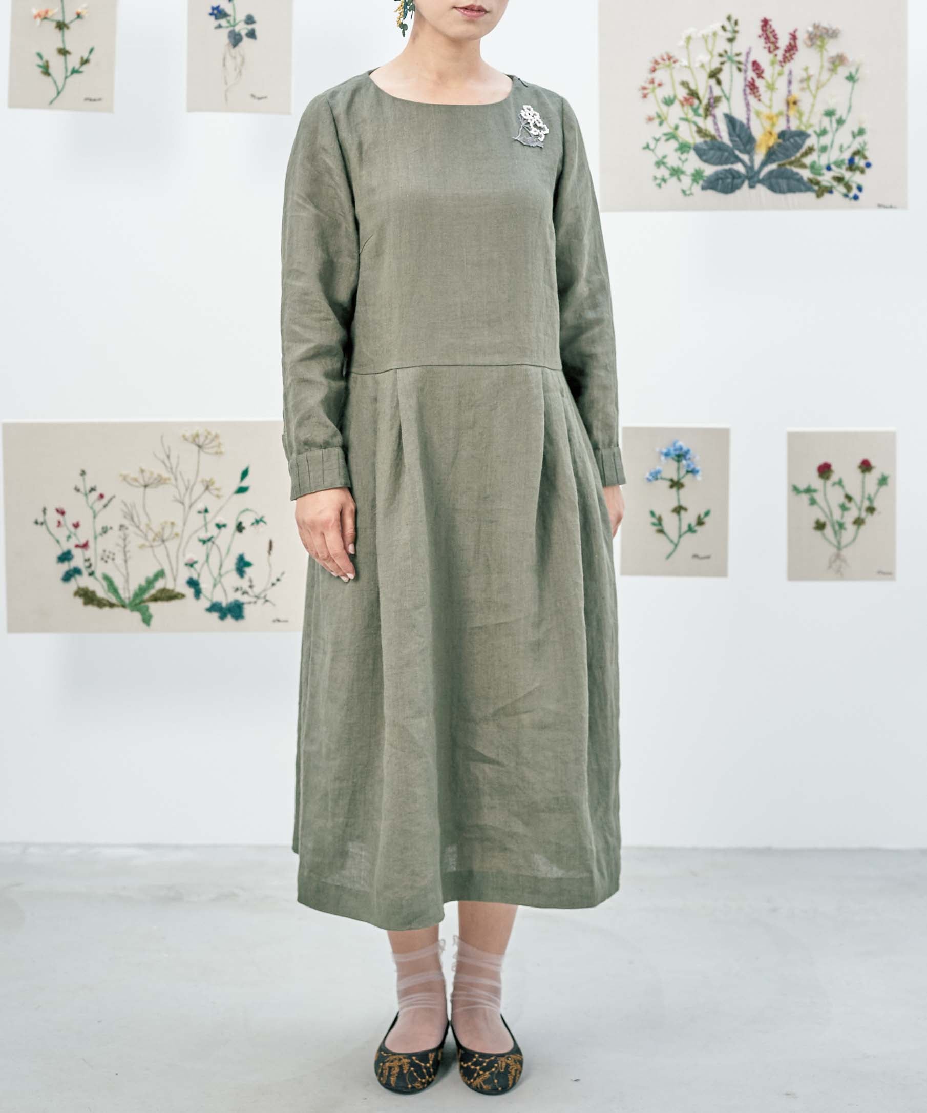 キャビネット別注 ベルギーリネンワンピースドレス(evc637)