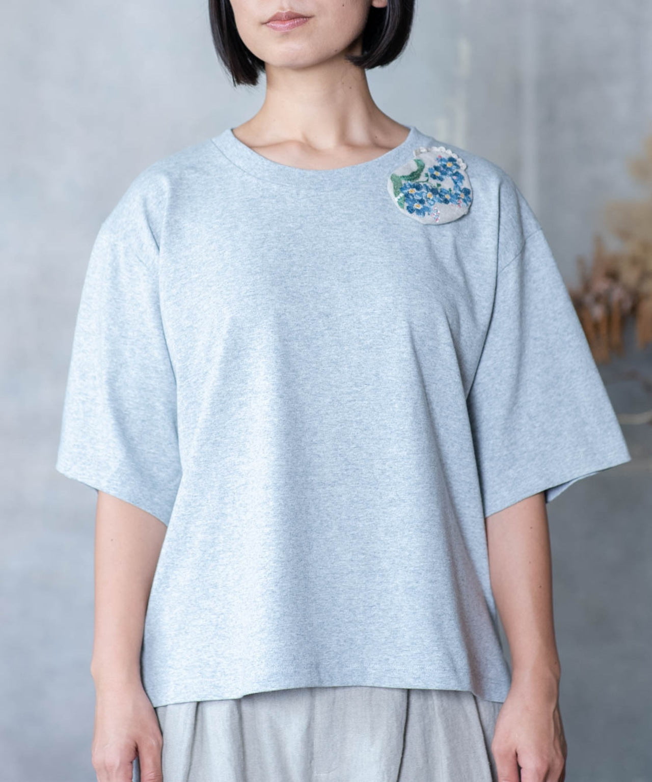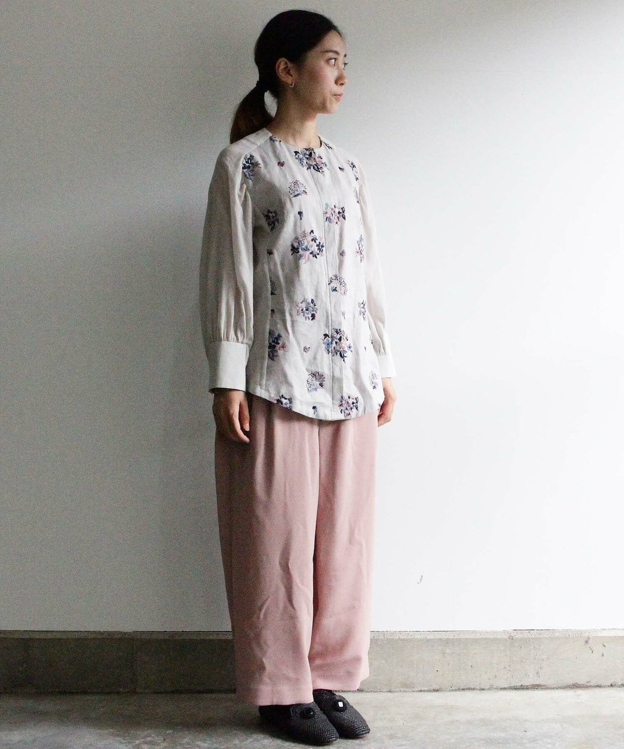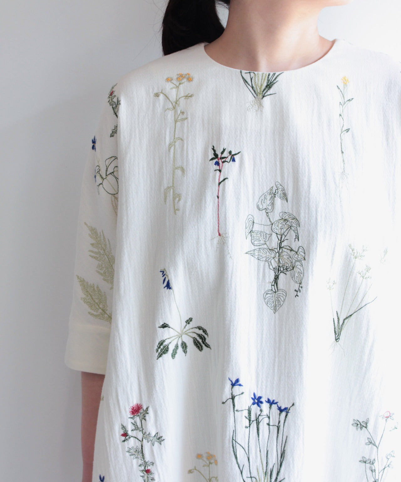 〈畑の花モチーフ水彩画プリント〉hatake no hana ブラウス (evi109)