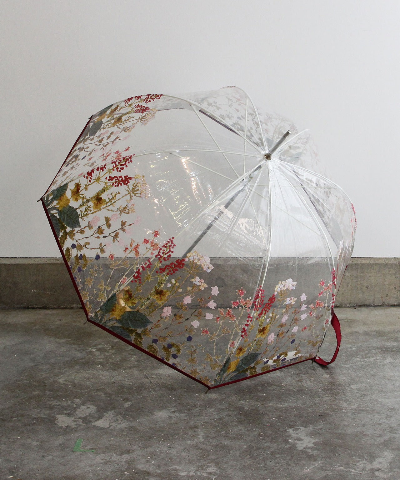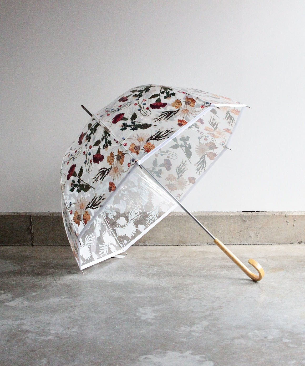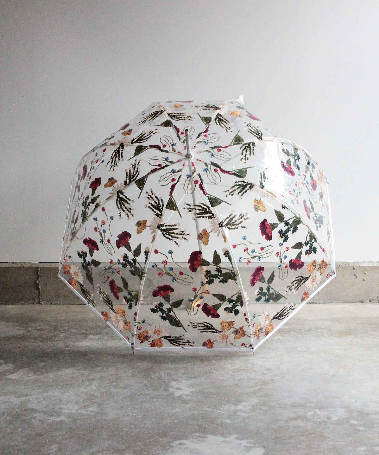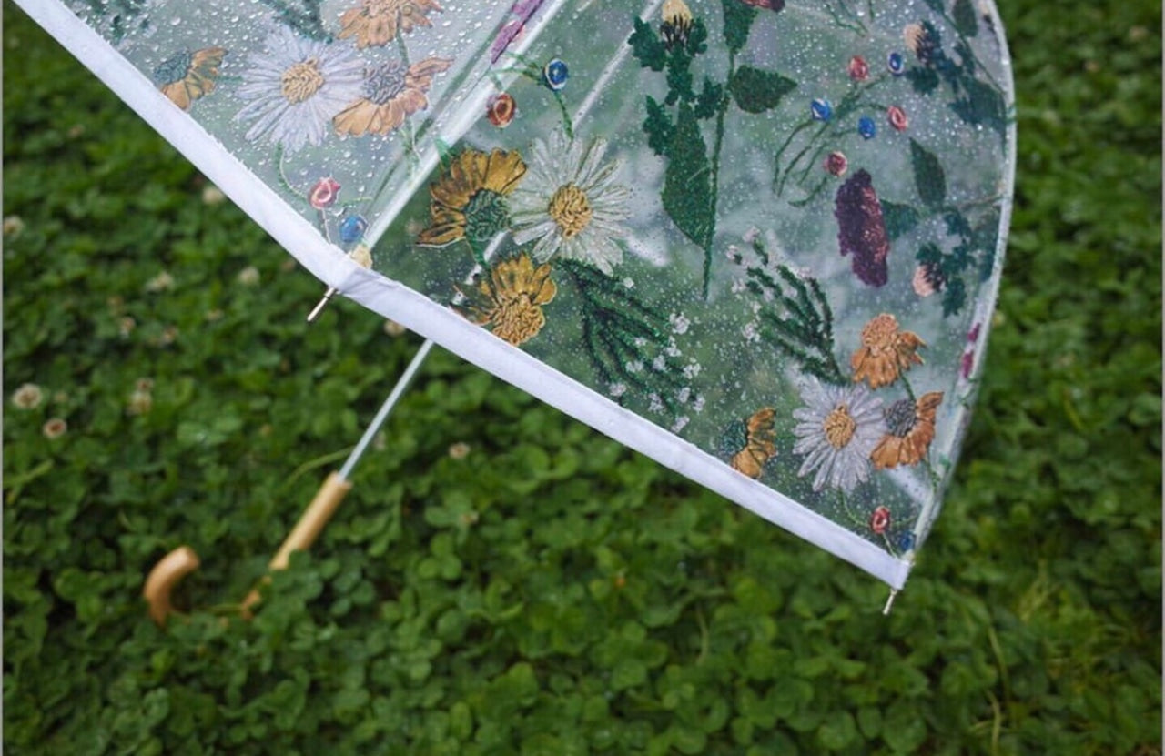刺繍花柄プリントビニール傘(WHT)