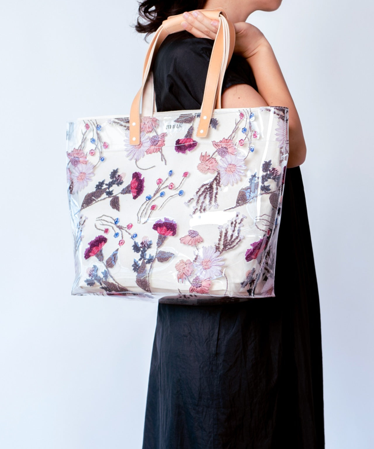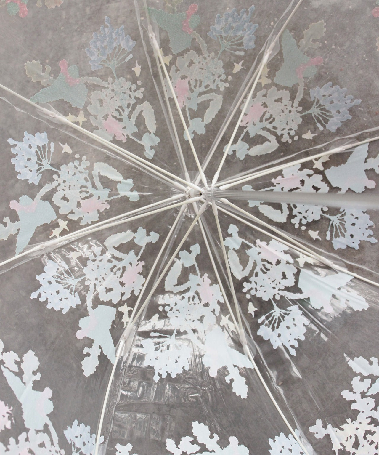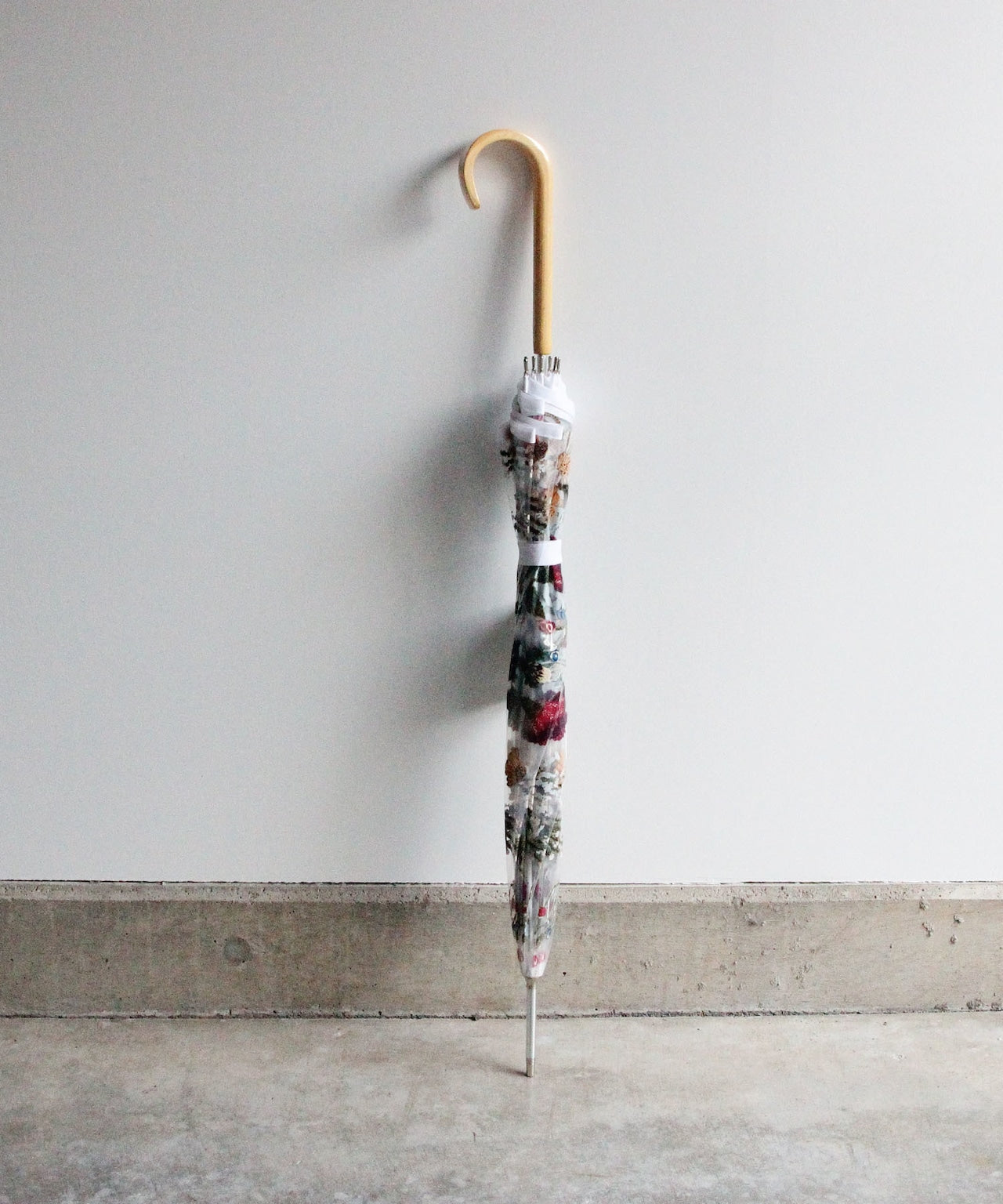 刺繍花柄プリントビニール傘(WHT)