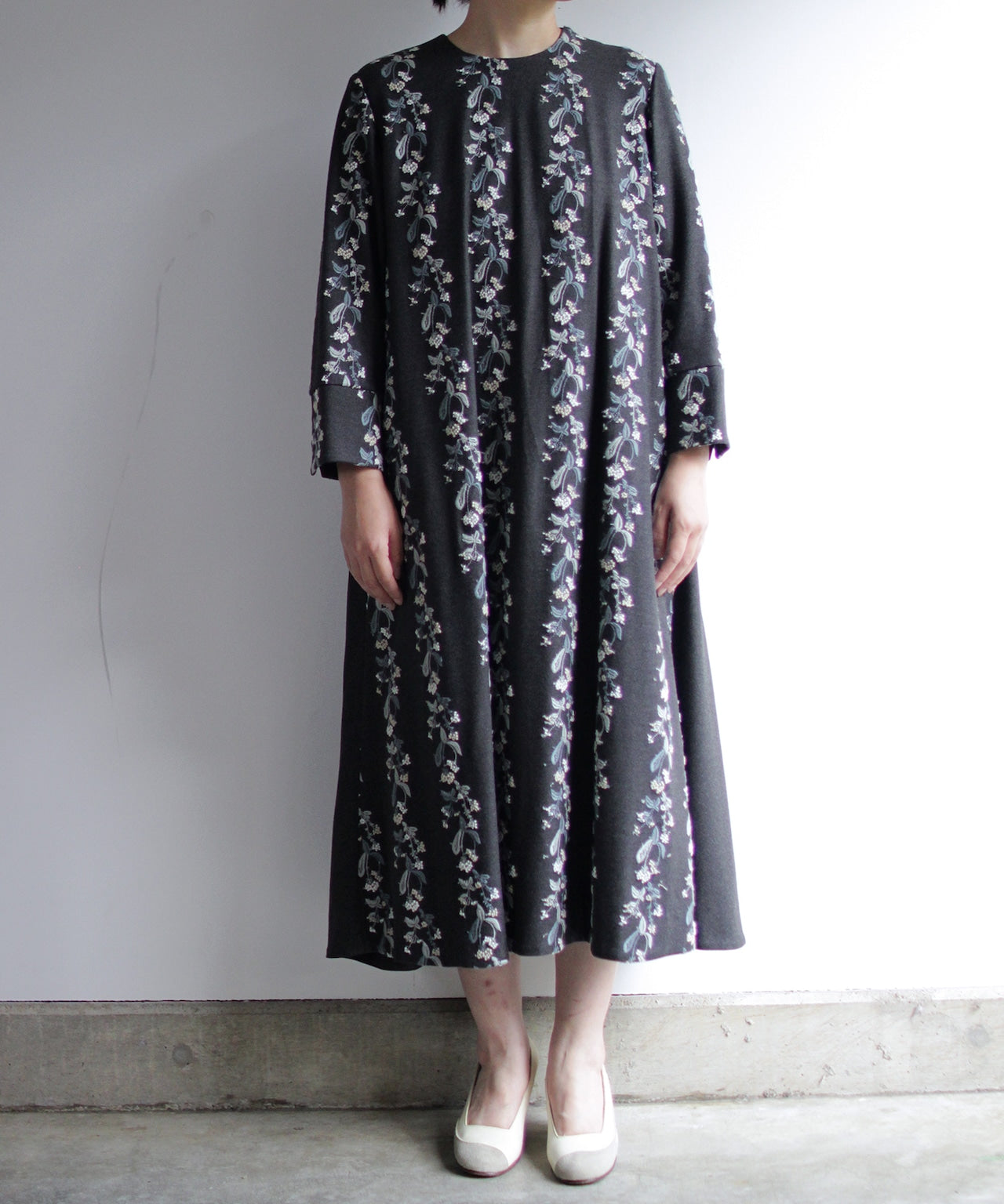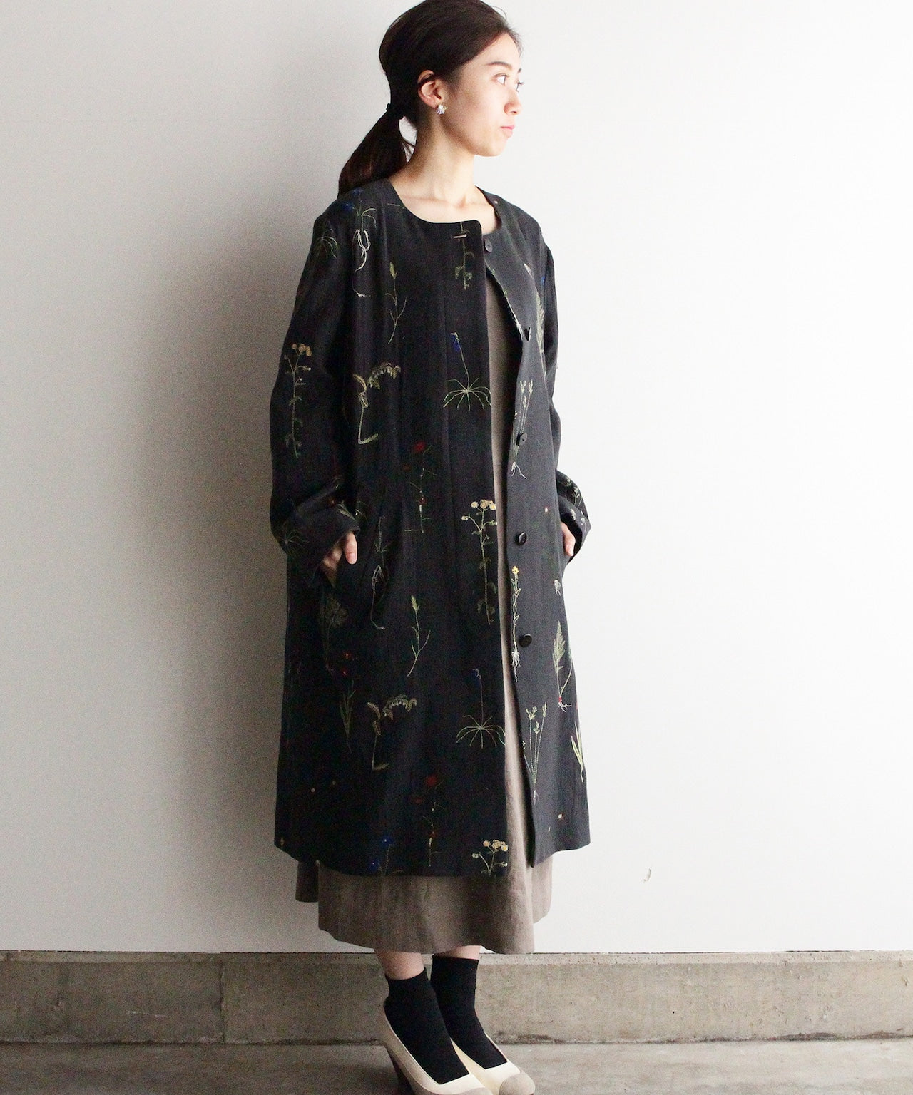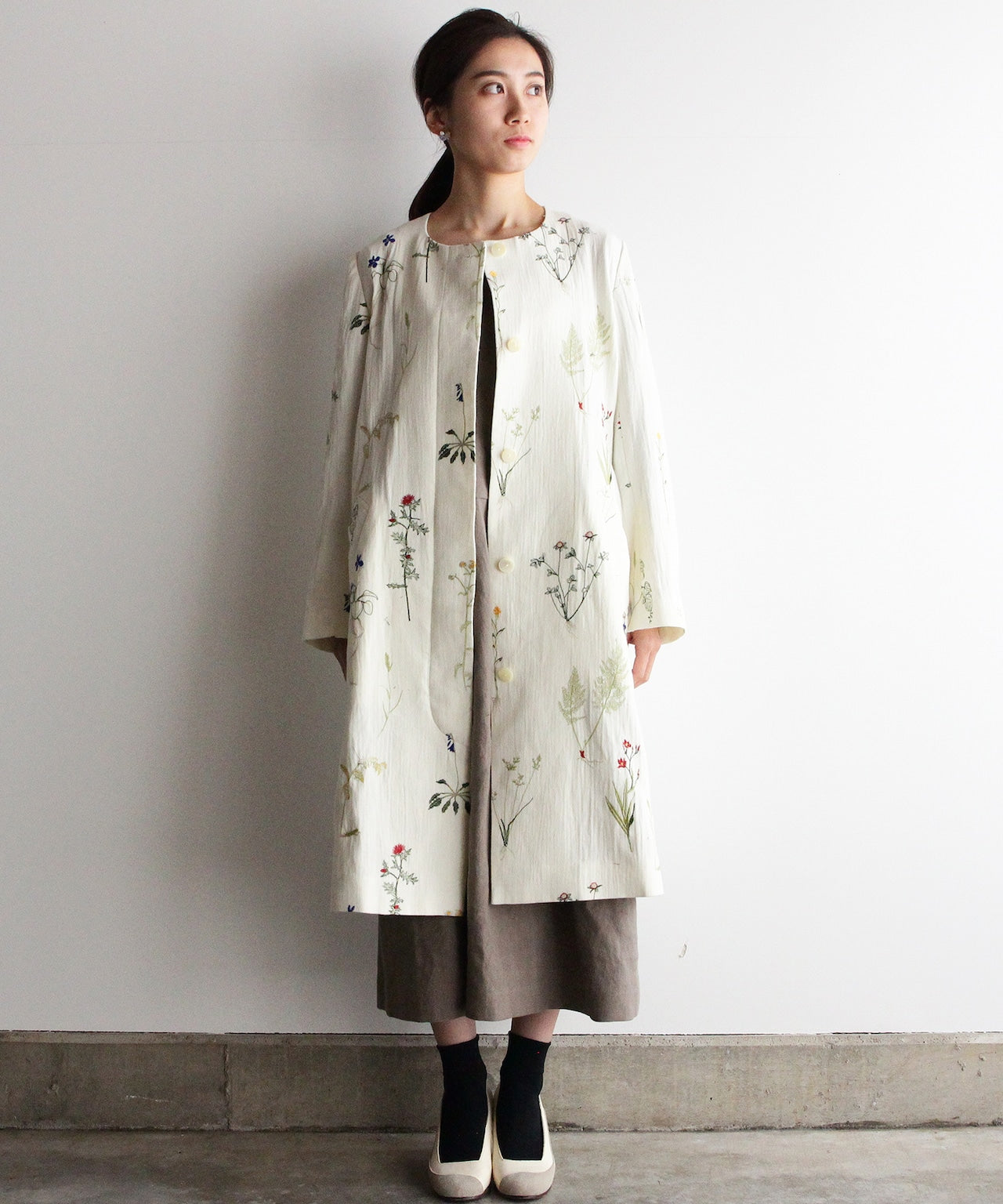 【MORI 1836】刺繍生地ノーカラーコート (evf552 size02.03)