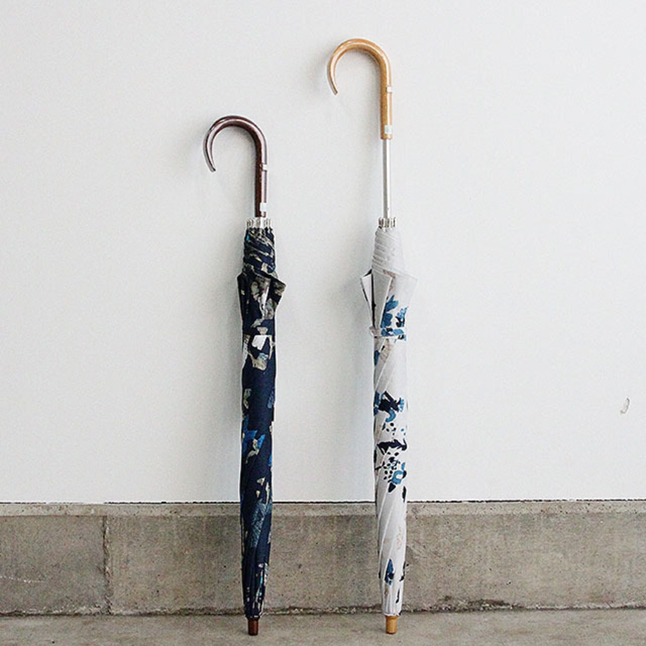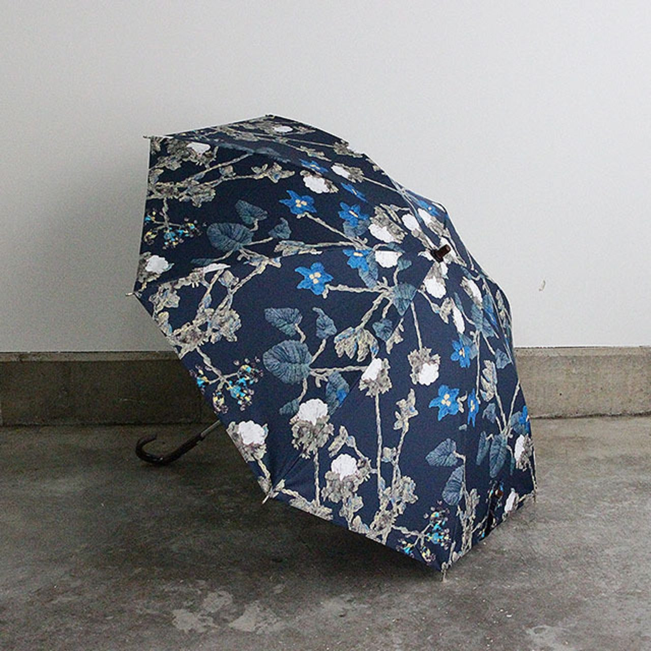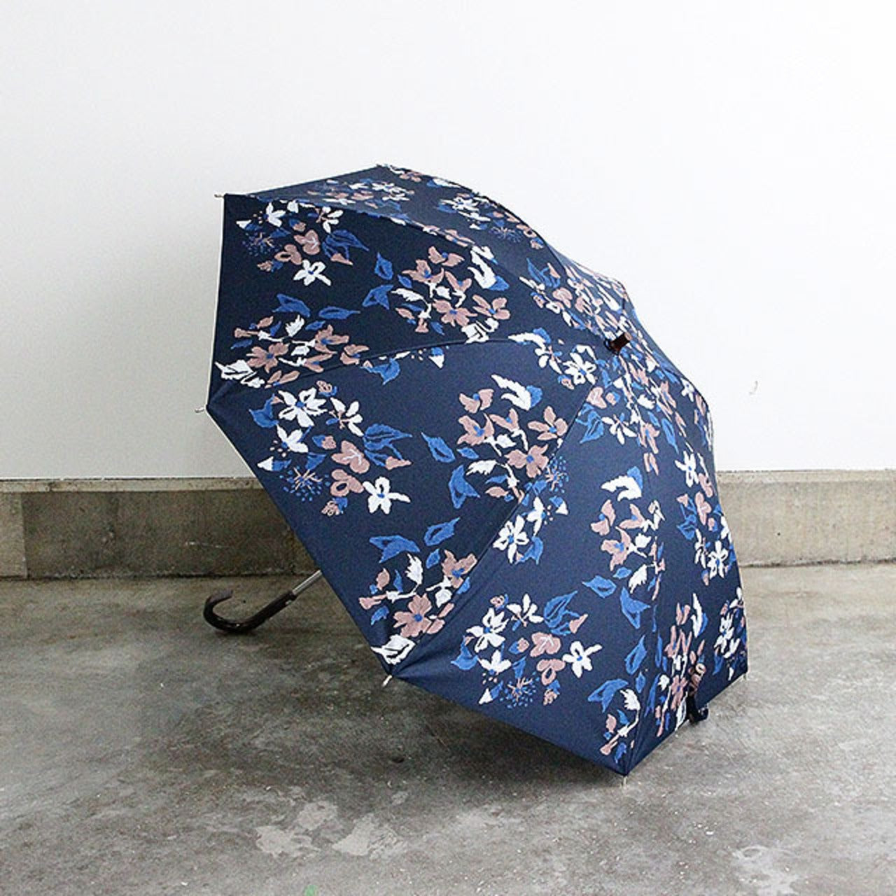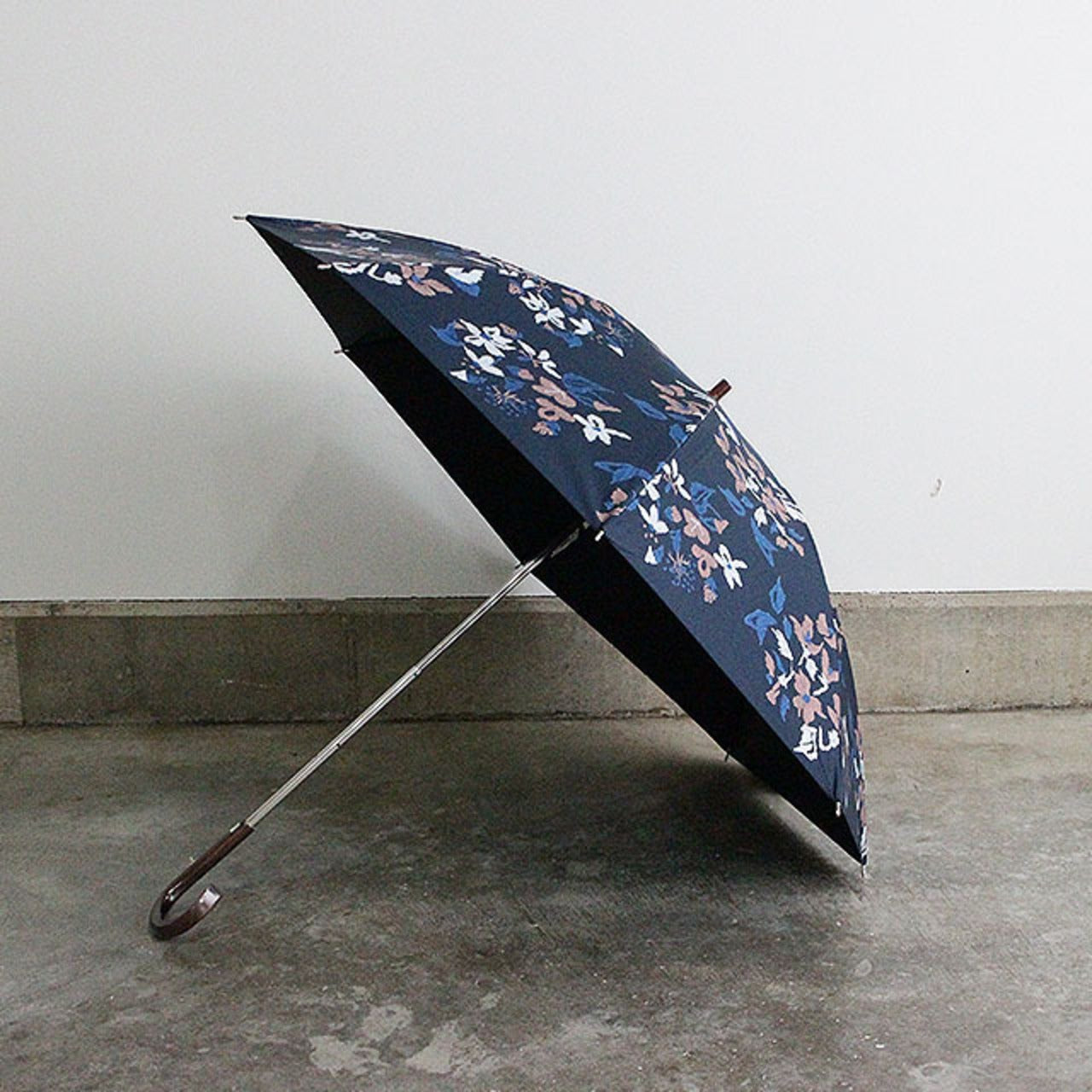 道草花刺繍柄をプリントした雨天兼用日傘 ネイビー