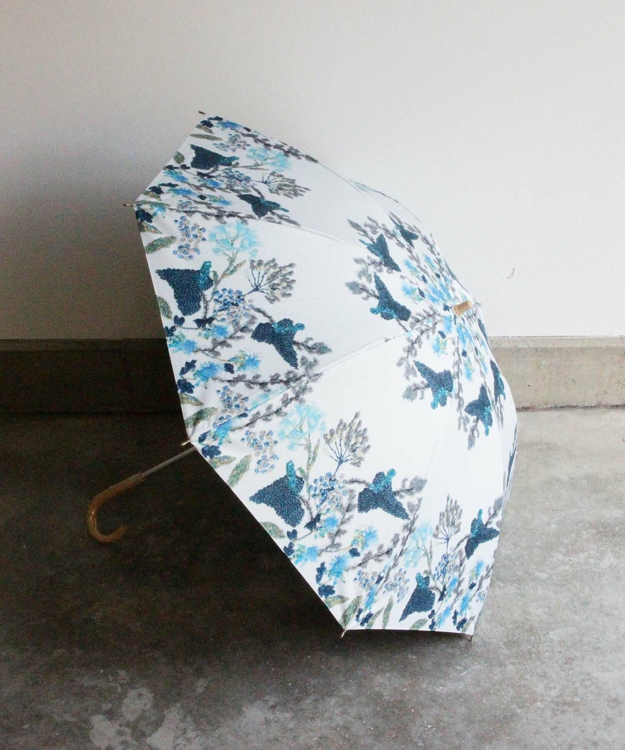 刺繍花壇柄をプリントした雨天兼用日傘 BLU