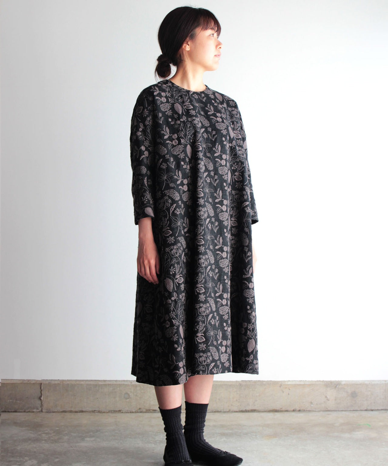 【植物影絵】コットンワンピースドレス(evg683)