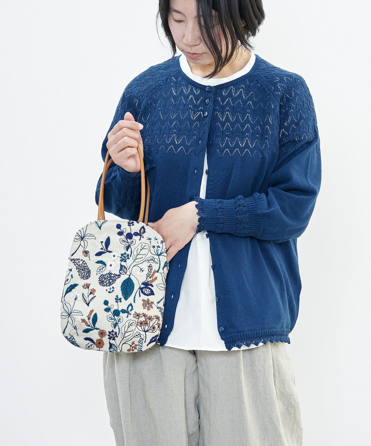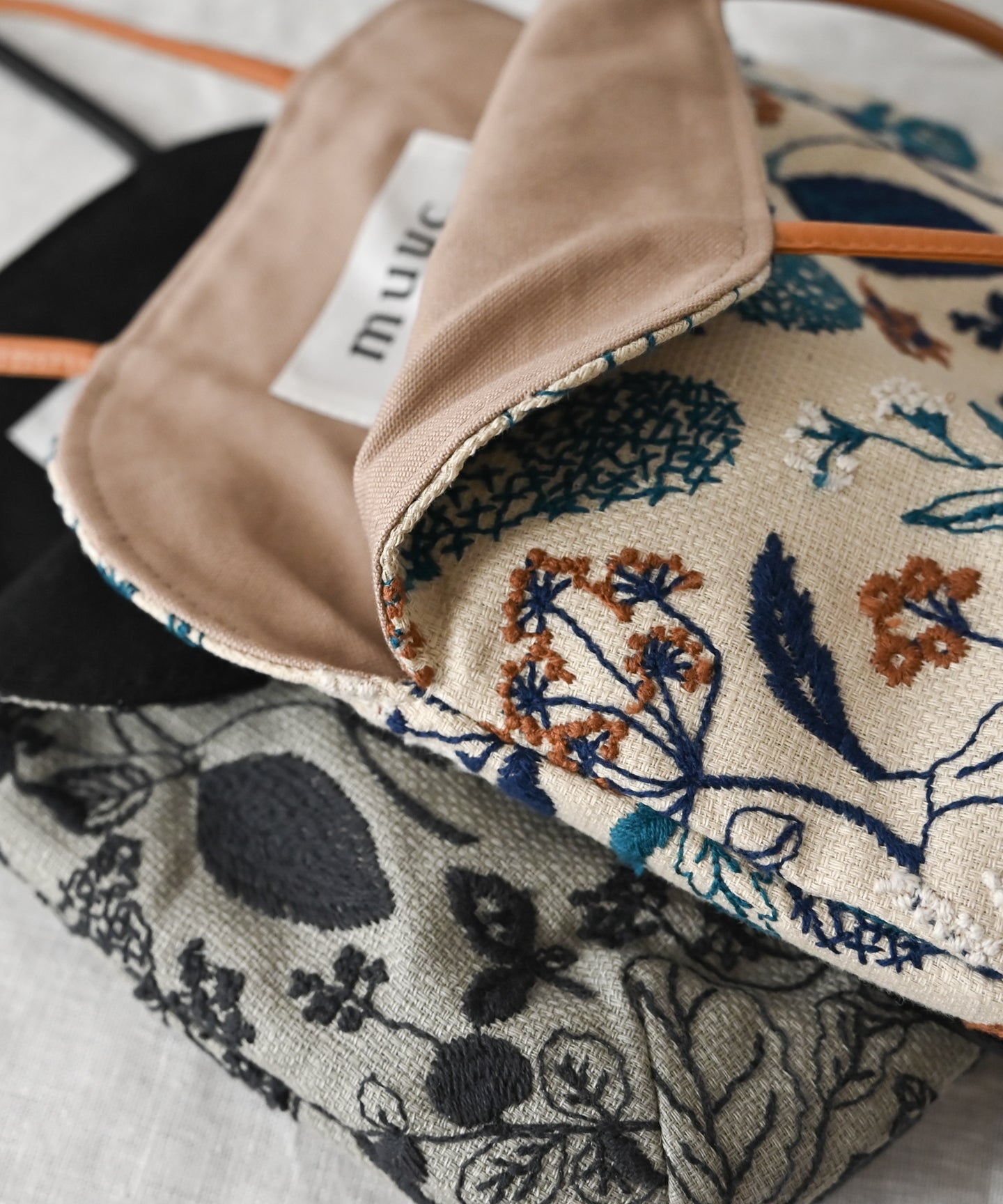 の調子や運針のやり方を工夫し、手刺繍のような表情に仕上げています。