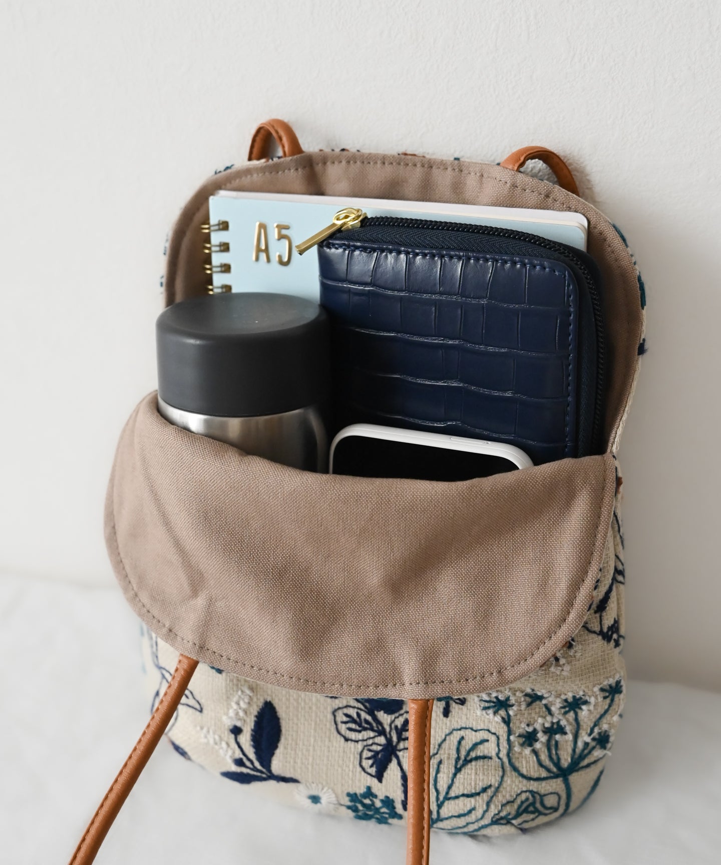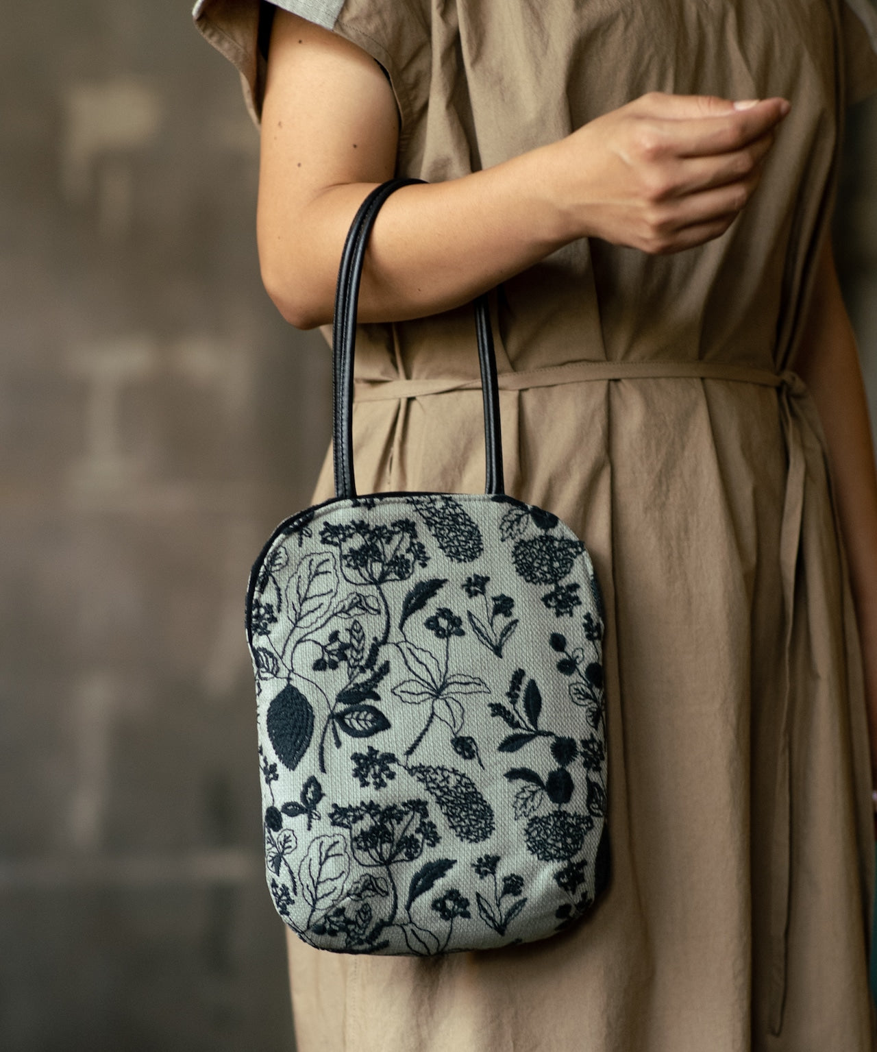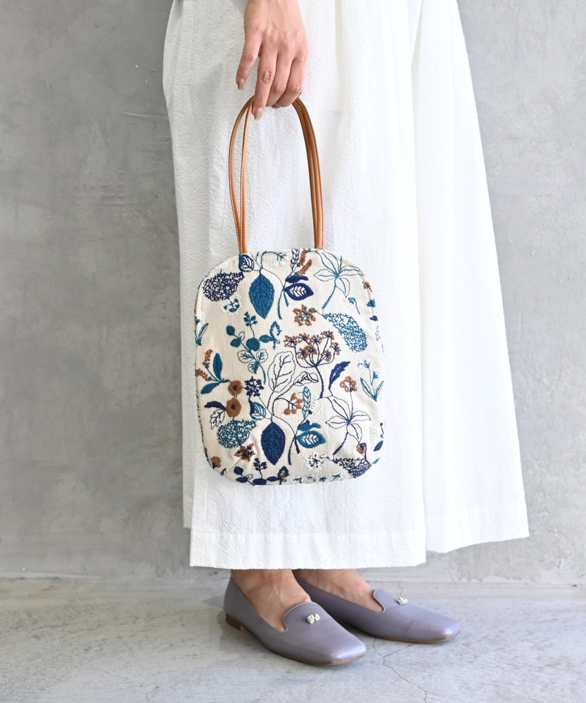 〈マチなしフラット〉〈長財布・ペットボトル可〉〈持ち手レザー〉筆記帳刺繍 ミニサイズバッグ (bag027)