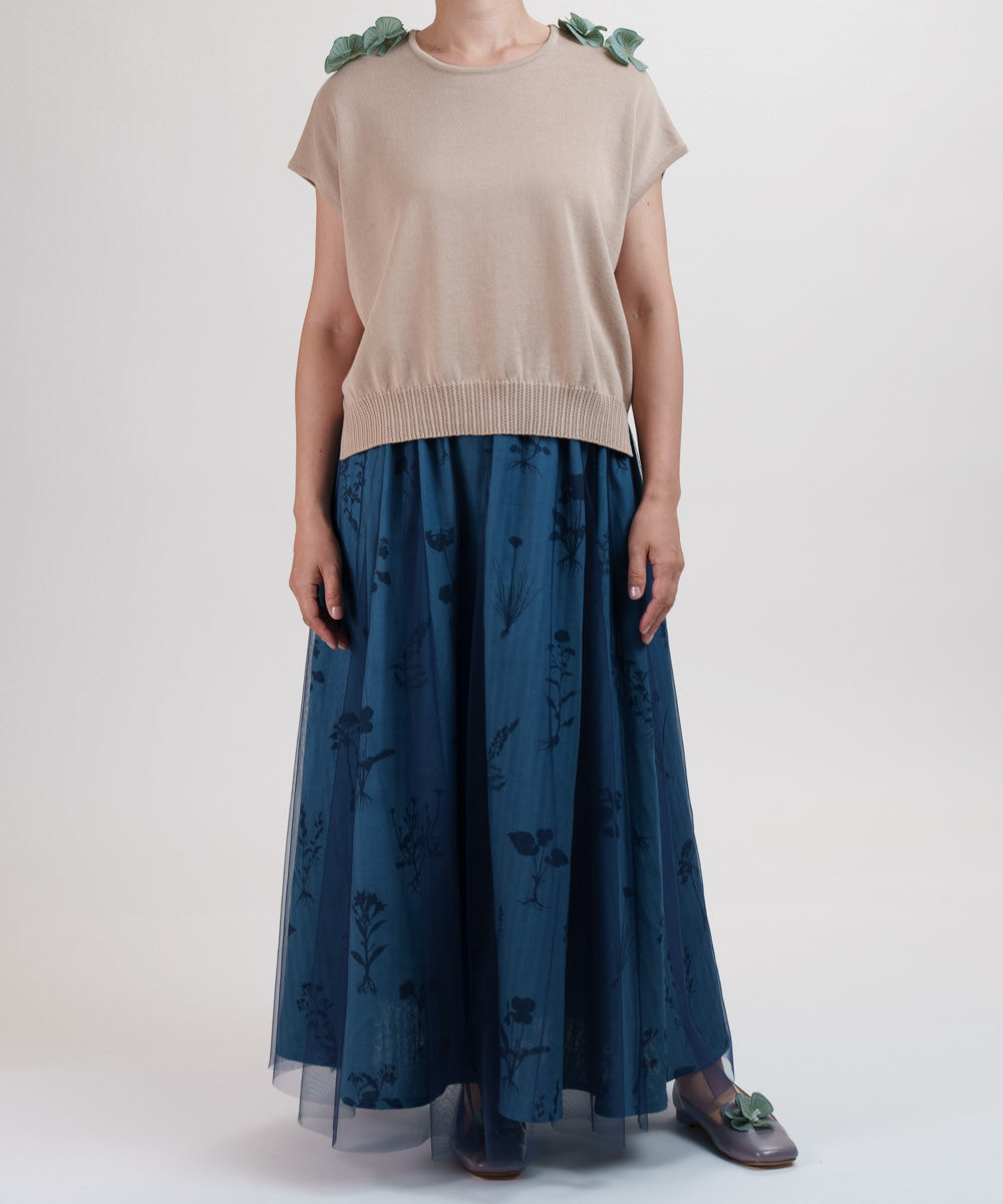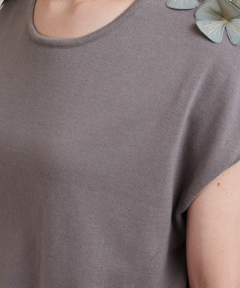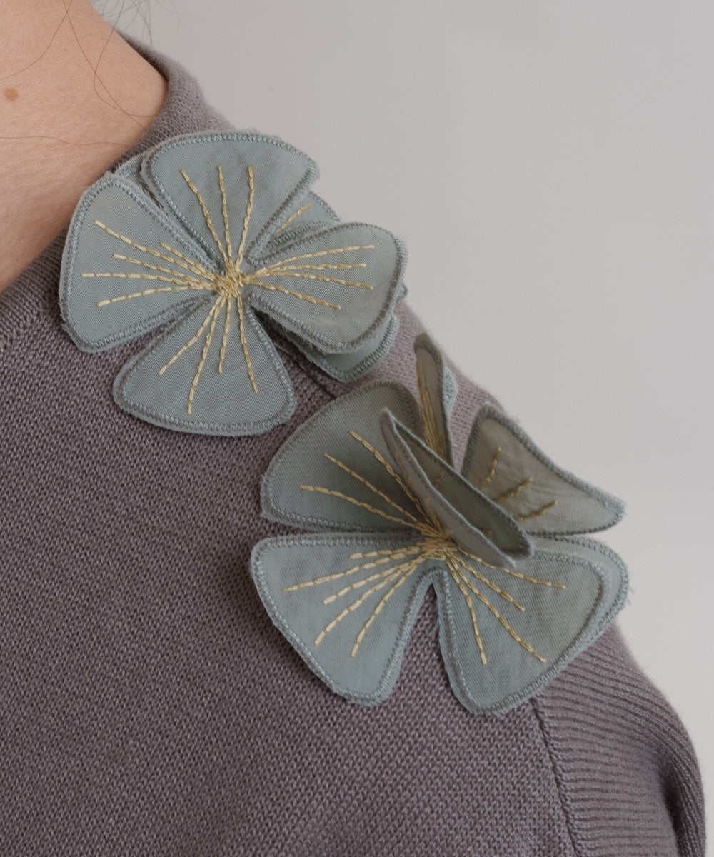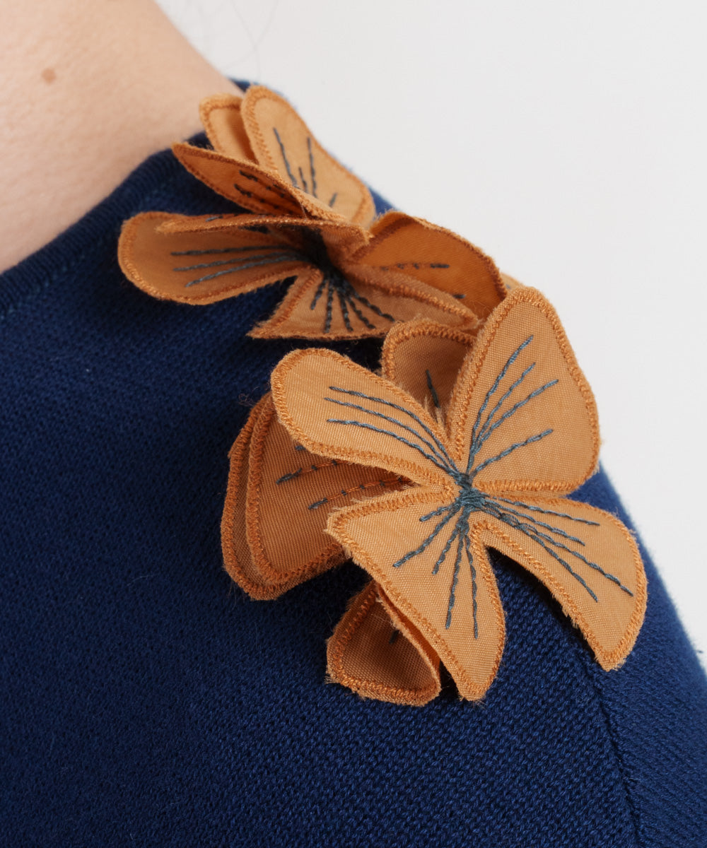 花モチーフ付きコットンニットプルオーバー (mul912)