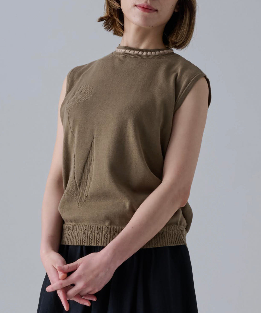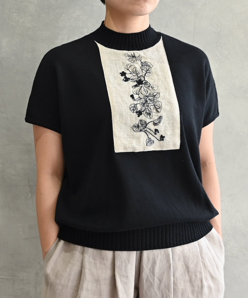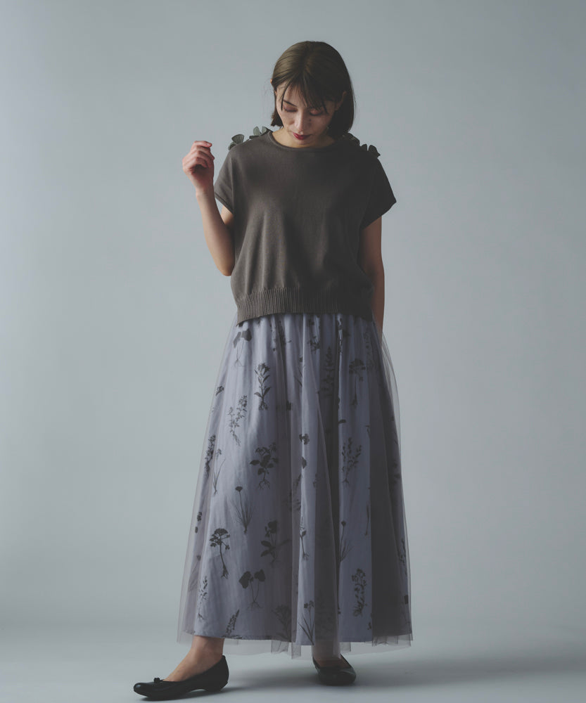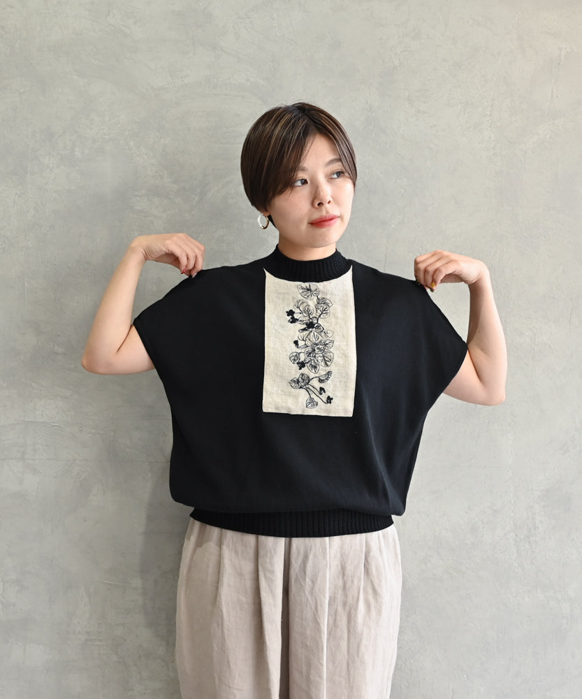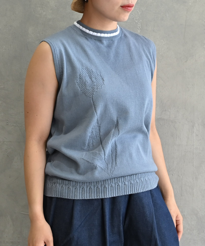 花モチーフ付きコットンニットプルオーバー (mul912)