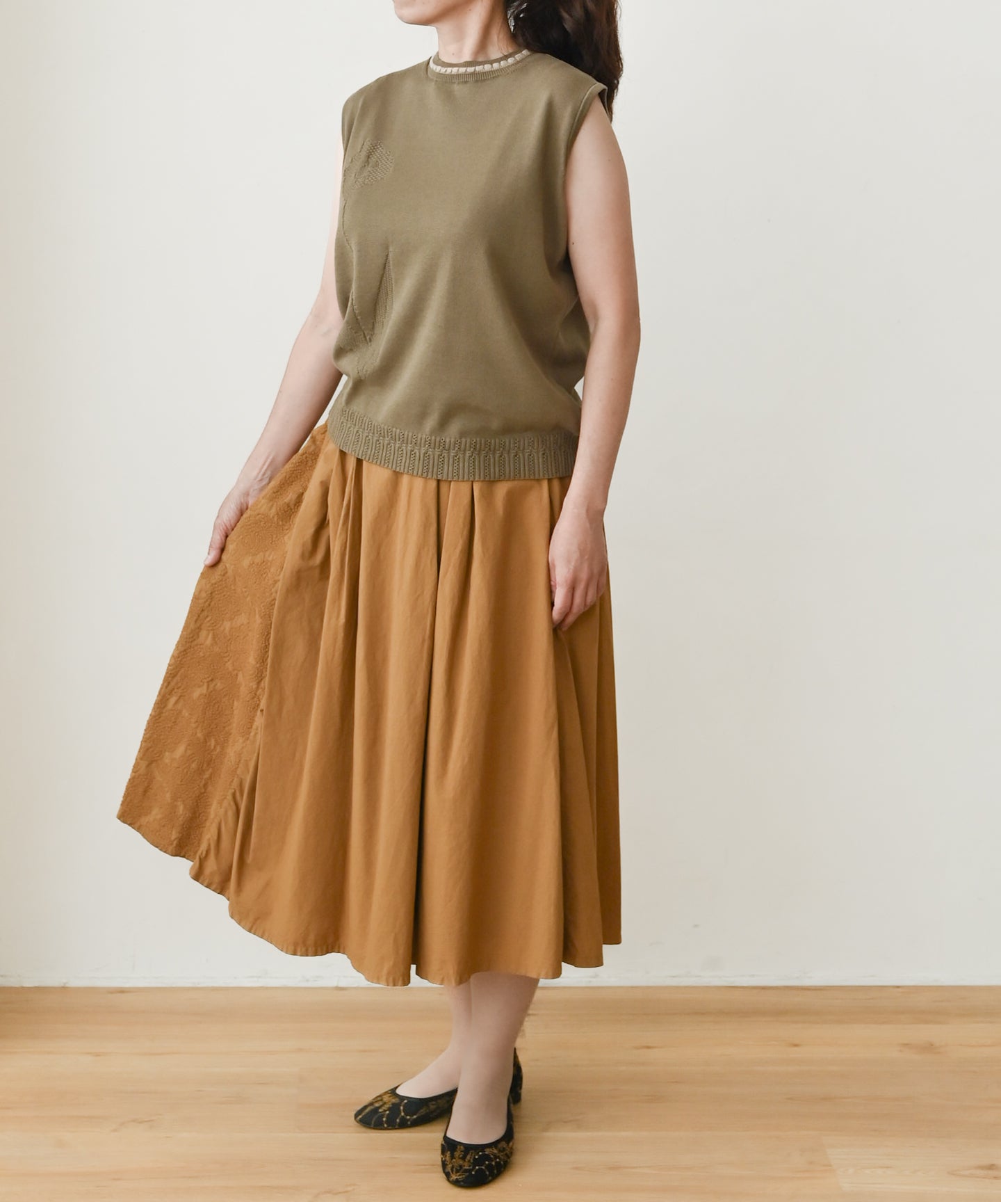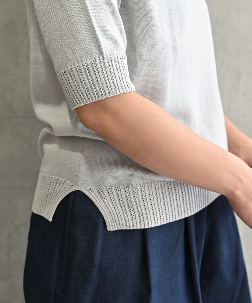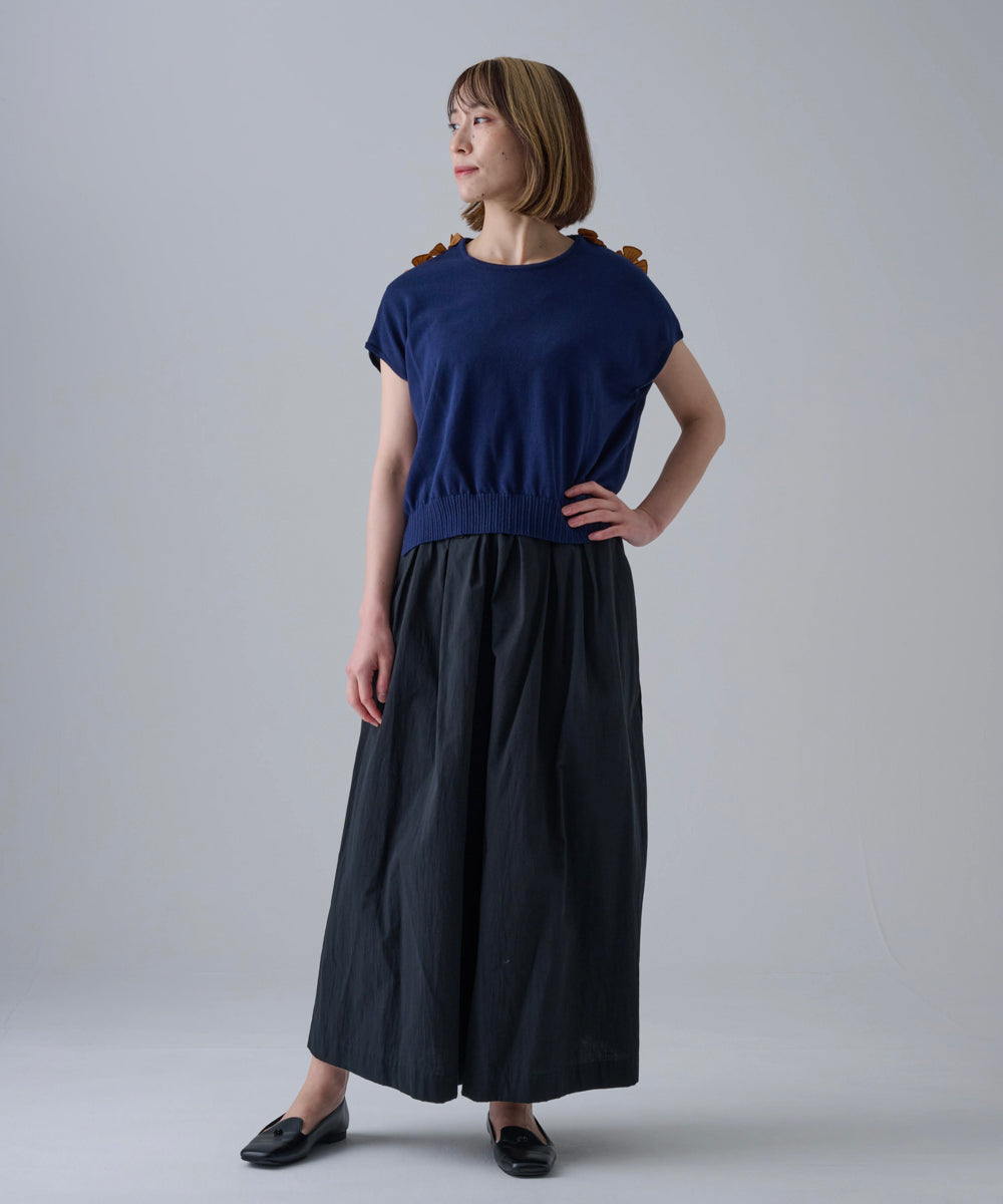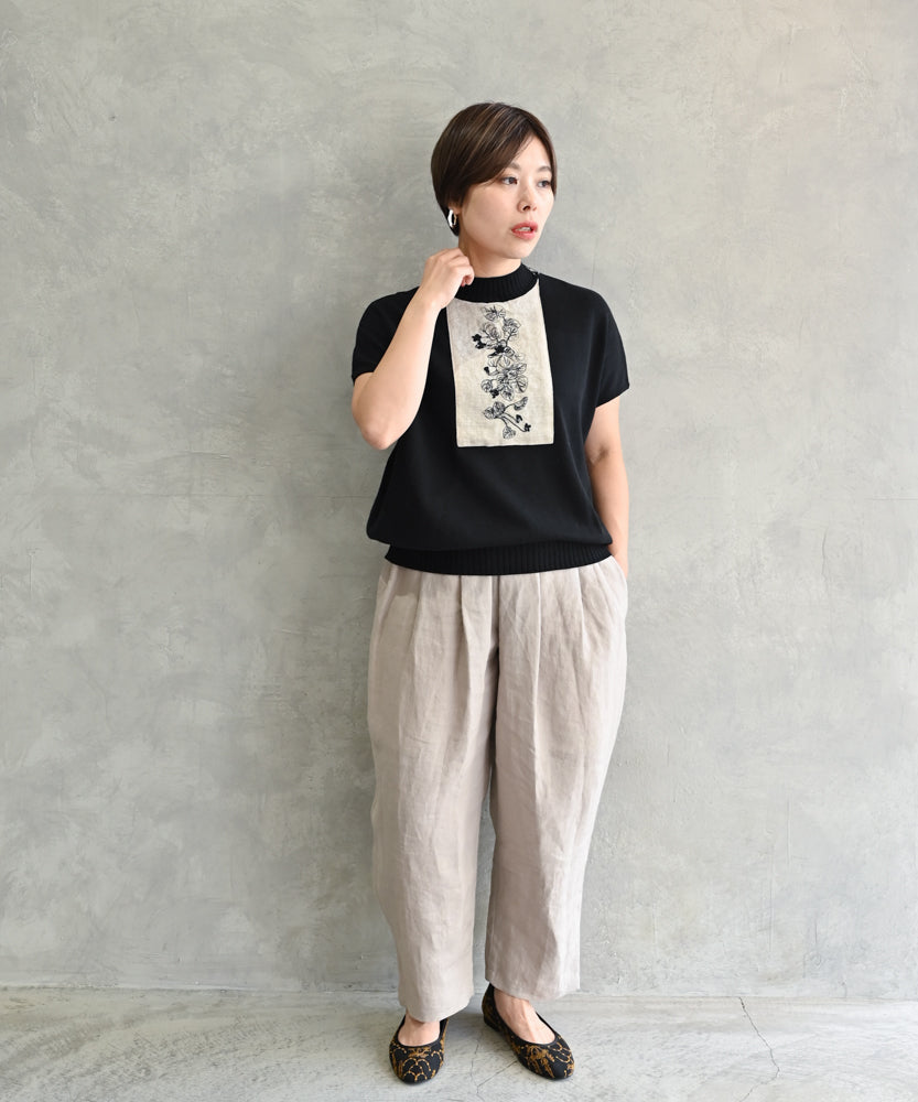 花モチーフ付きコットンニットプルオーバー (mul912)