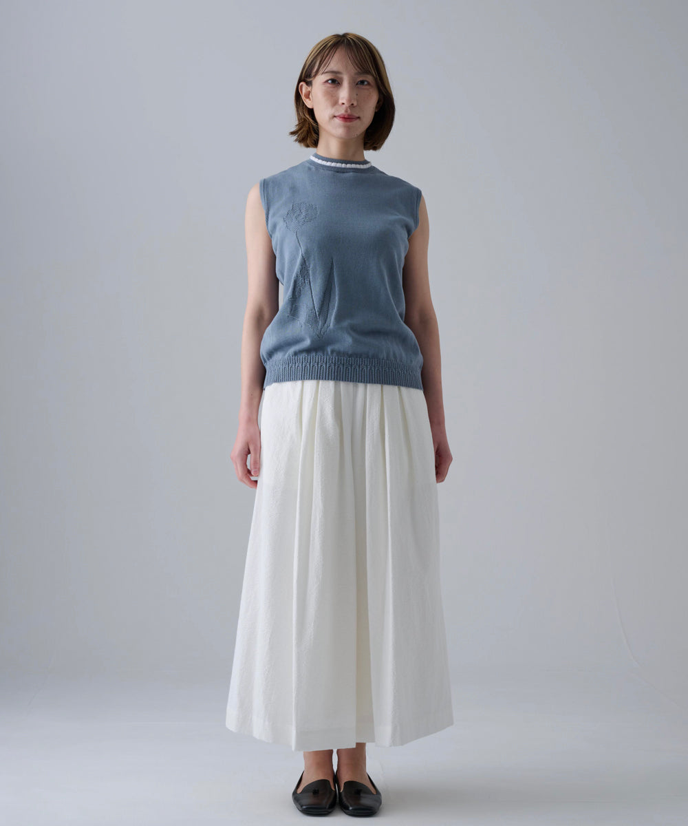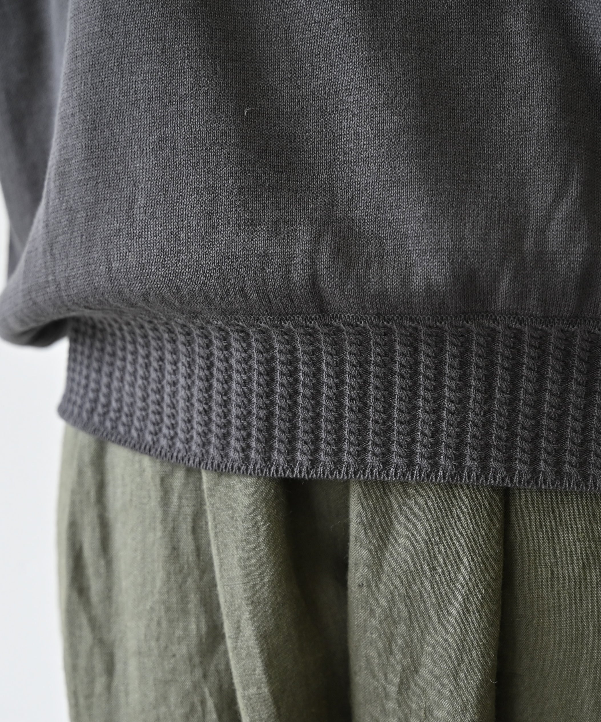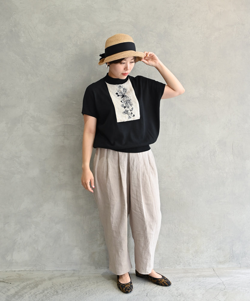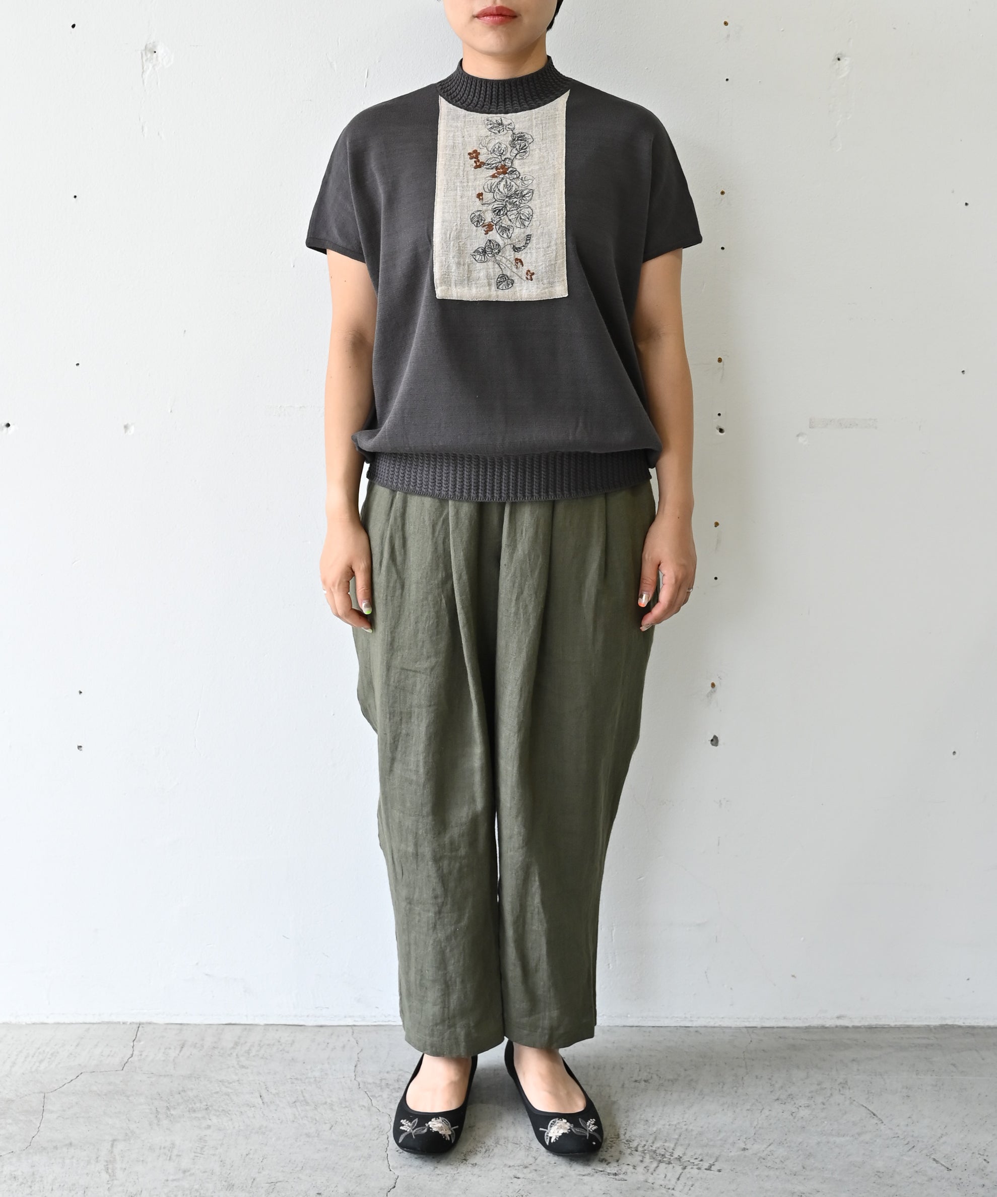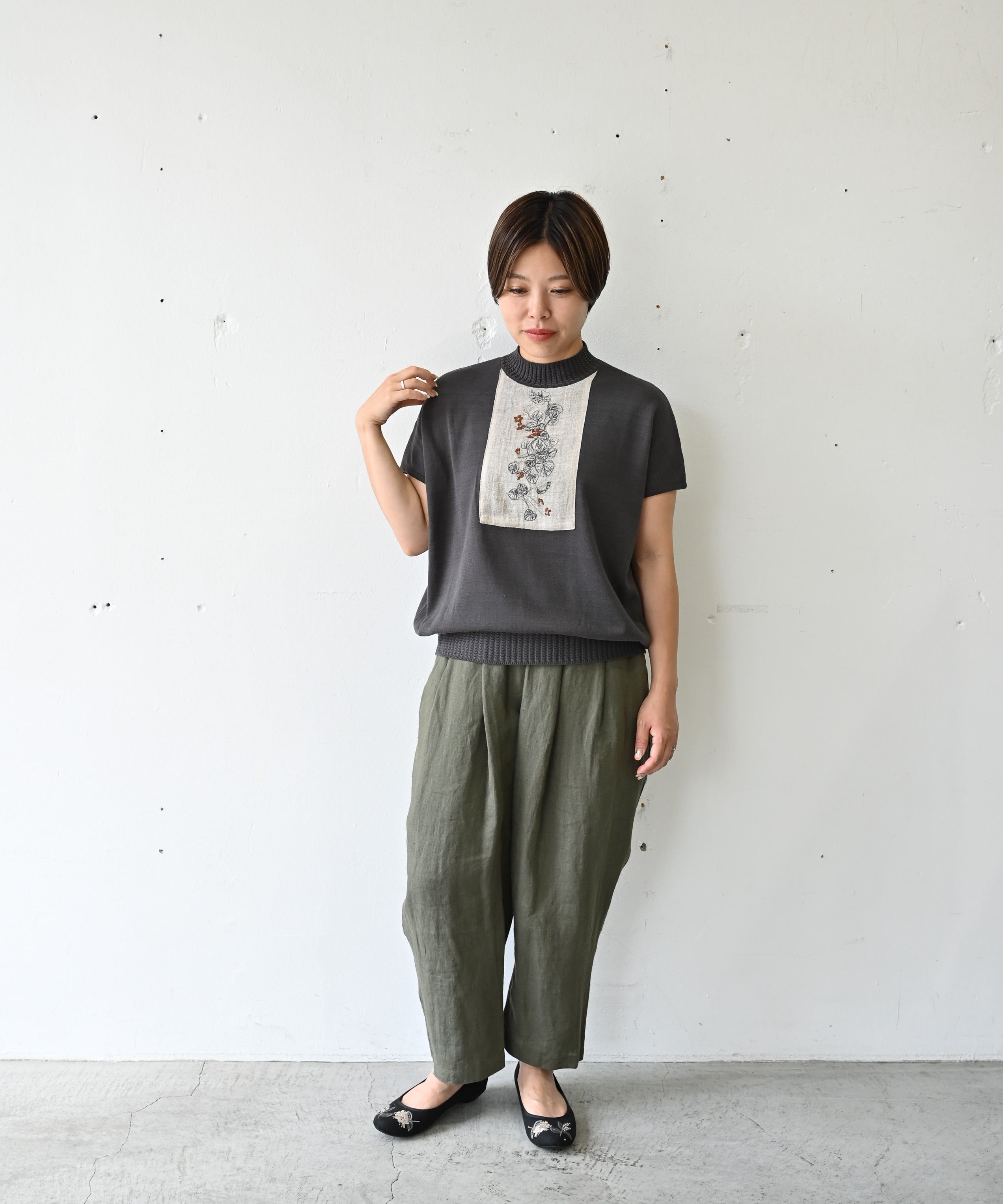 〈細番手の高級コットンコーマ糸〉スミレ押し花刺繍のプルオーバー (mud916)