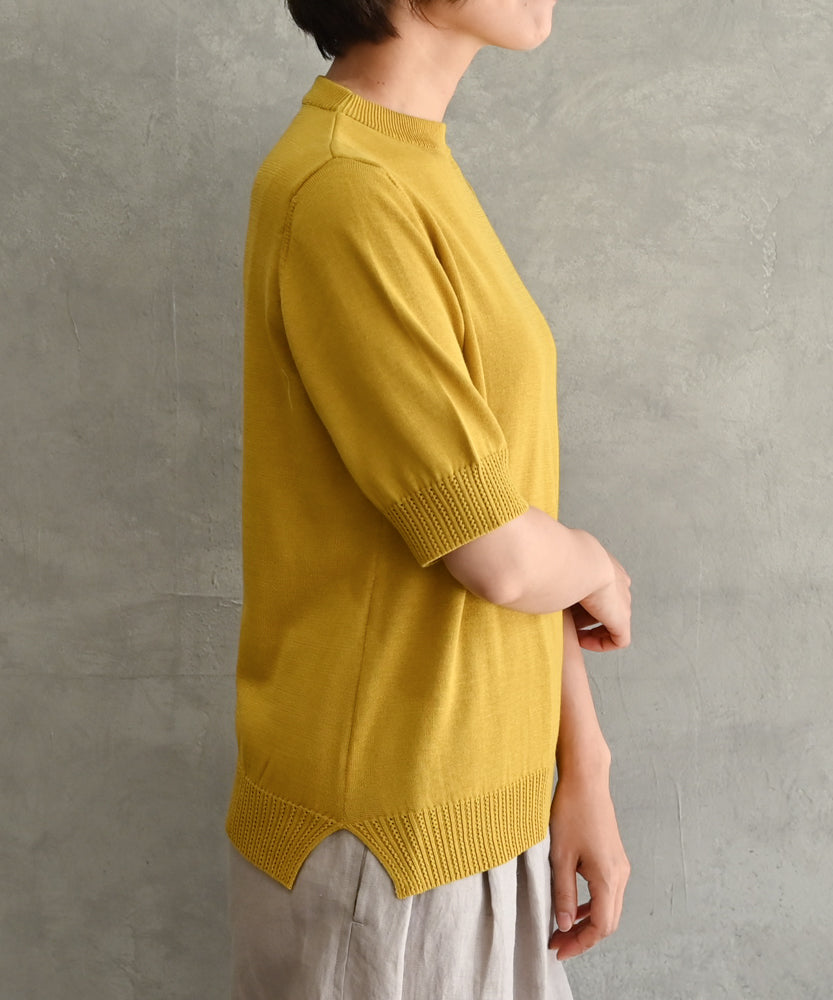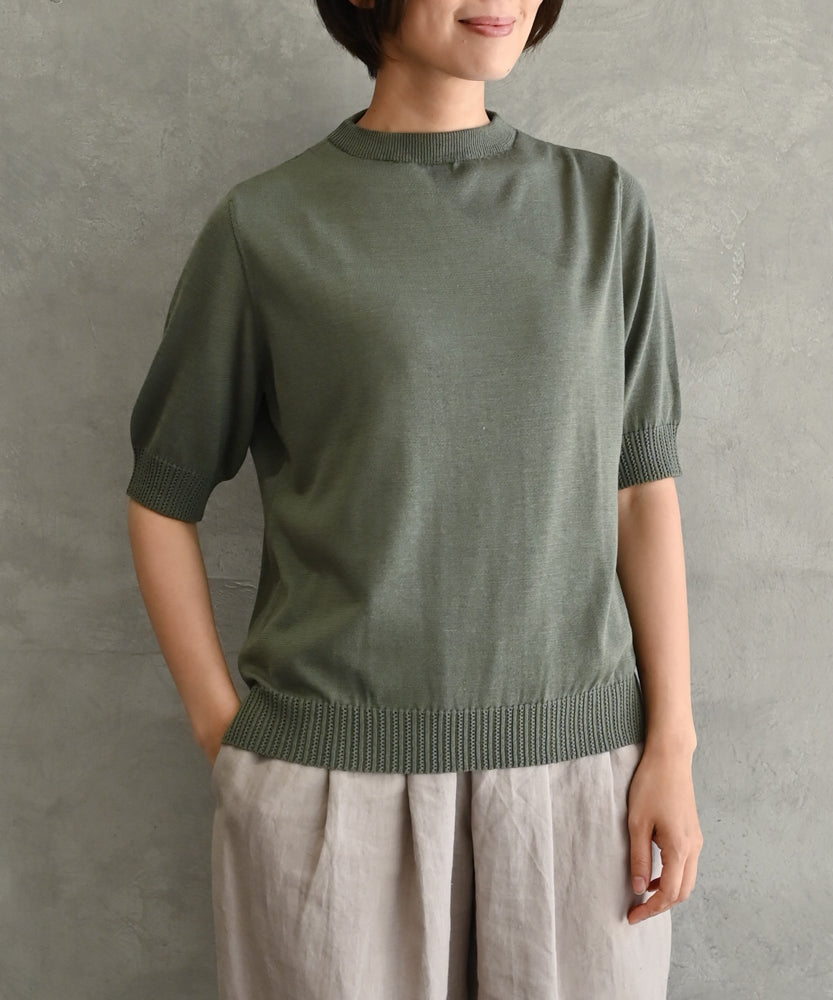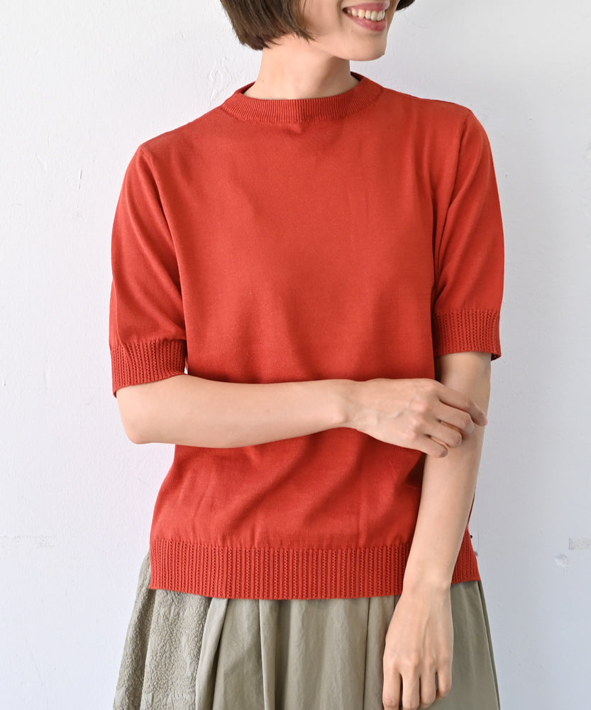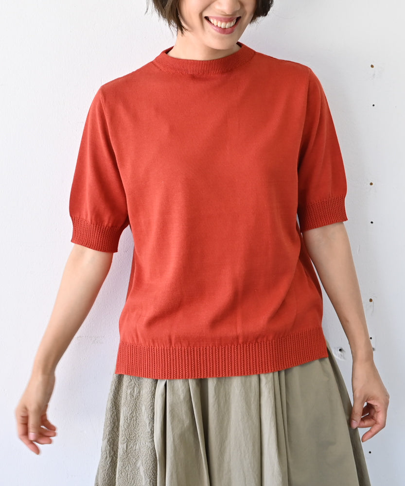 〈高品質シルク&スーピマ超長綿〉〈洗えるニット〉半袖ボトルネックプルオーバー (muf911) (mub914-ORG)