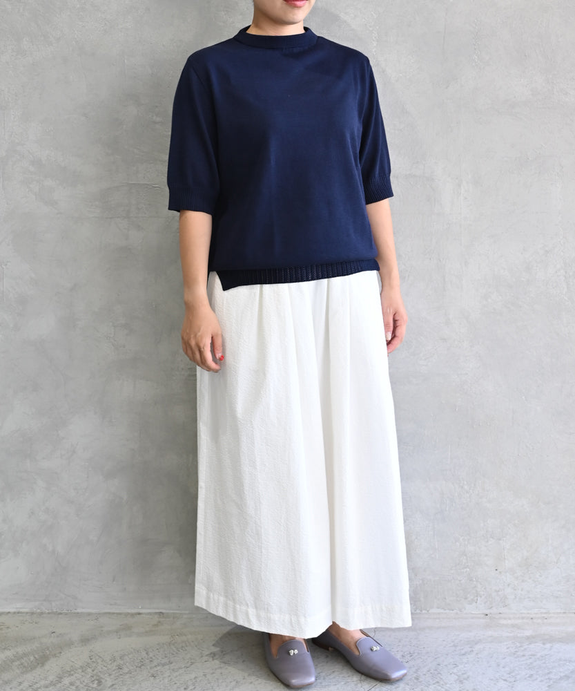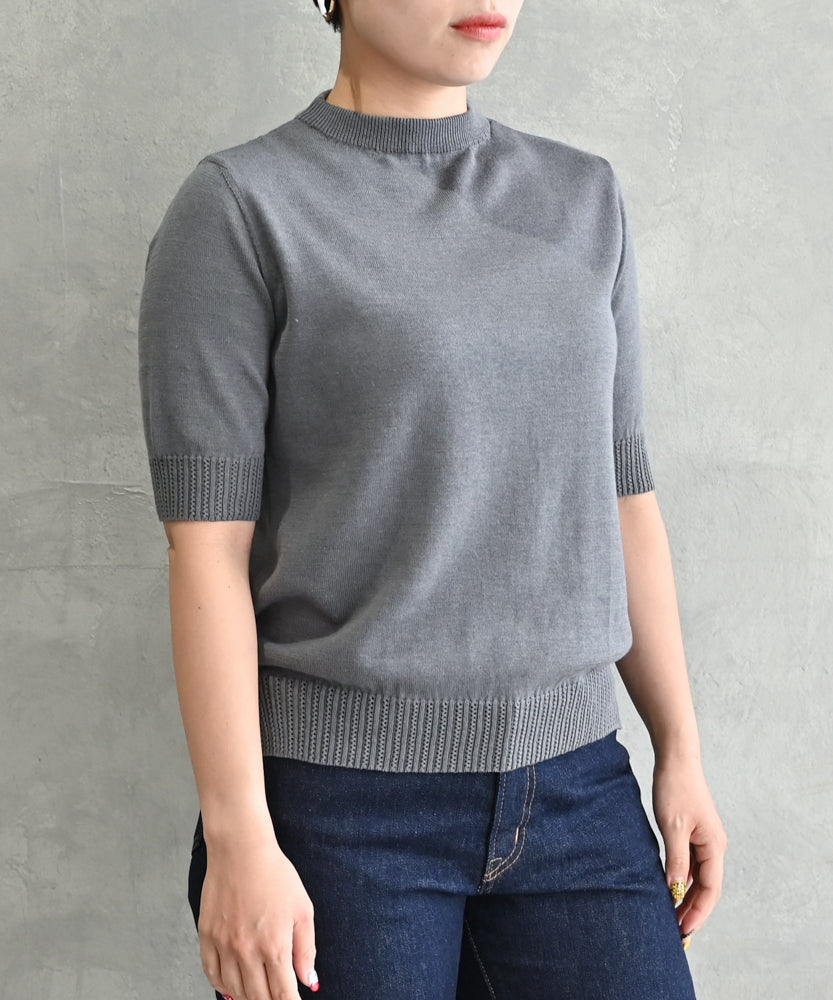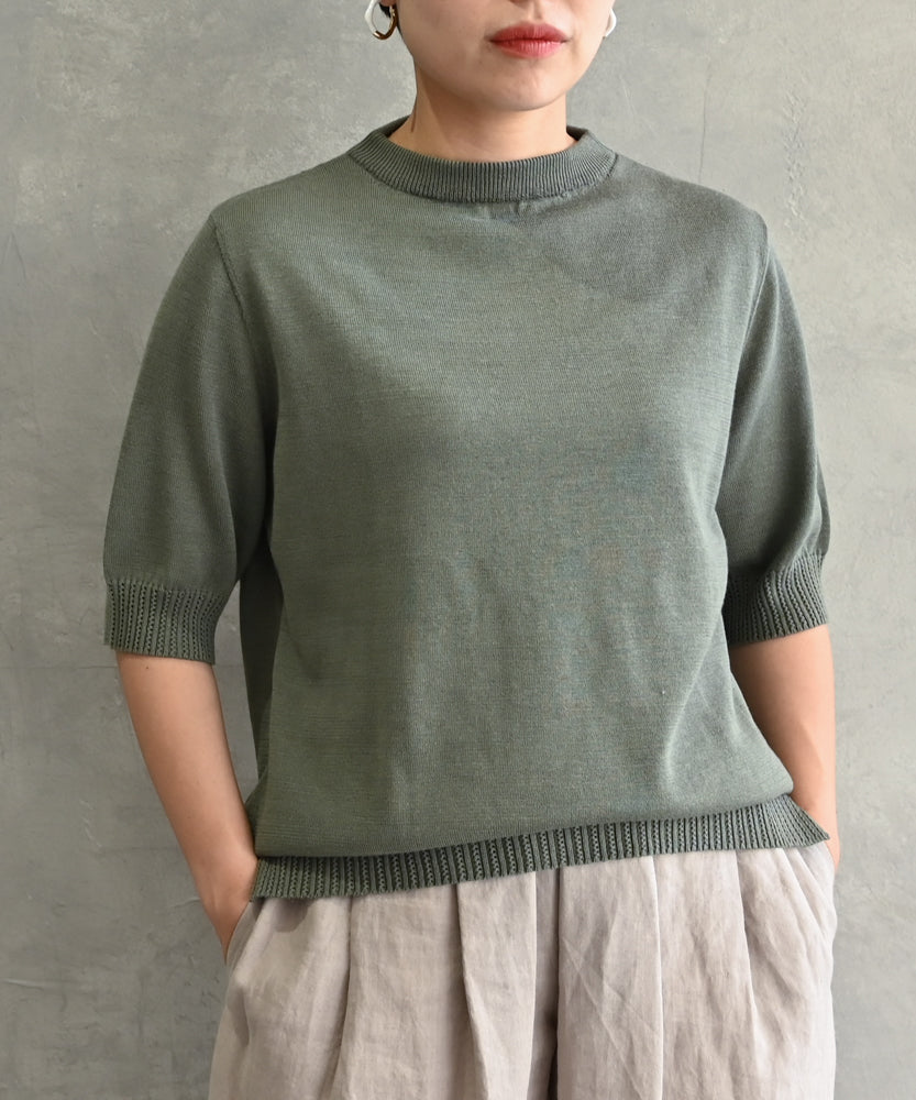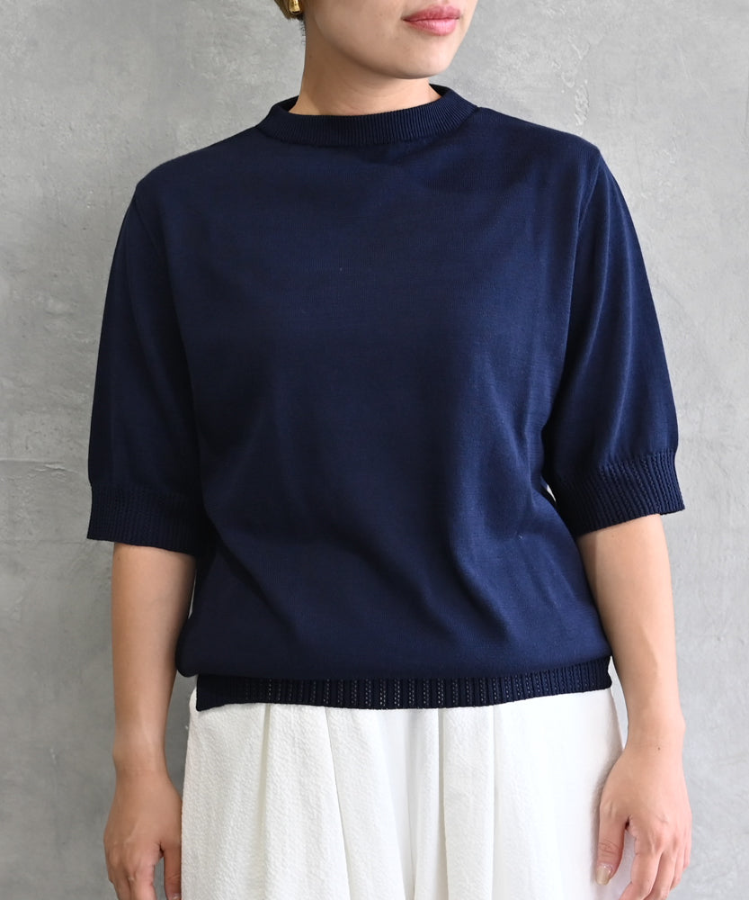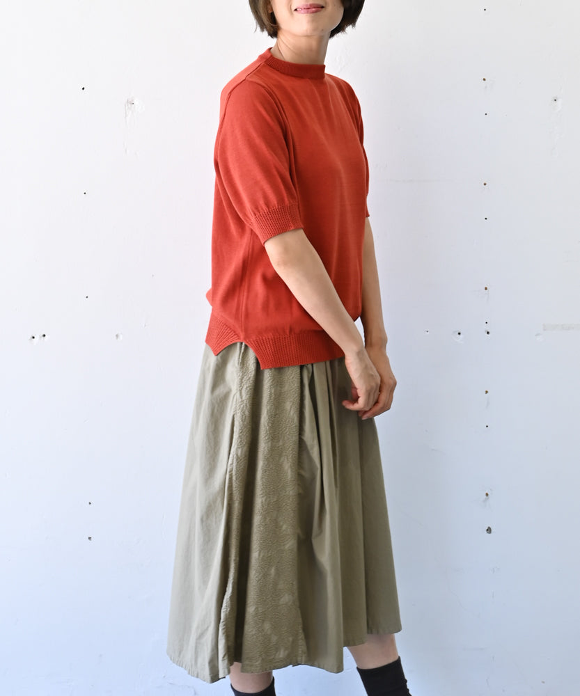〈高品質シルク&スーピマ超長綿〉〈洗えるニット〉半袖ボトルネックプルオーバー (muf911) (mub914-ORG)