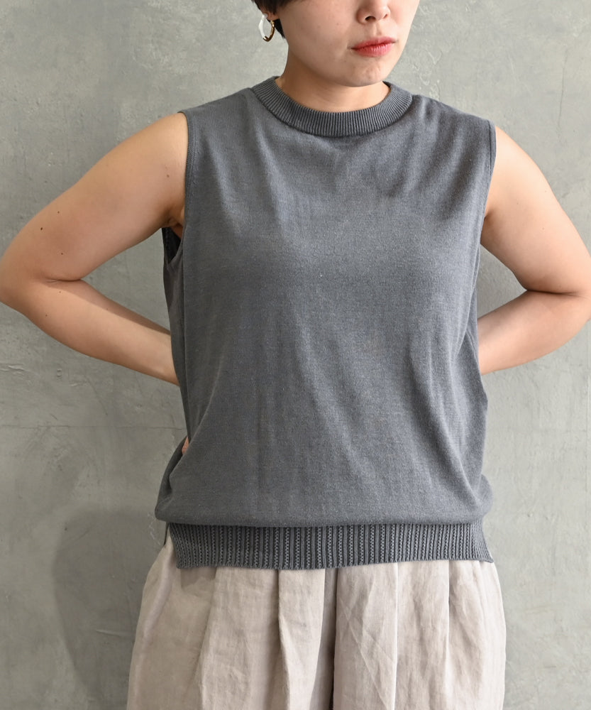 〈高品質シルク&スーピマ超長綿〉〈洗えるニット〉ノースリーブボトルネックプルオーバー (muf910)