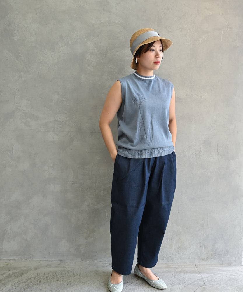 〈細番手の高級綿糸コットンコーマ糸〉ポピーの花リンクス編み ノースリーブブルオーバー (muh914)