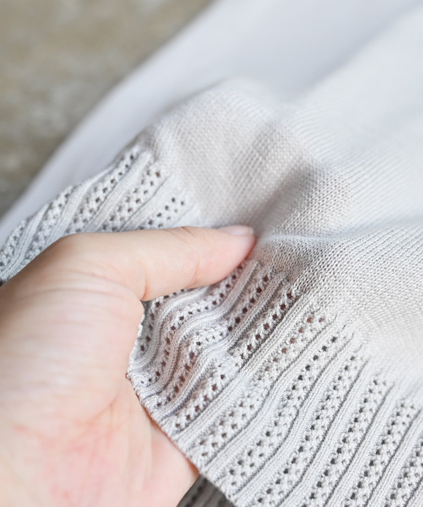 〈高級スーピマ超長綿ニット〉〈通年着られる〉袖口や裾リブに模様編み ヒルガオ刺繍 コットンカーディガン (muf413)