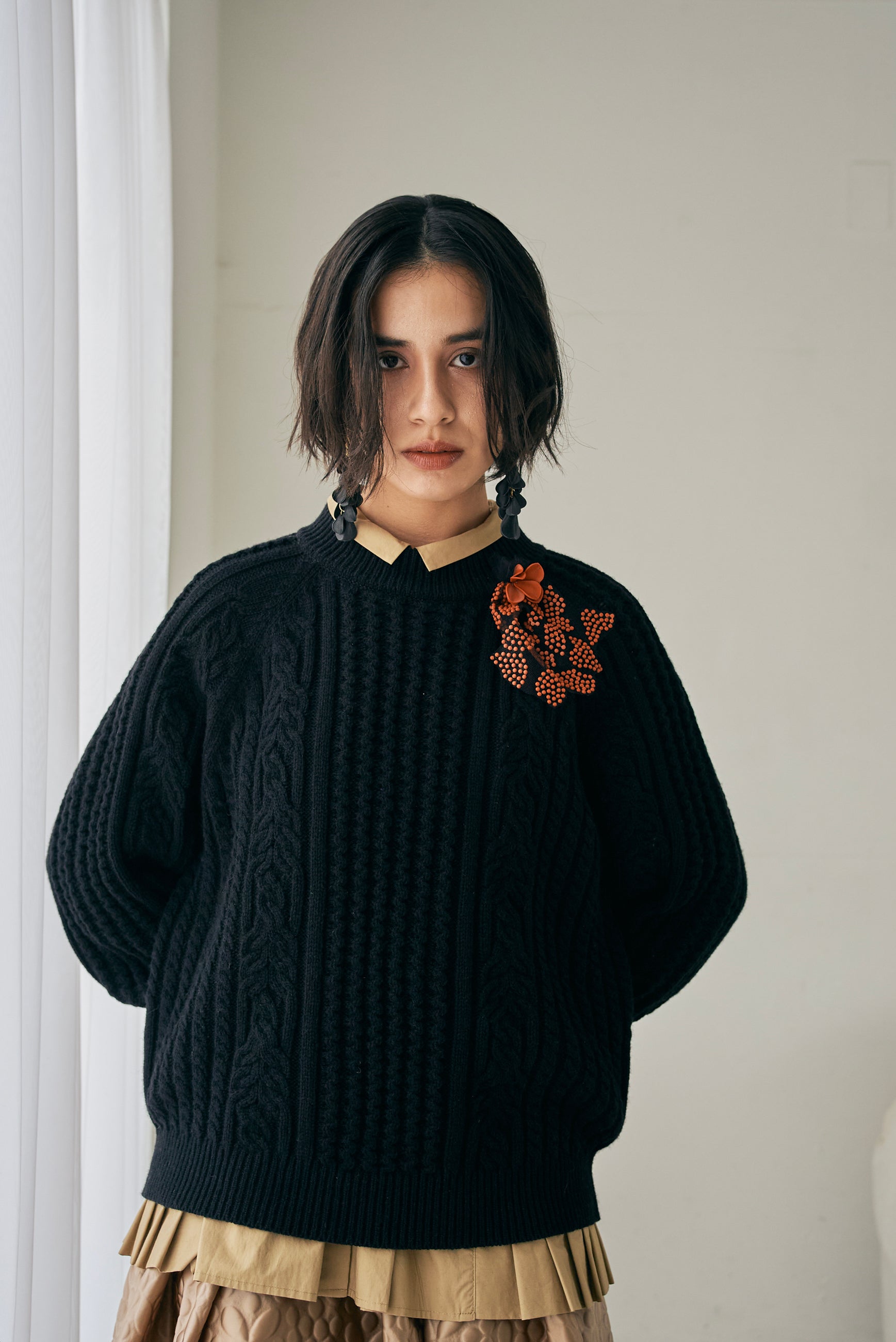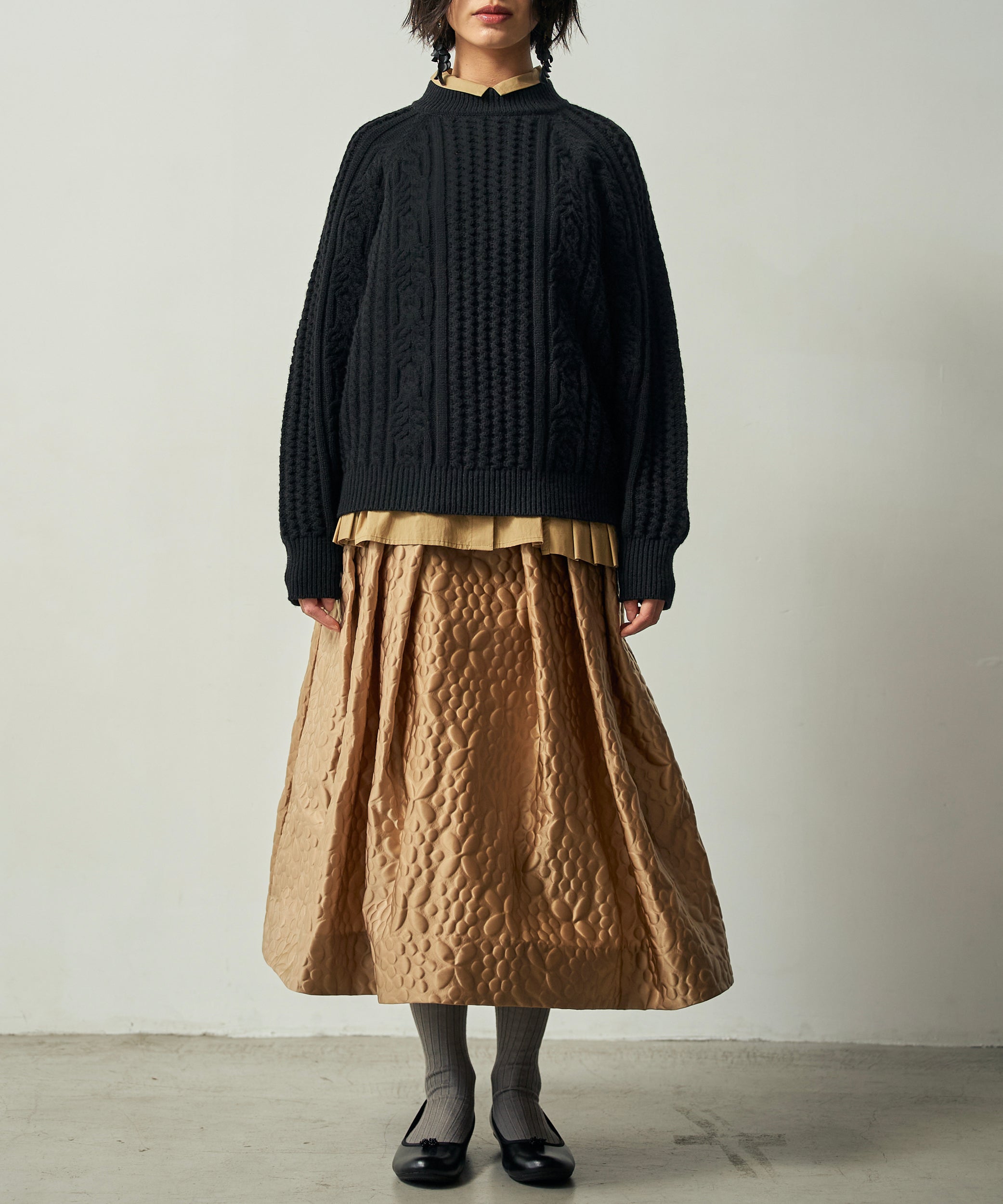 カシミヤウールケーブル編みプルオーバー (mum906)
