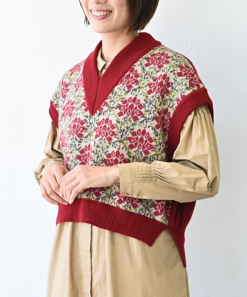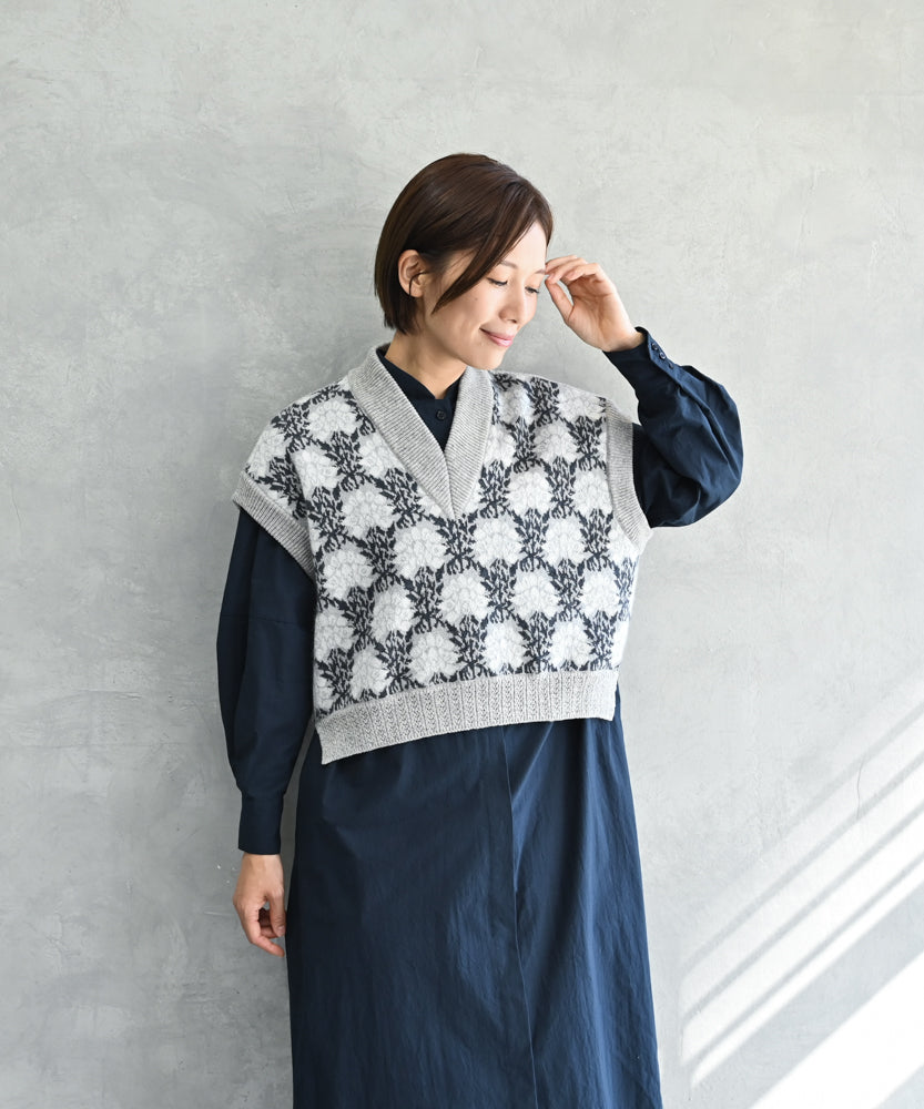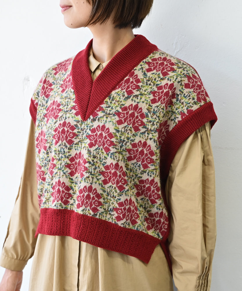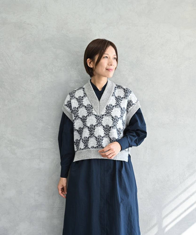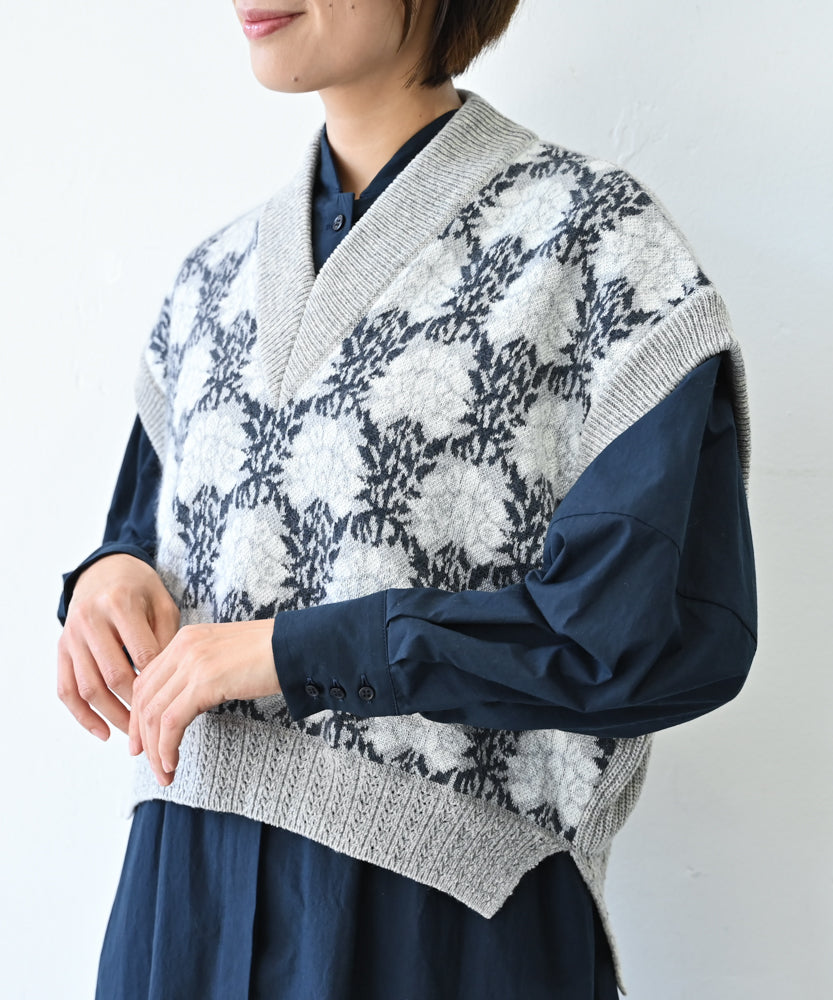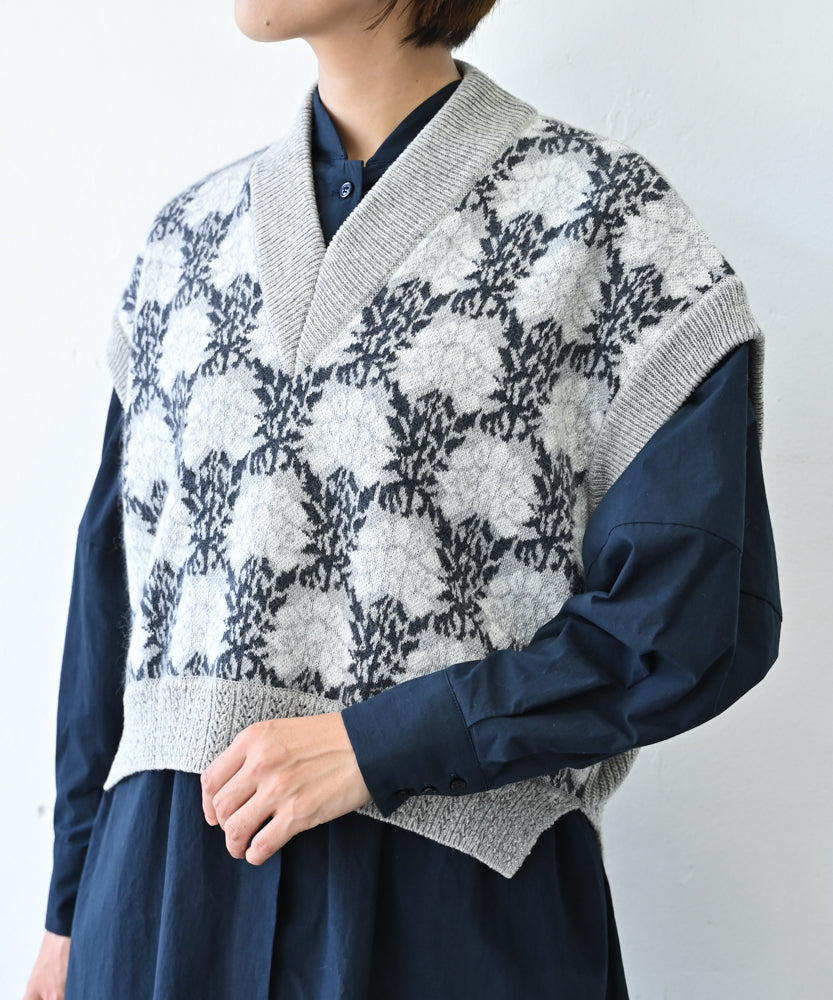 〈前身頃は希少なモヘヤとシルク×後ろ身頃はウール100%〉フラワージャカード ベスト (muk902)