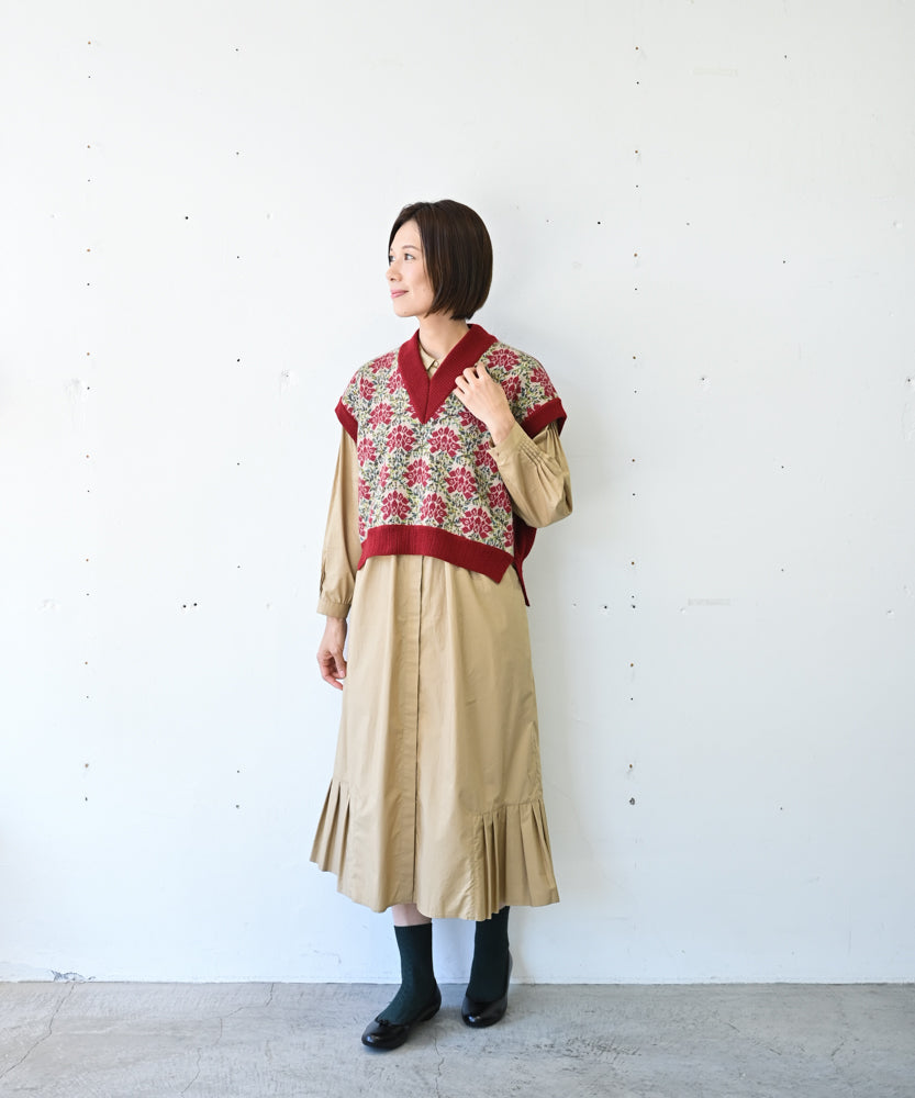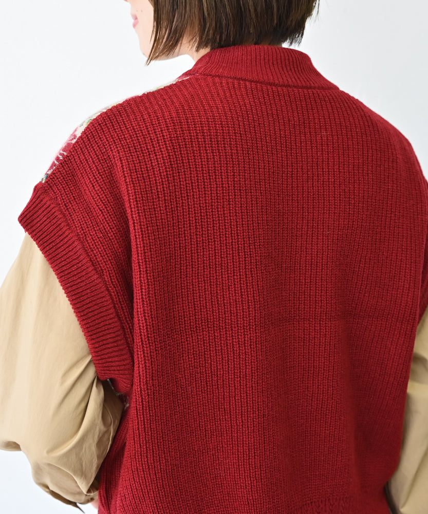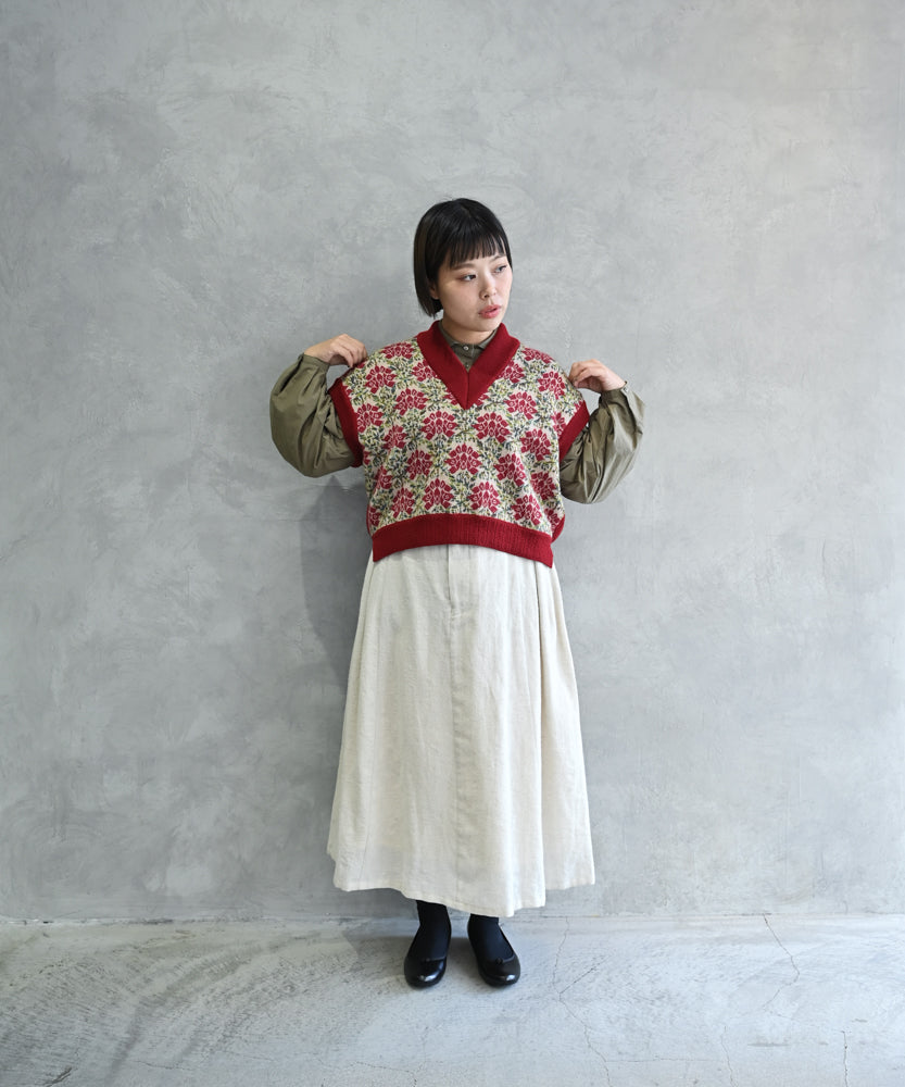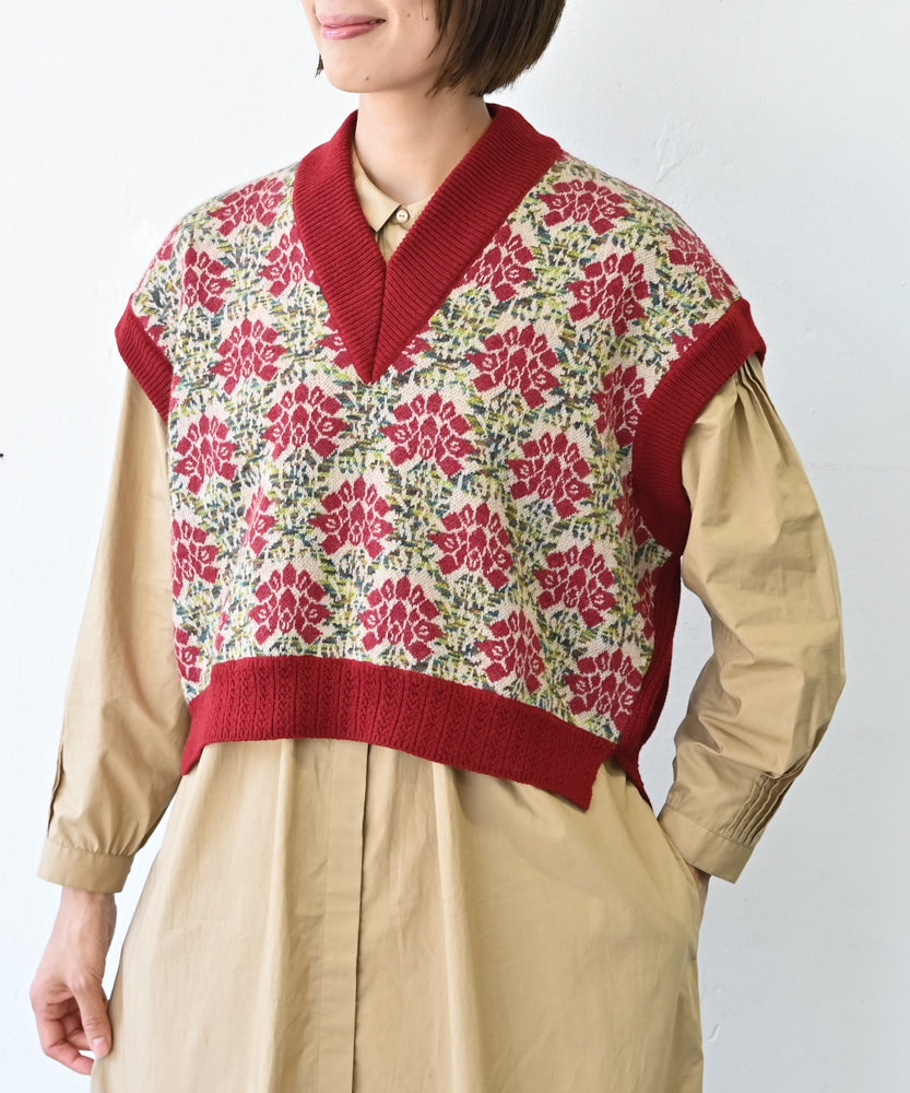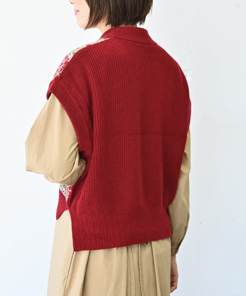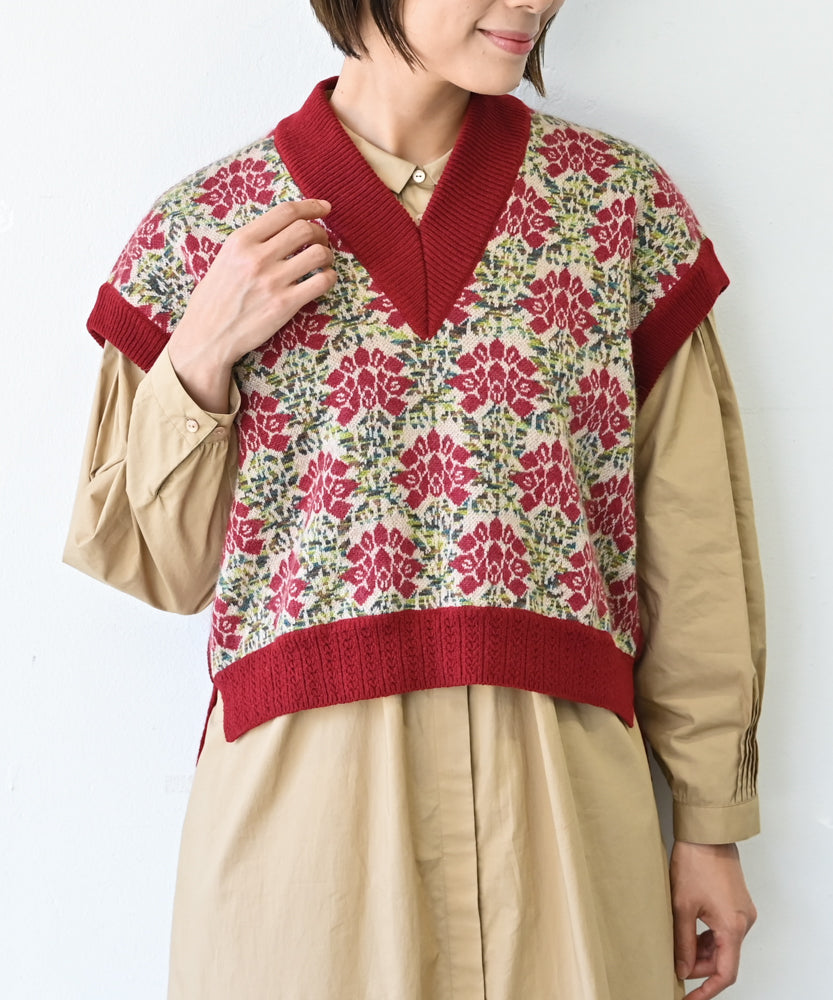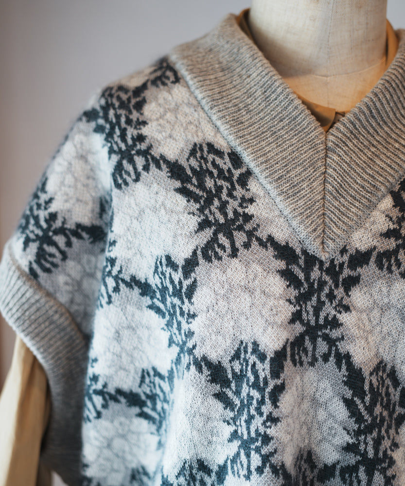 〈前身頃は希少なモヘヤとシルク×後ろ身頃はウール100%〉フラワージャカード ベスト (muk902)