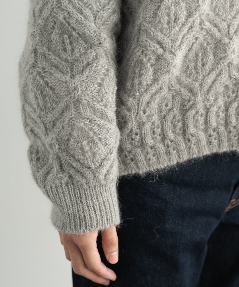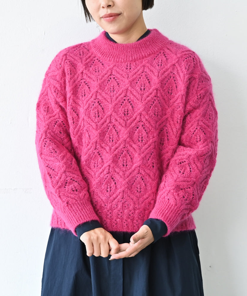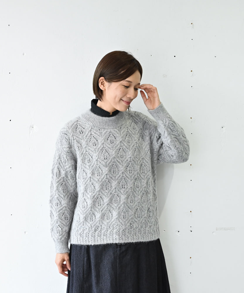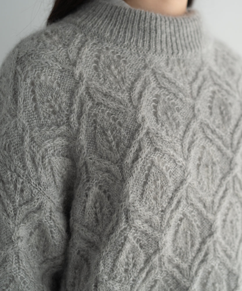 〈キッドモヘヤ×ウール×アルパカ×シルク〉リーフ模様編み セーター (muk906)