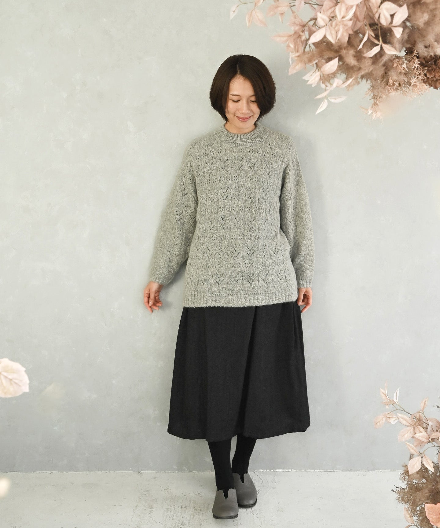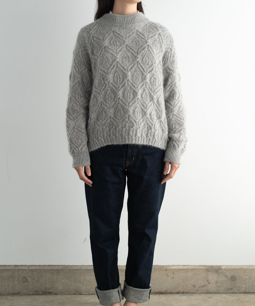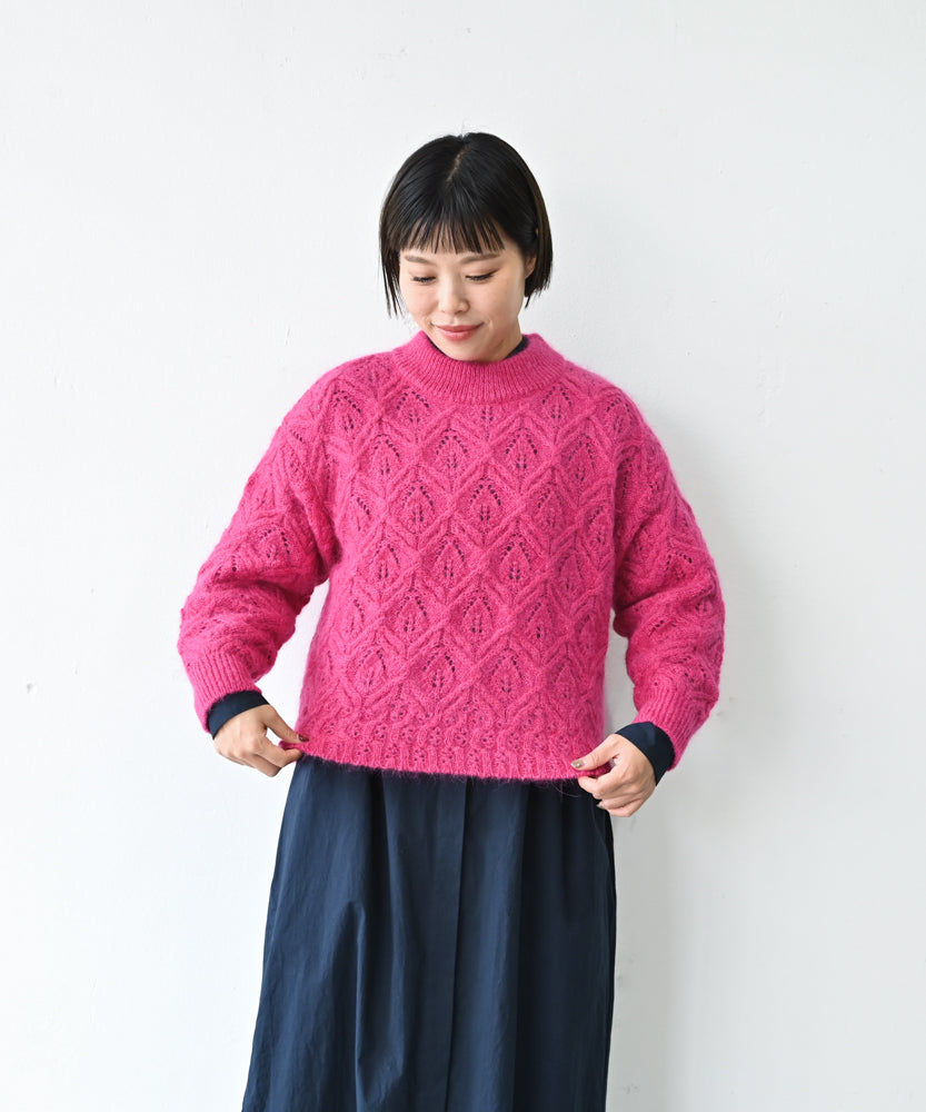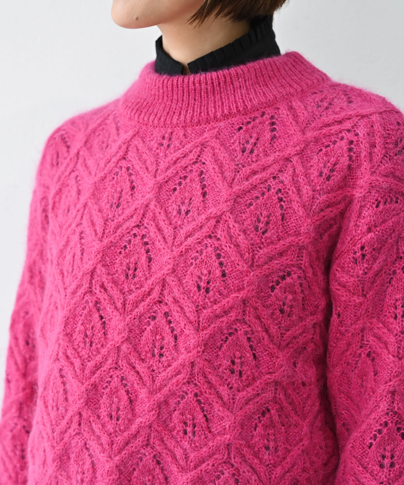 〈キッドモヘヤ×ウール×アルパカ×シルク〉リーフ模様編み セーター (muk906)
