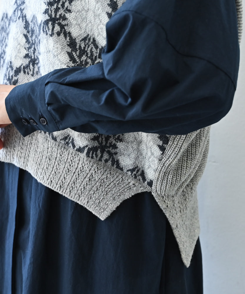 〈ウールカシミヤ〉〈5種類の模様編み〉パッチワーク柄ケーブル編みプルオーバー (mug913)