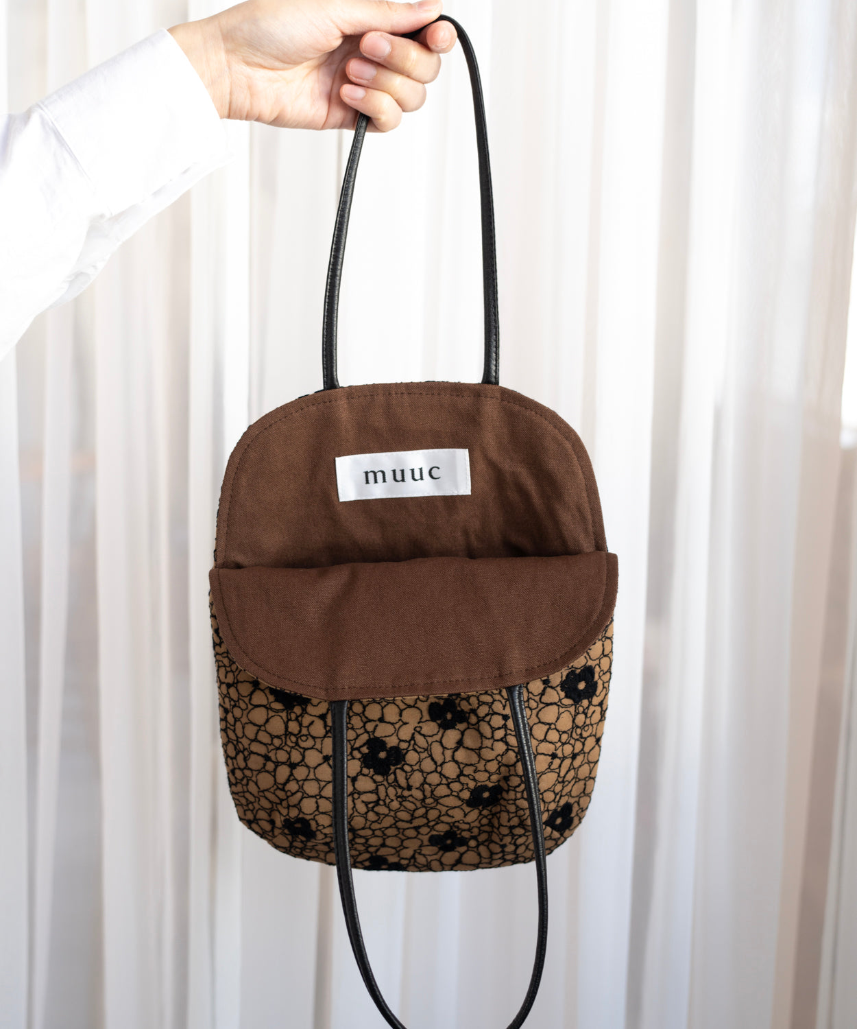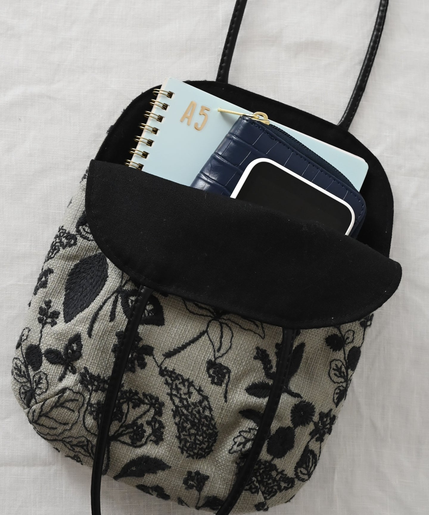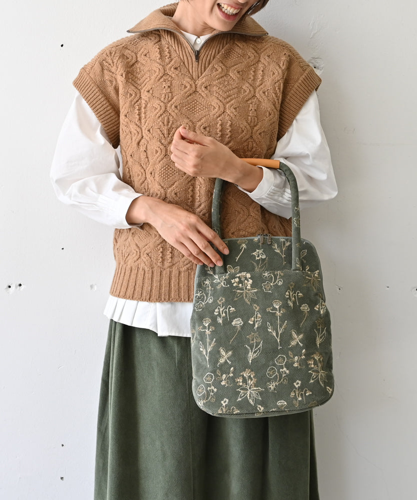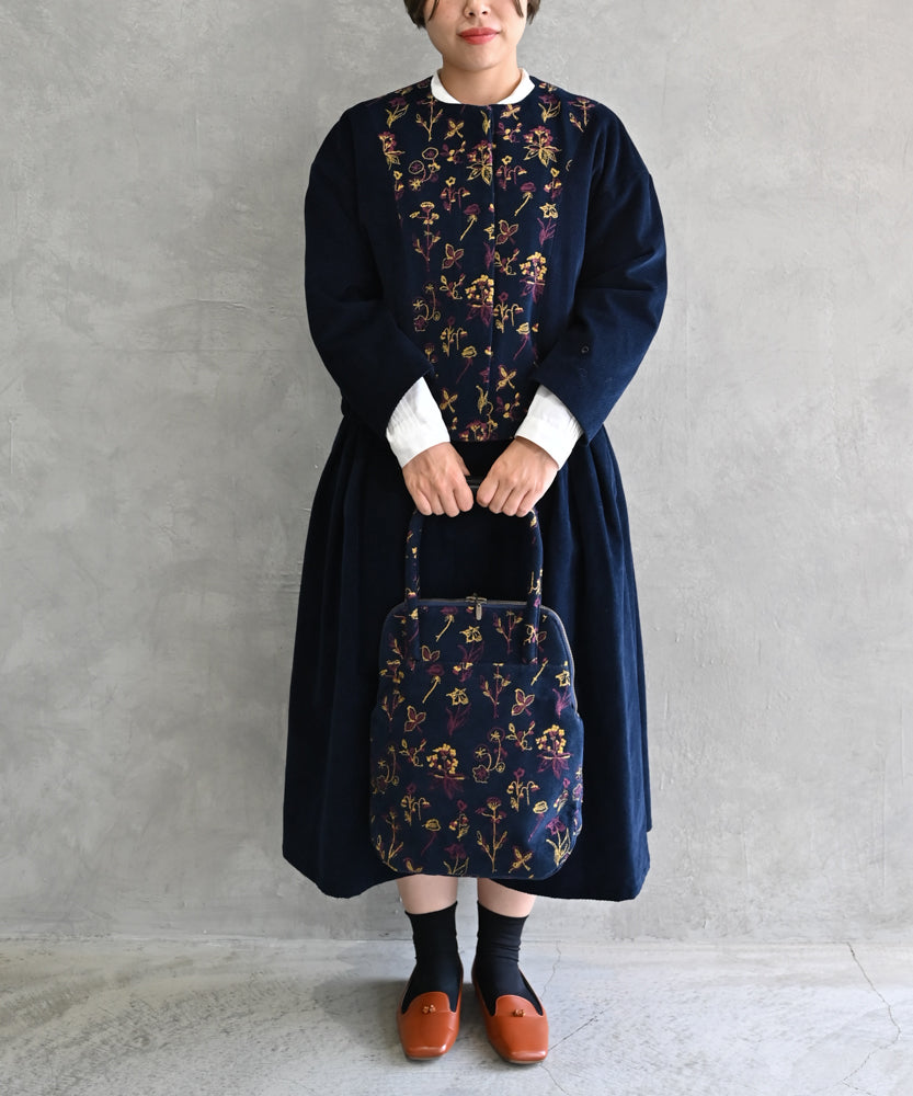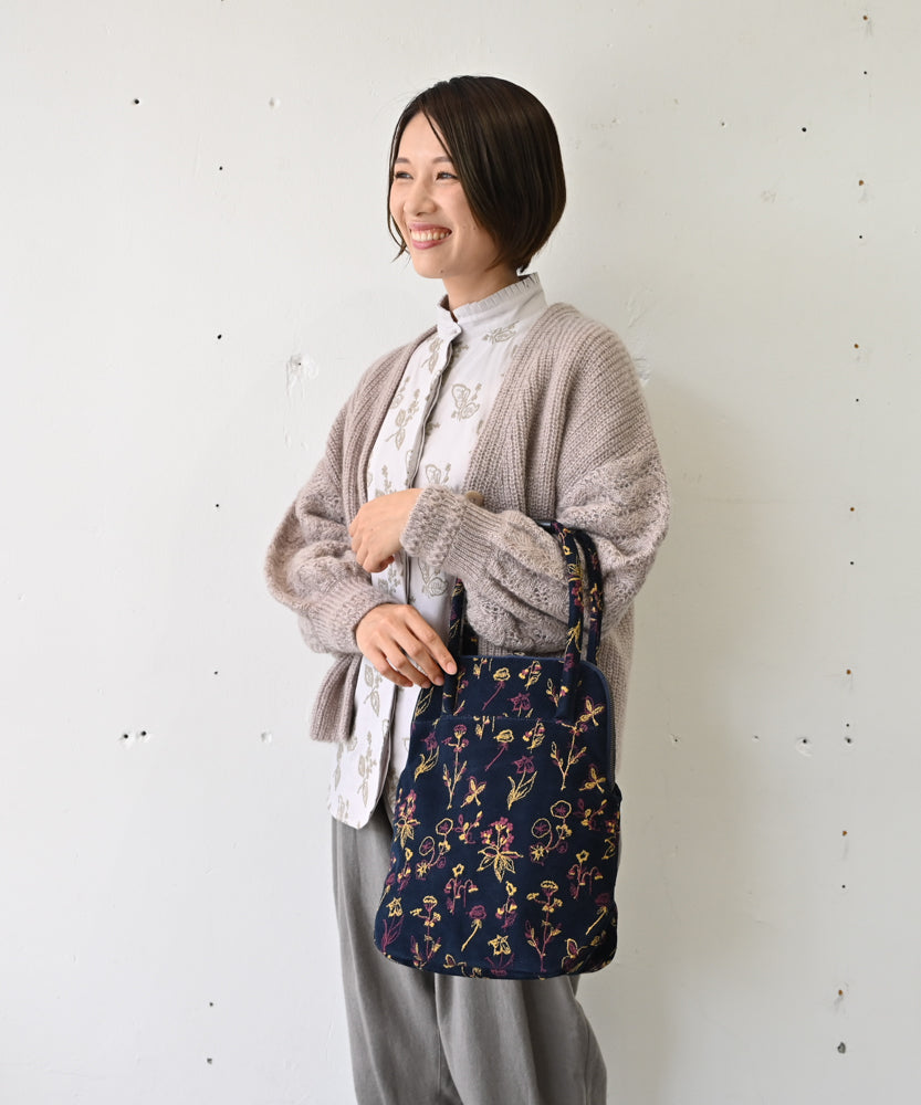 コットンコーデュロイ 花刺繍のミニサイズバッグ (bag030)
