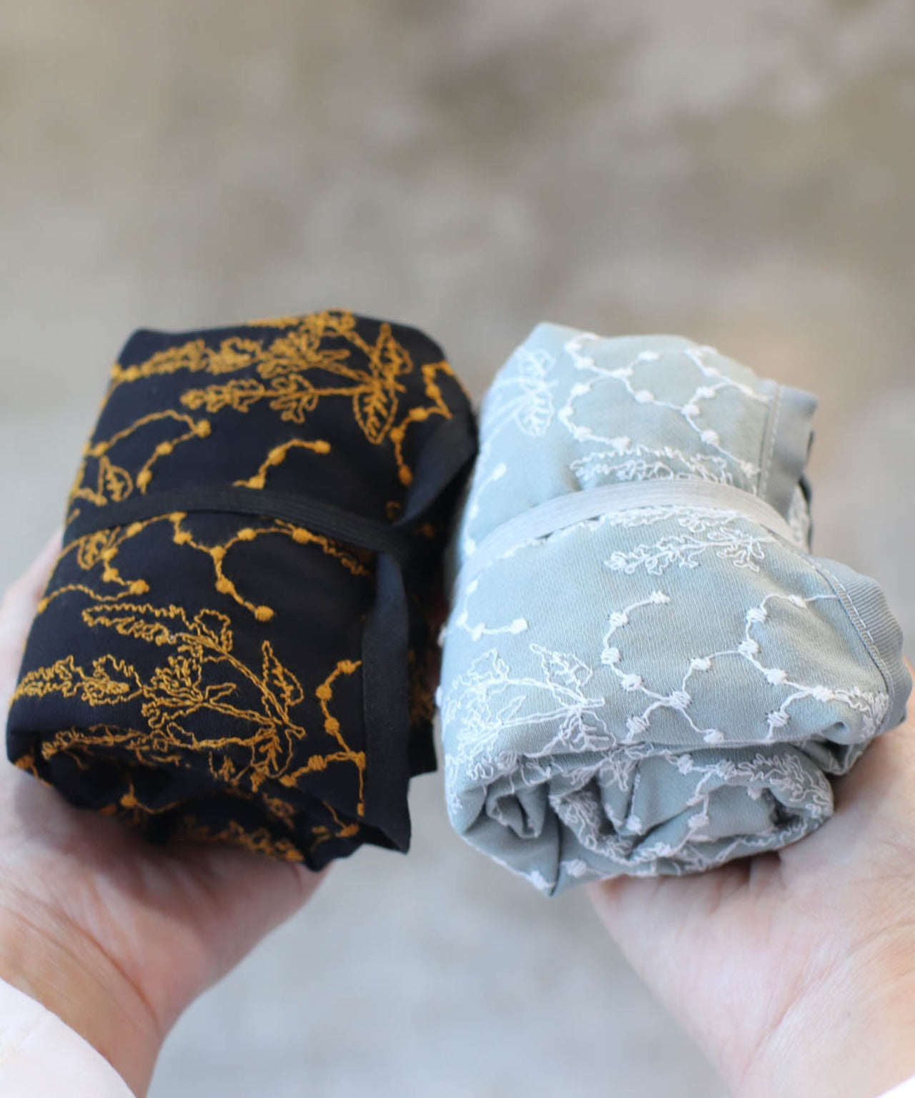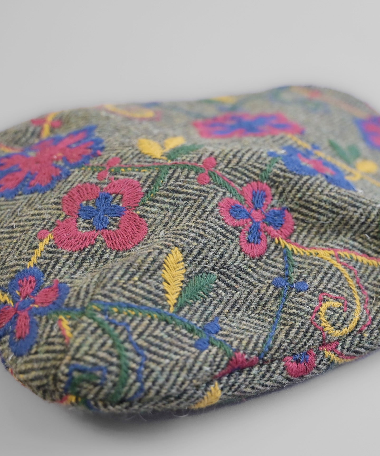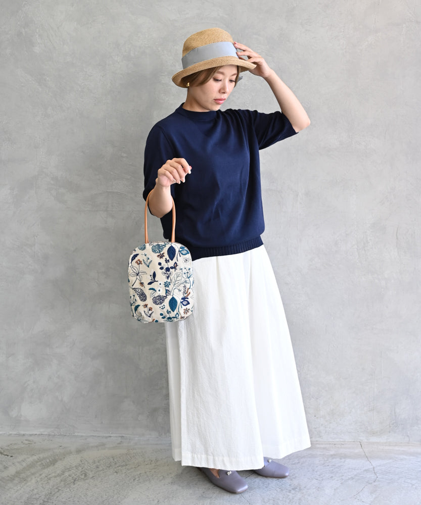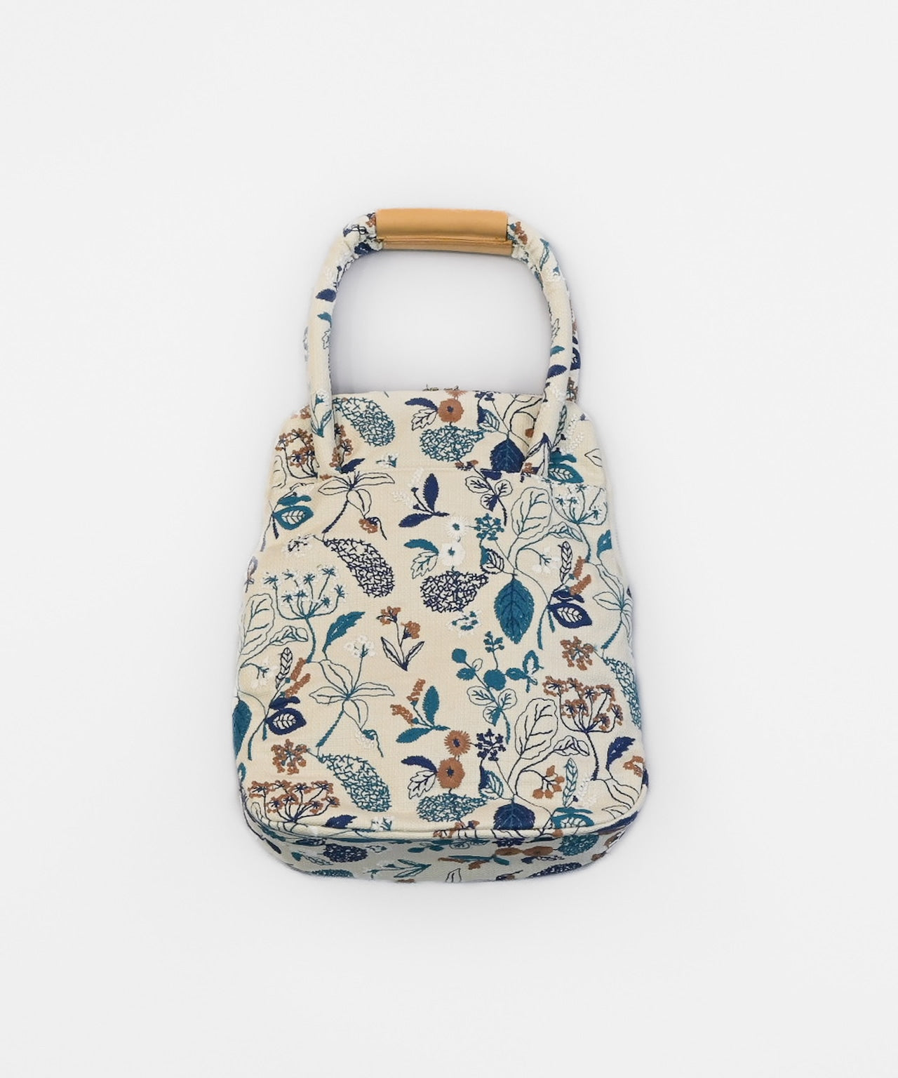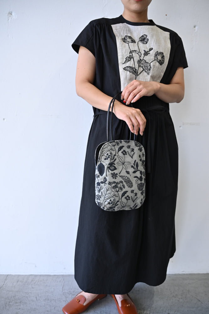 コットンコーデュロイ 花刺繍のミニサイズバッグ (bag030)