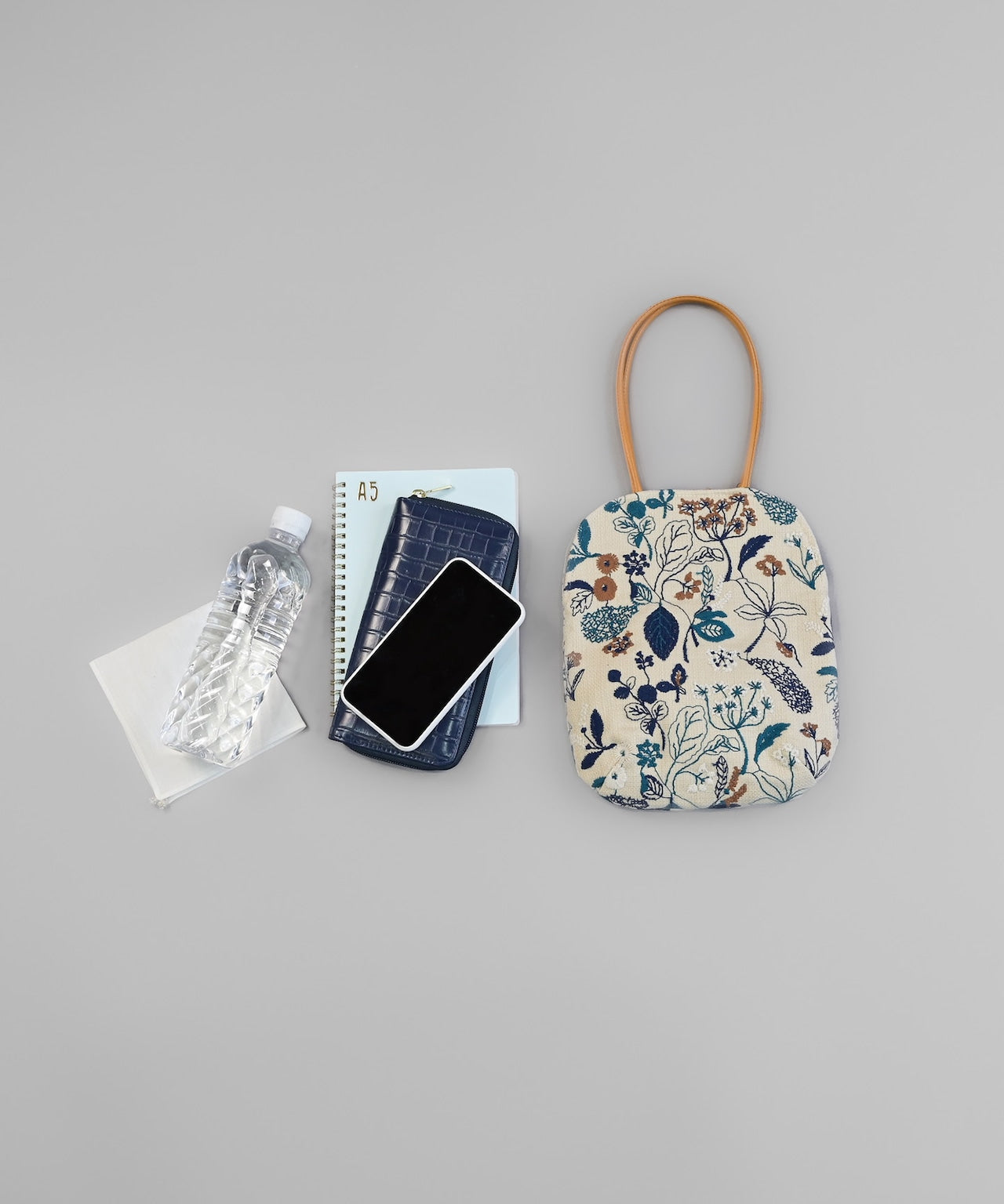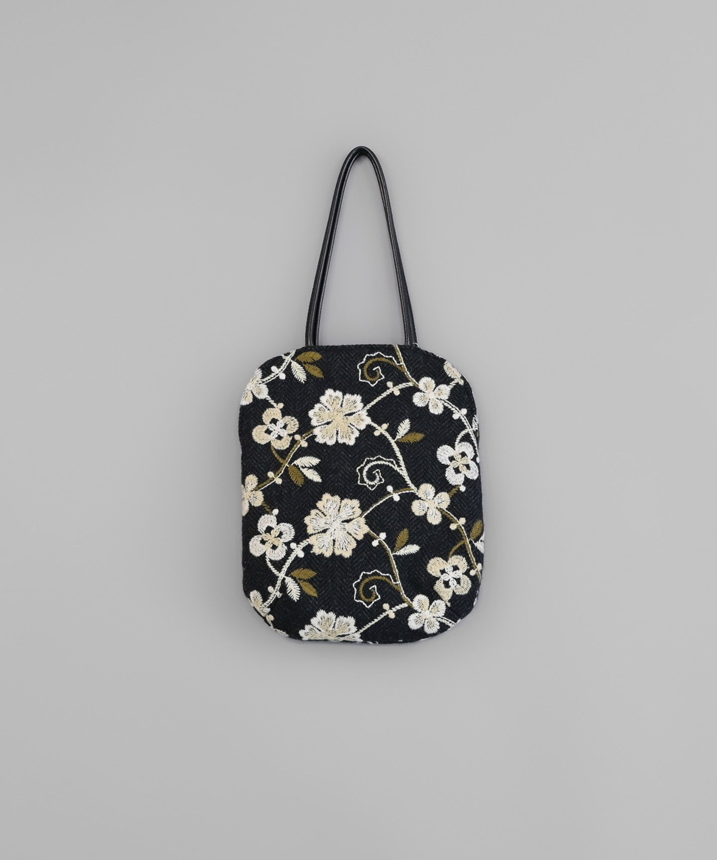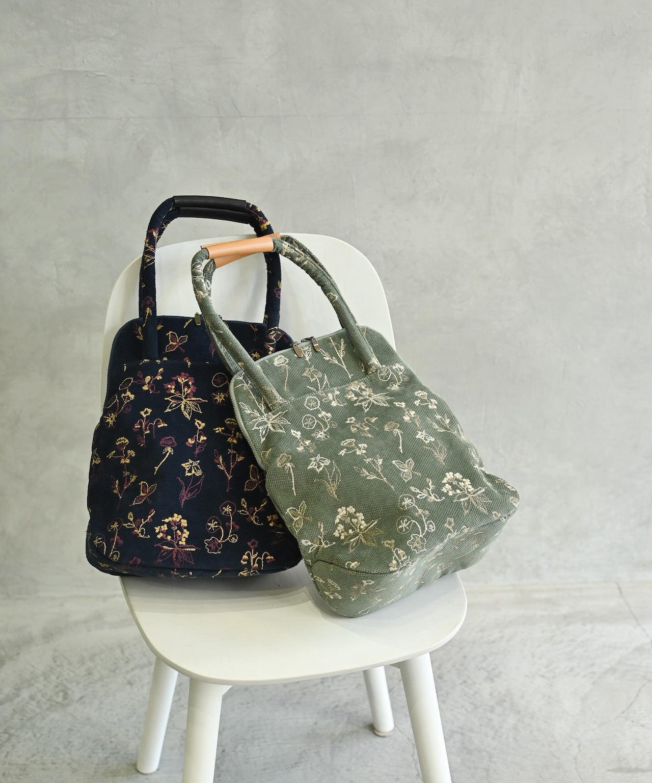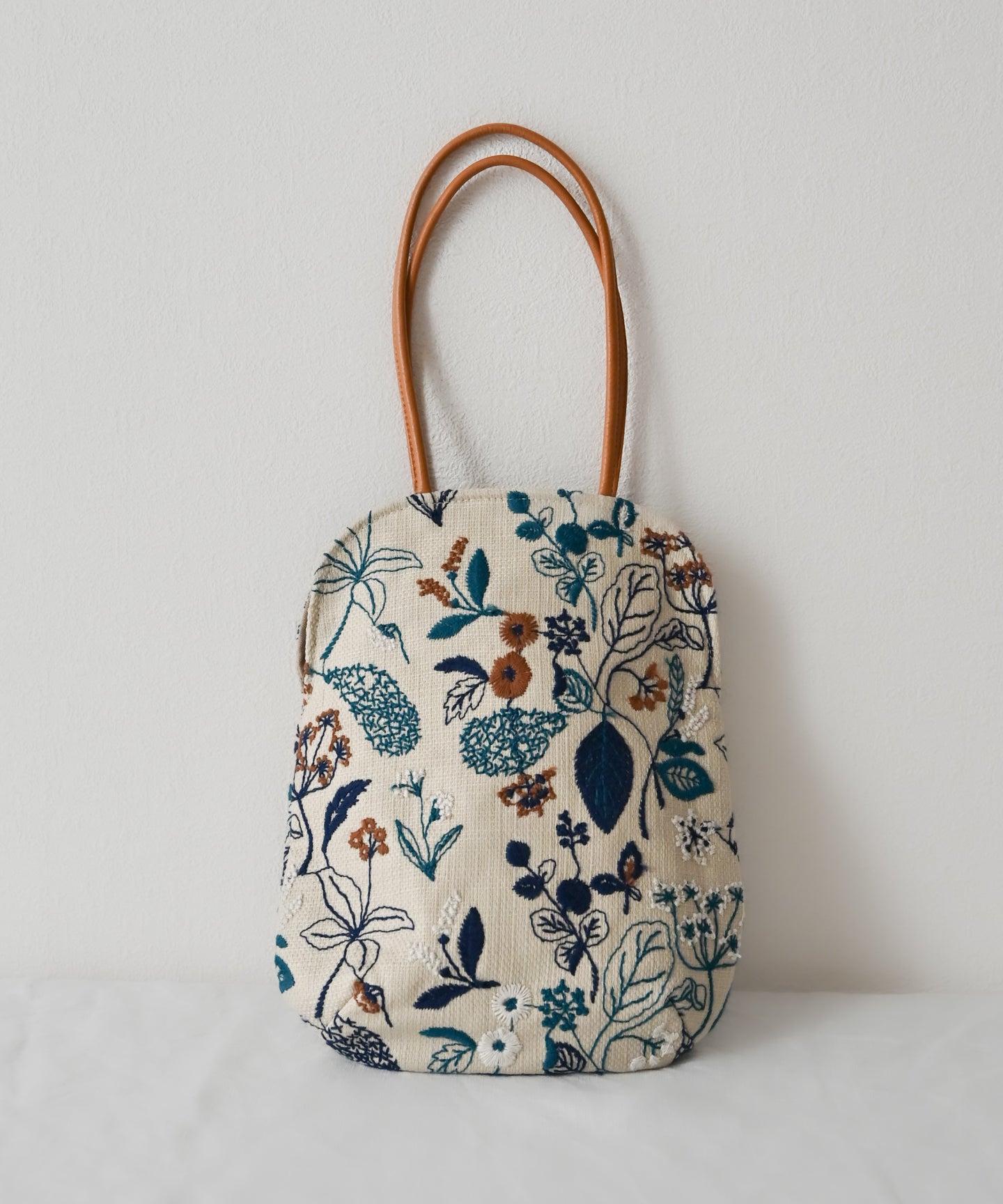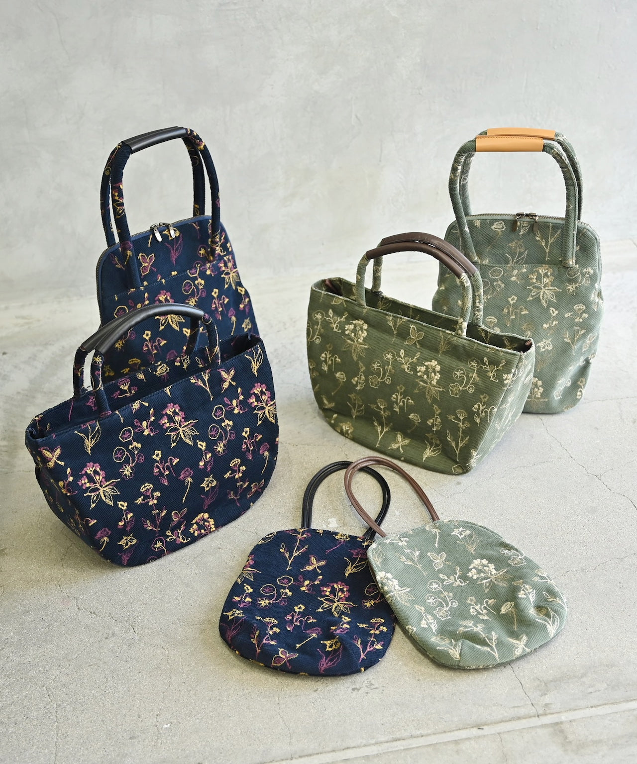 〈肩かけ可〉〈A4書類可〉〈たっぷりマチあり〉〈ファスナー開き〉〈内外ポケットあり〉〈持ち手レザー〉 花刺繍 スモールサイズ (bag031)