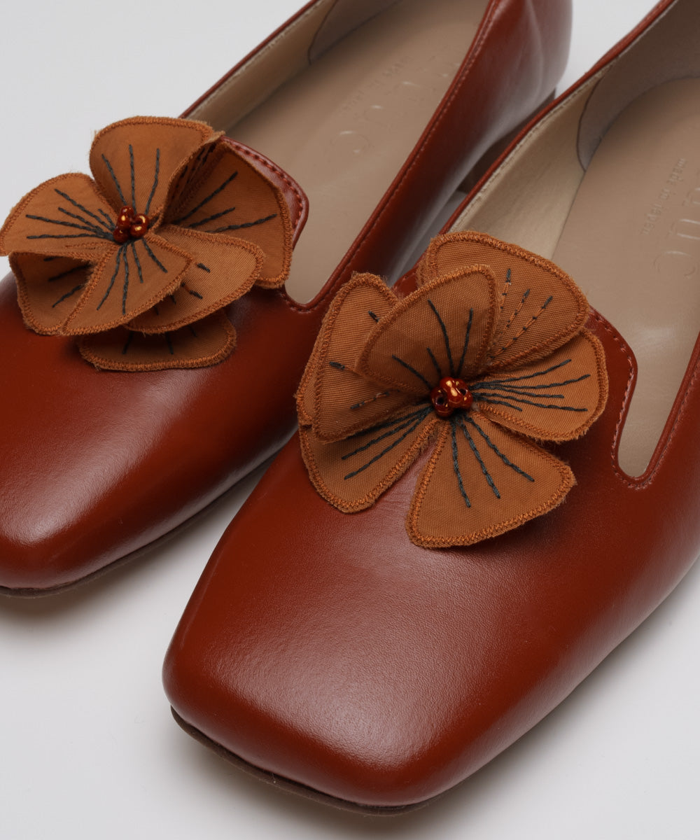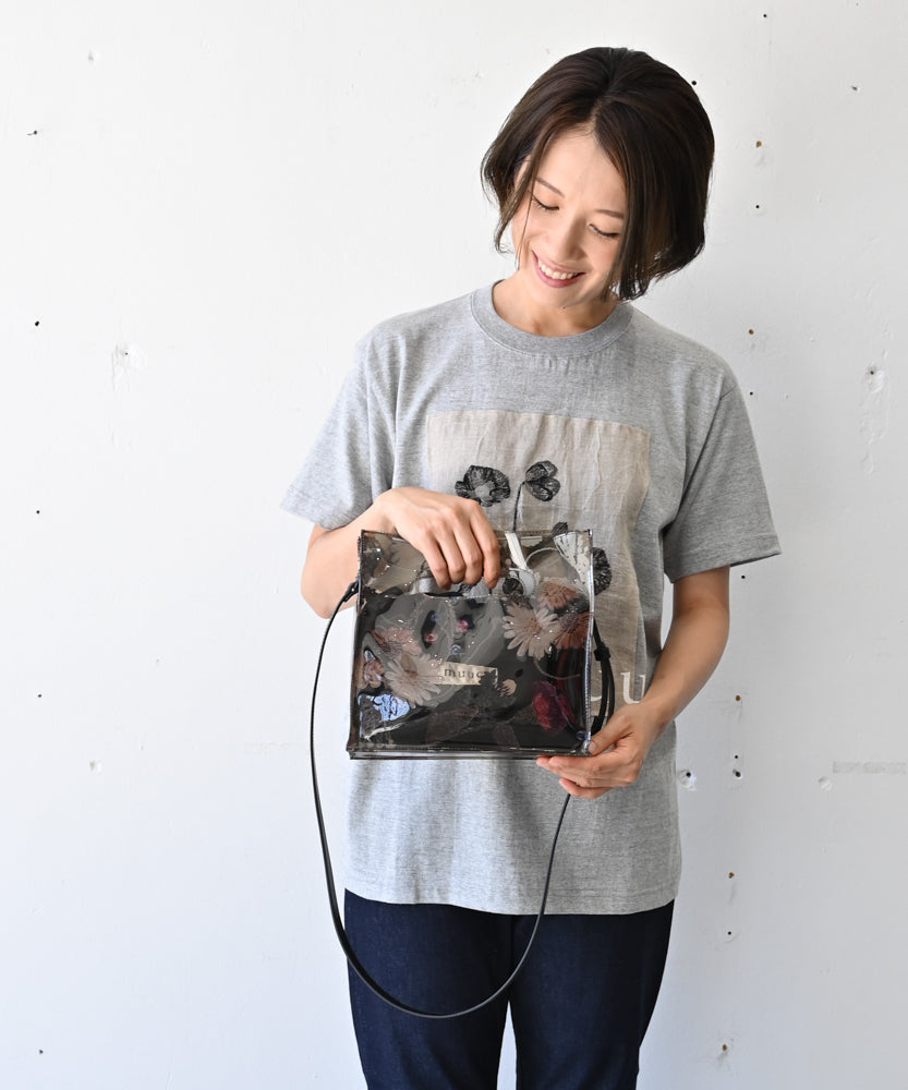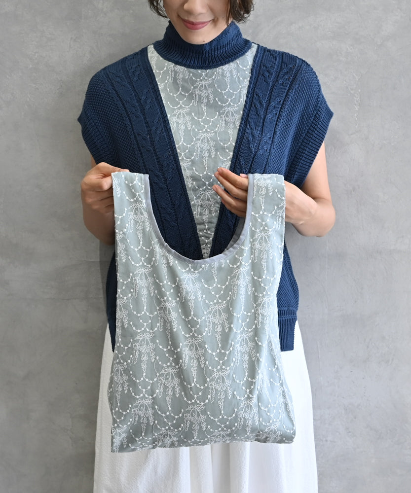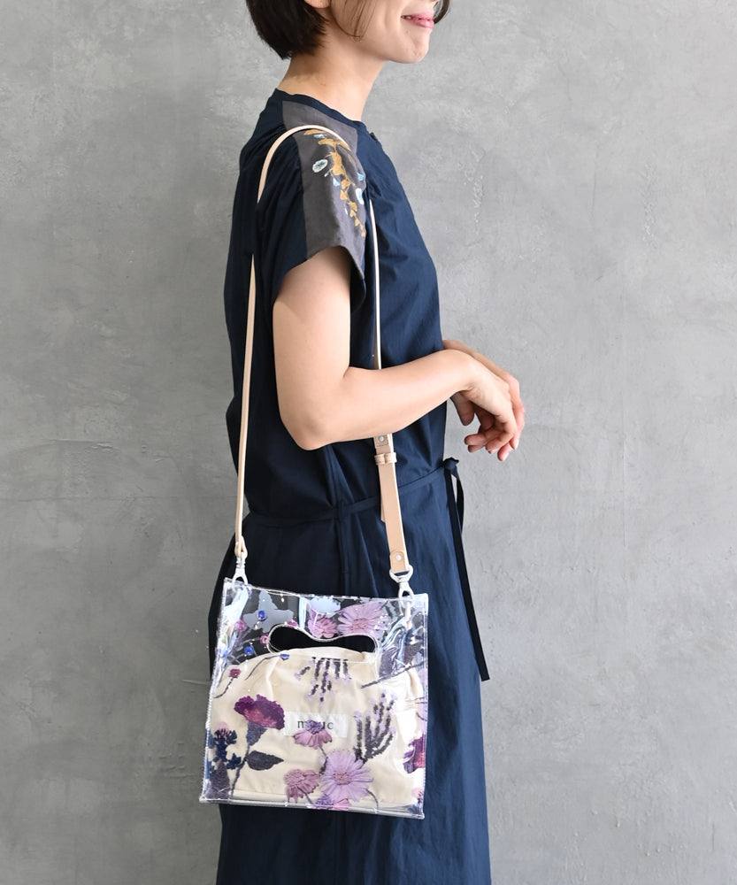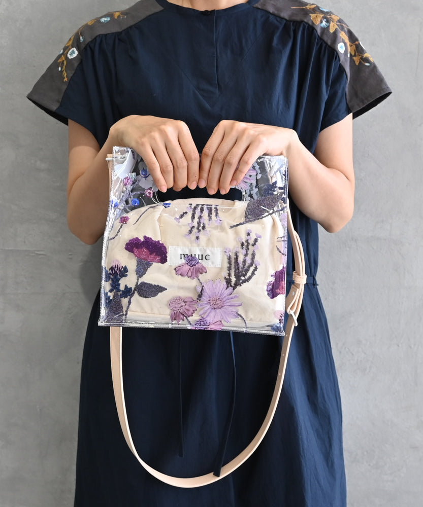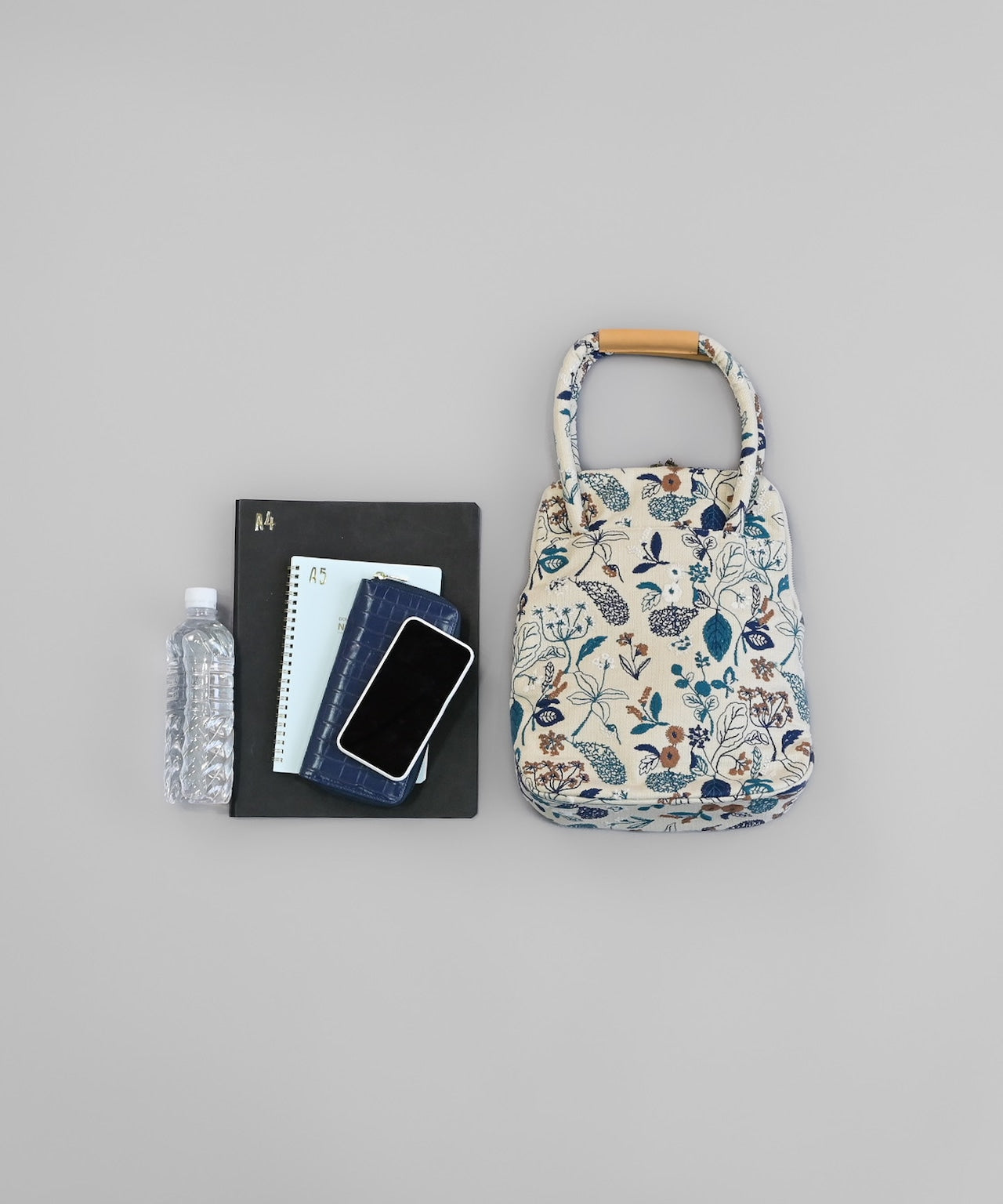〈肩かけ可〉〈A4書類可〉〈たっぷりマチあり〉〈ファスナー開き〉〈内外ポケットあり〉〈持ち手レザー〉 花刺繍 スモールサイズ (bag031)