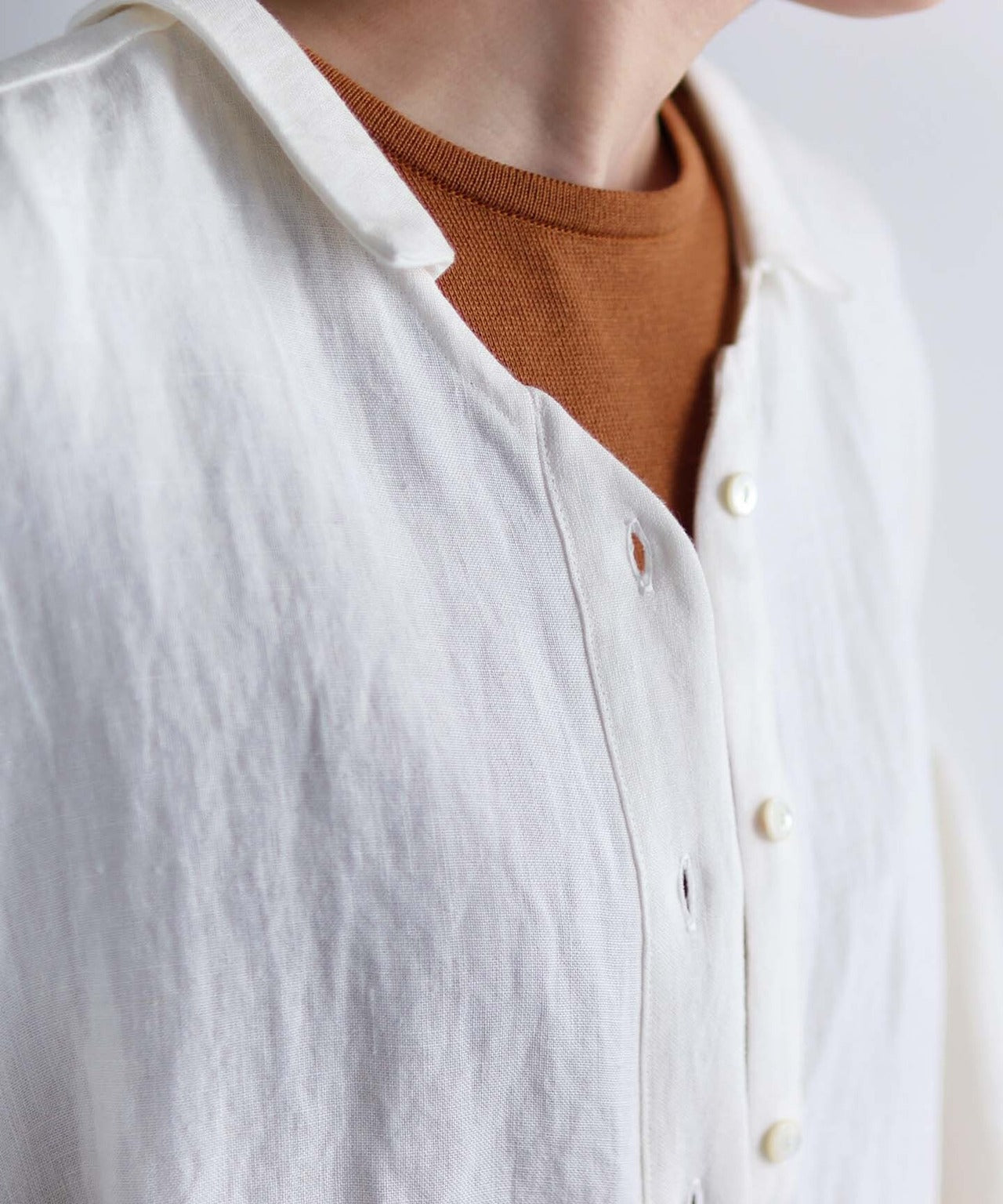 〈高品質ベルギーリネン100%〉カットジャカード生地デザイン袖 クラシカルシルエットのブラウス (mud911)