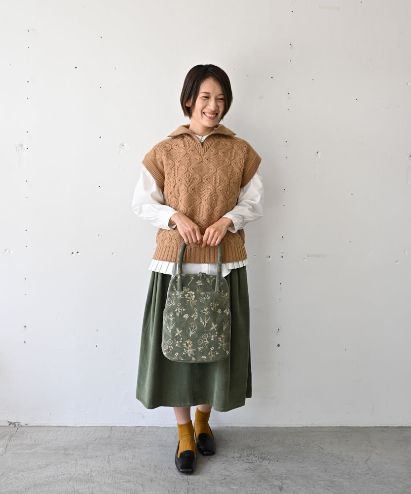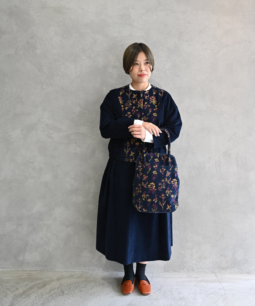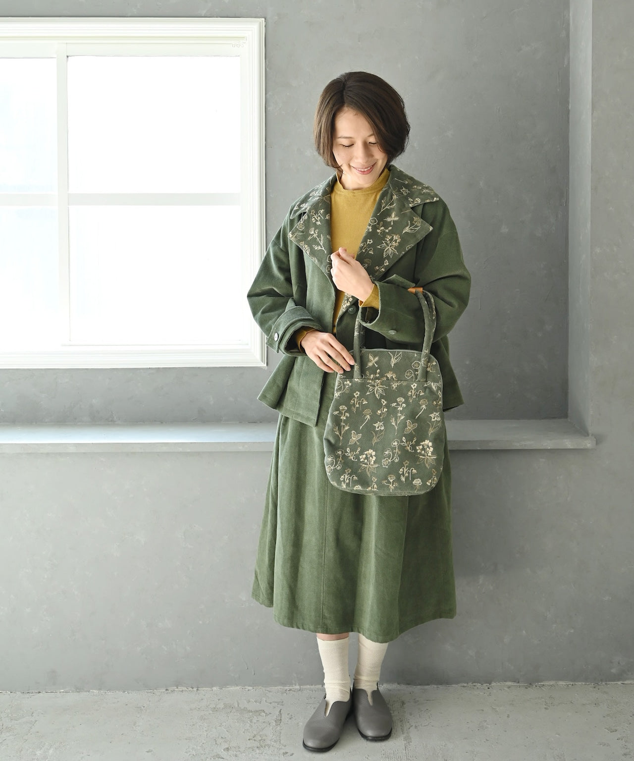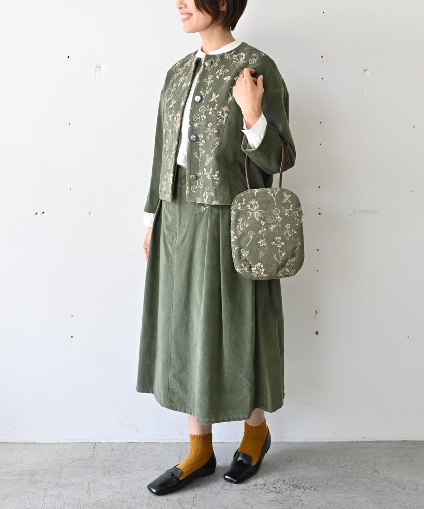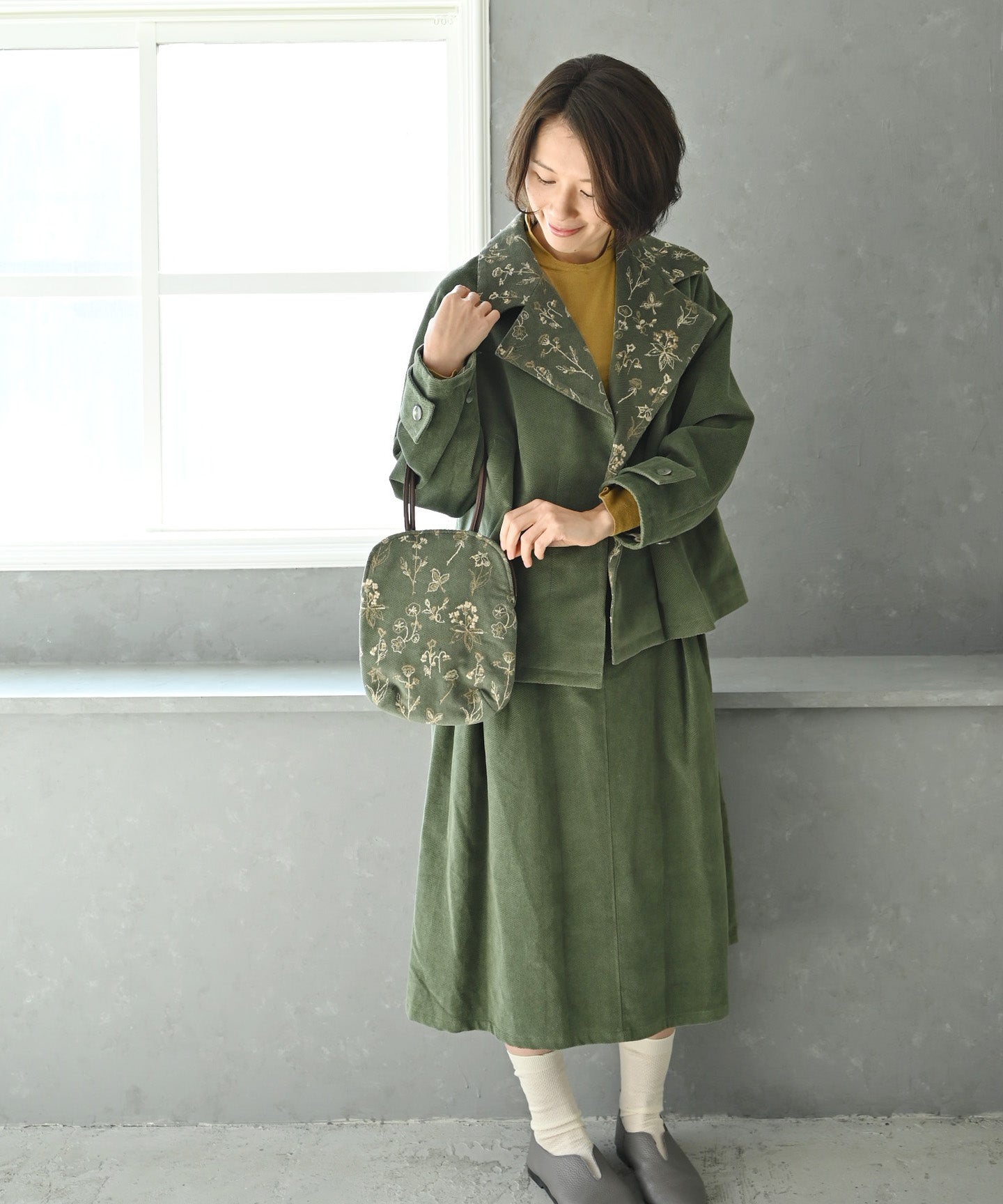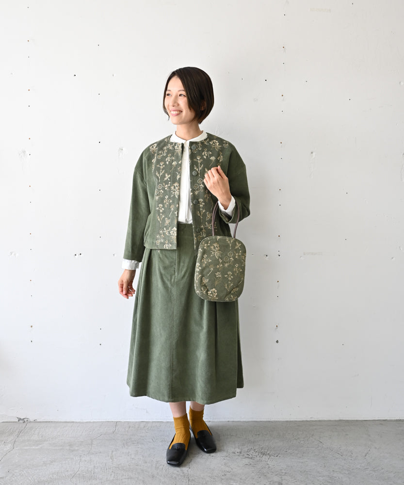 〈遠州織物 コットンコーデュロイ〉花刺繍スカート(セットアップ可能) (mug203)
