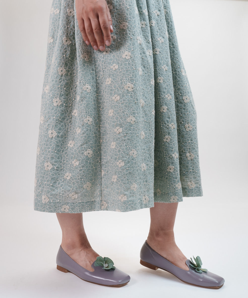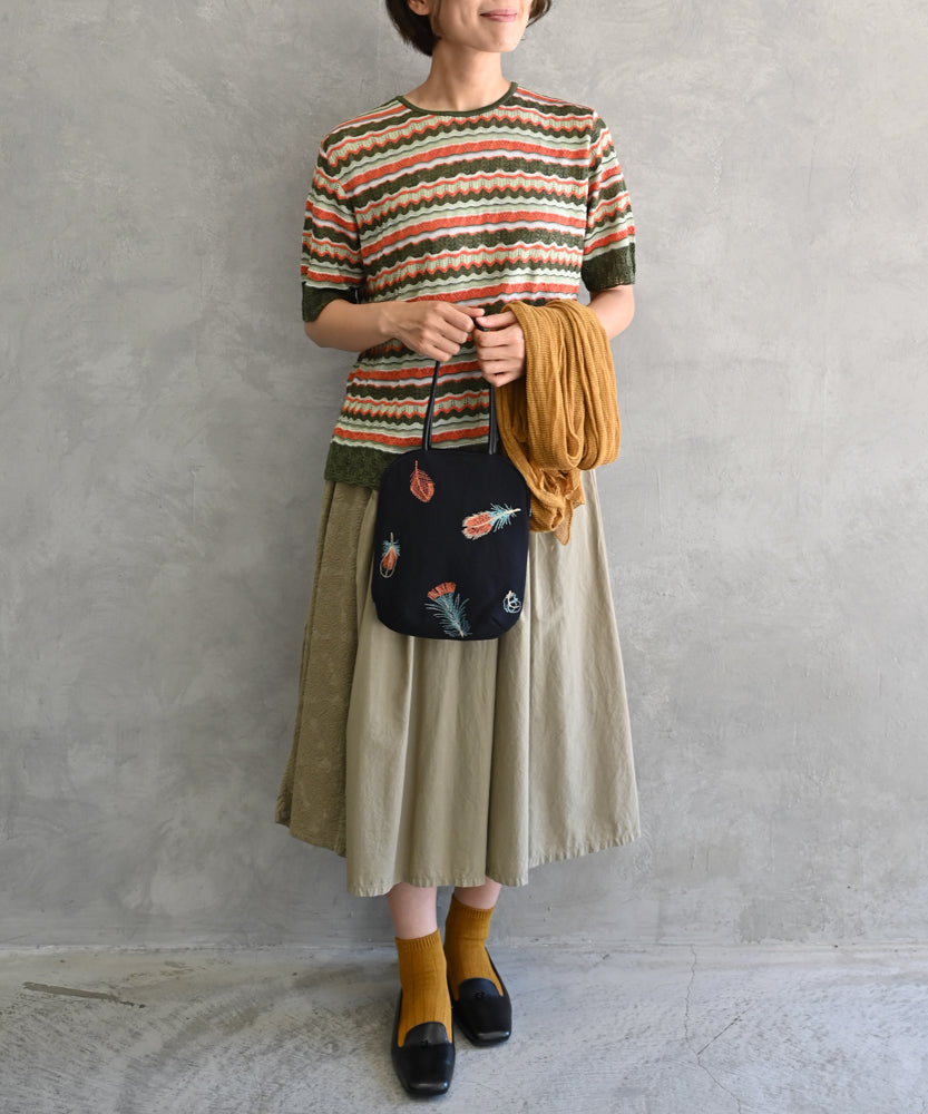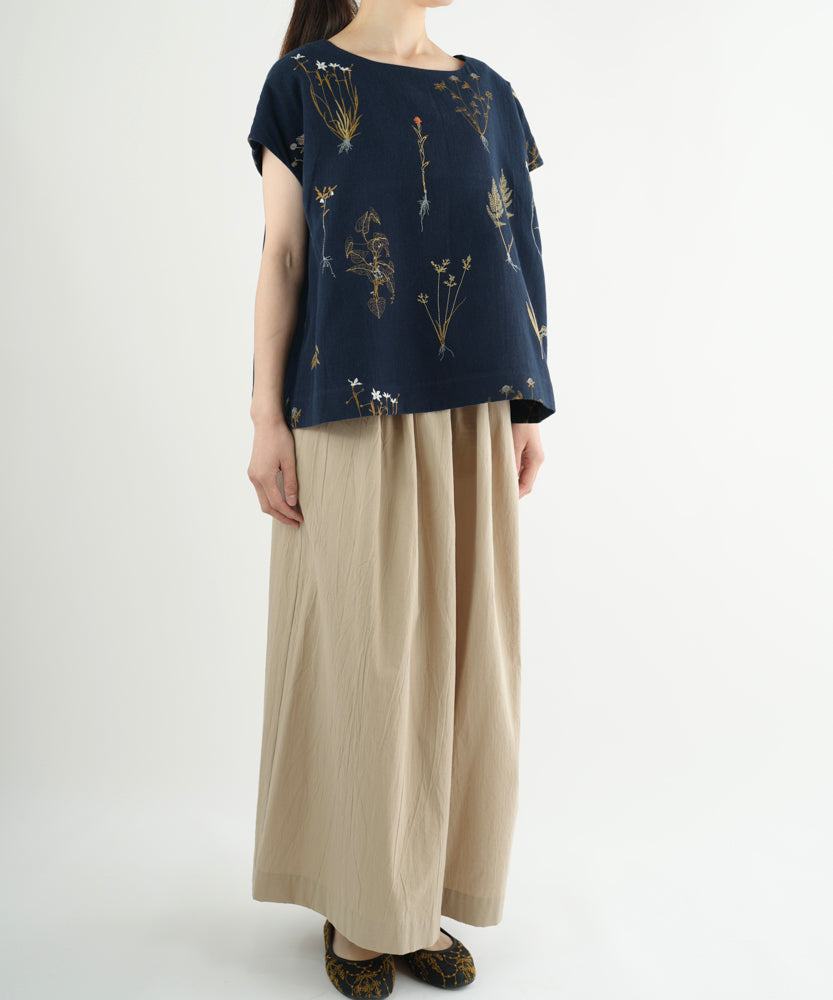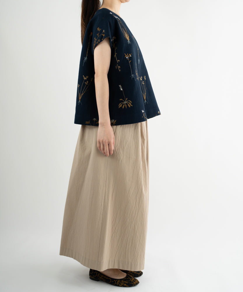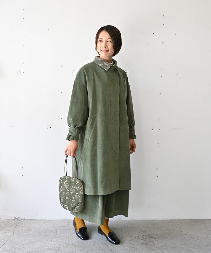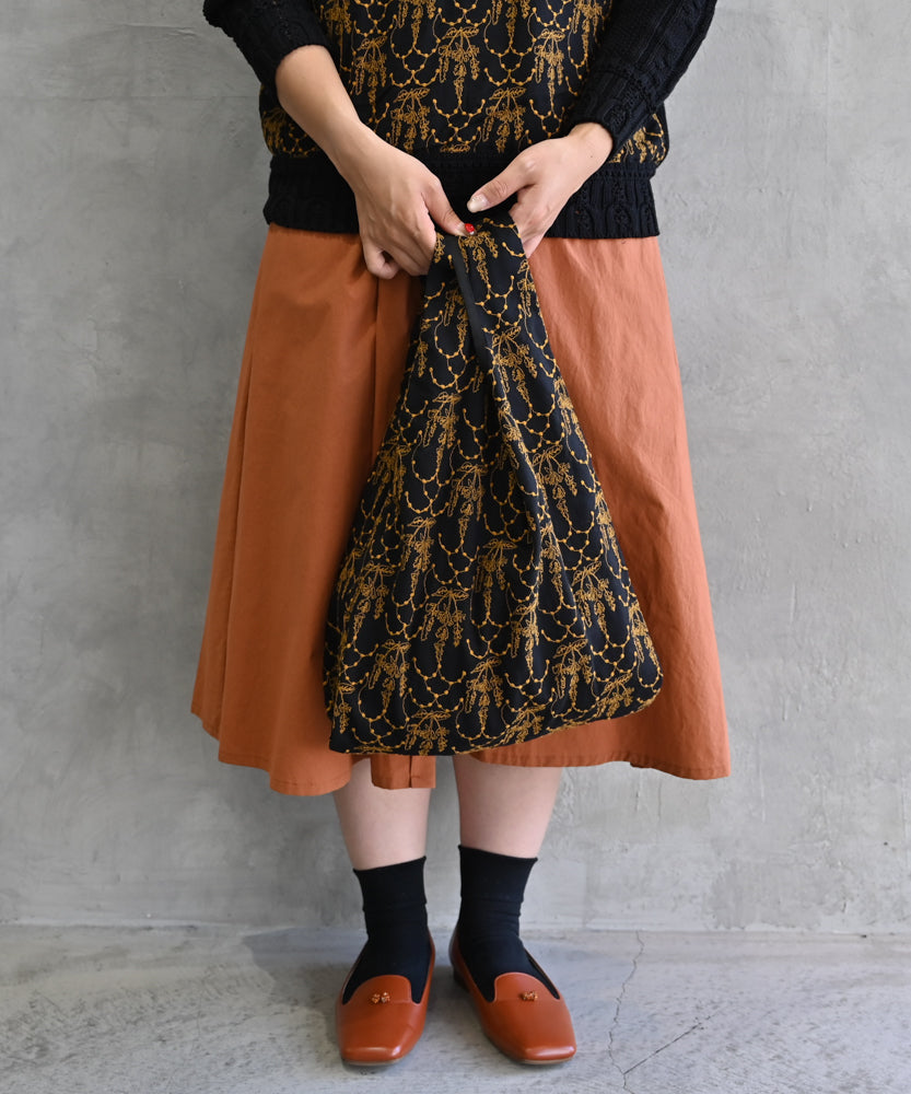 〈遠州織物 コットンコーデュロイ〉花刺繍スカート(セットアップ可能) (mug203)