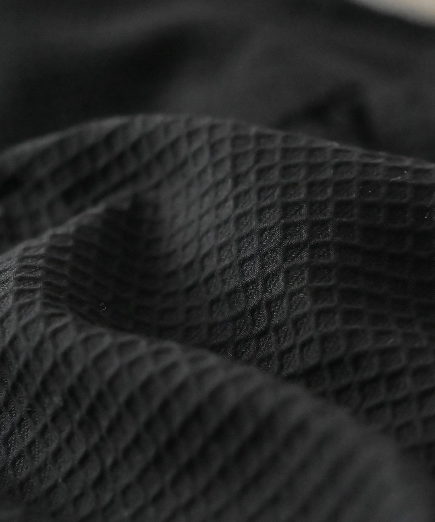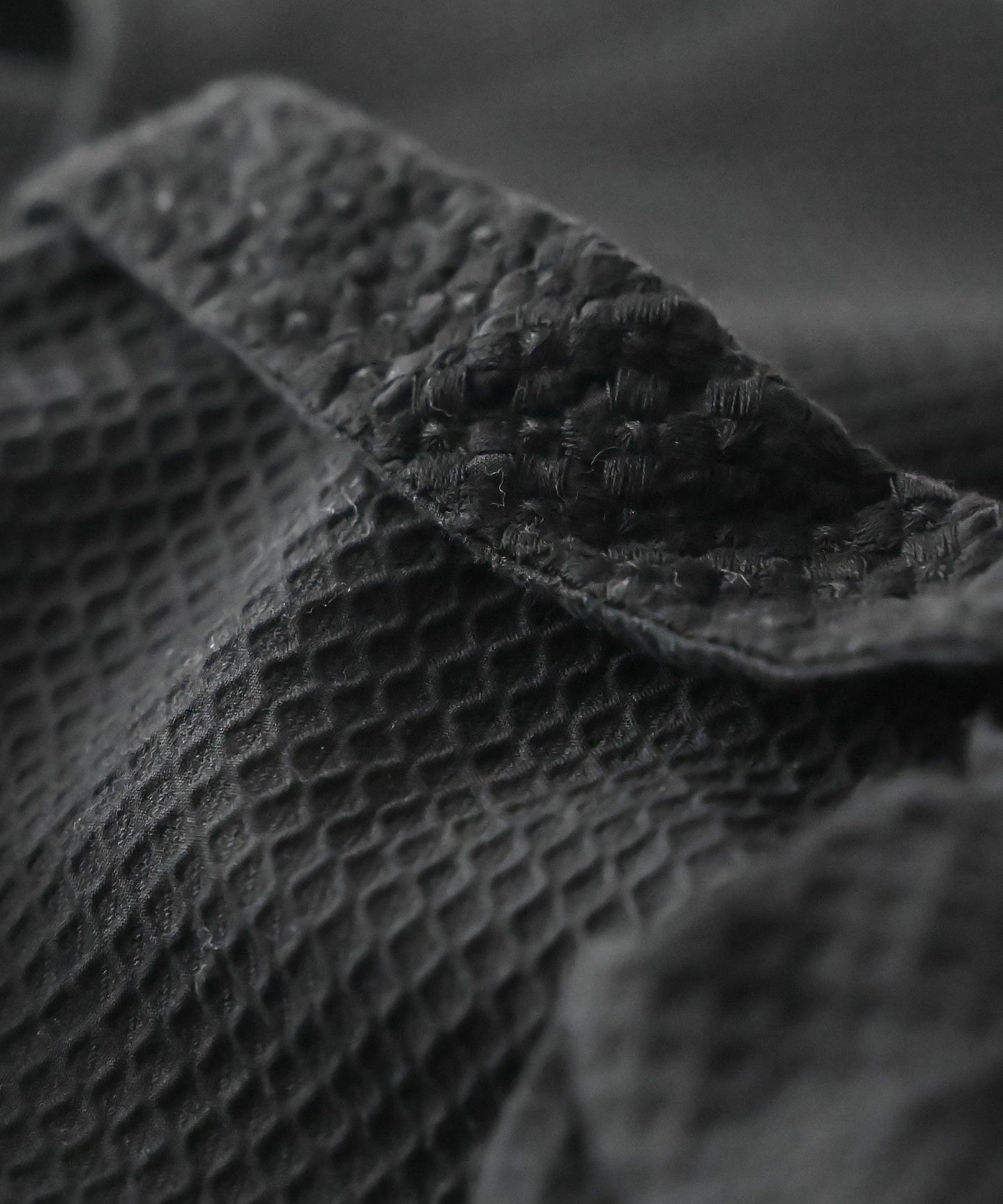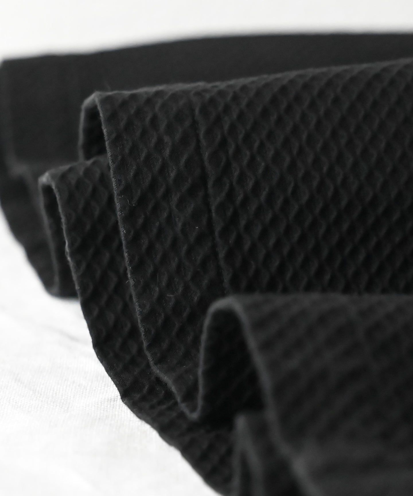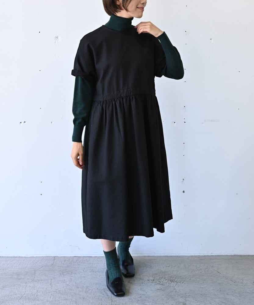 〈遠州織物 オーガニックコットン〉涼しい凹凸生地 隠しウエスト紐あり 半袖ノーカラー 製品染めワンピース (evi629)